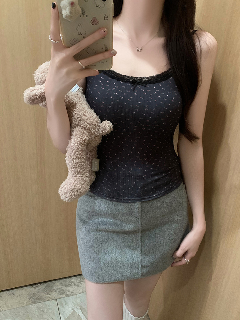 순수한 욕망 스타일 한국 스타일 꽃 슬링 아름다운 스트랩 스트랩 가슴 패드 레이스 고정 컵 안티 라이트 뜨거운 소녀 달콤한 조끼 탑