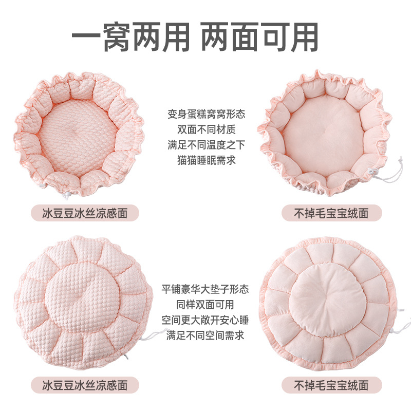 【品名】冰豆豆凉感宠物窝【一面凉感冰豆豆,一面超柔水晶绒,四季通用】