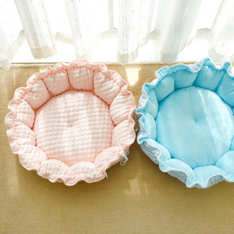 【尺寸】: 小号:窝抽起来后外径40CM,平铺当垫子直径55CM,建议5斤内宠物;