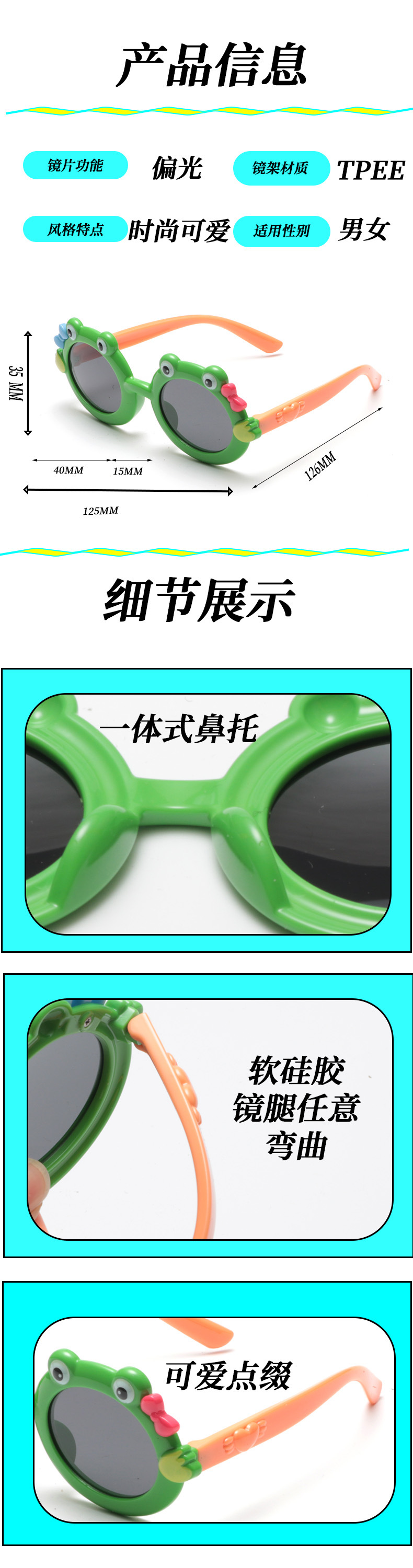 어린이용 자외선 차단 선글라스, 편광 소프트 실리콘, 패셔너블한 아기용 자외선 차단 선글라스, 대형 프레임, UV400
