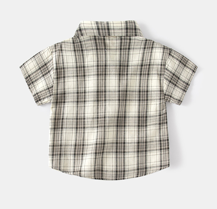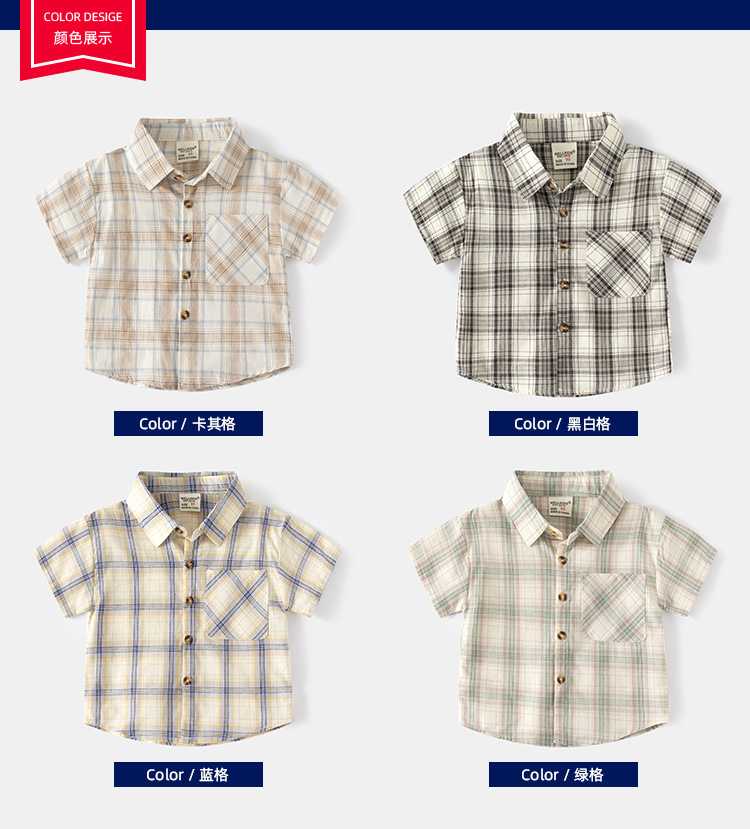새로운 여름 소년 반팔 격자 무늬 셔츠 면 부드러운 아기 탑 캐주얼 여름 광장 칼라 어린이 셔츠