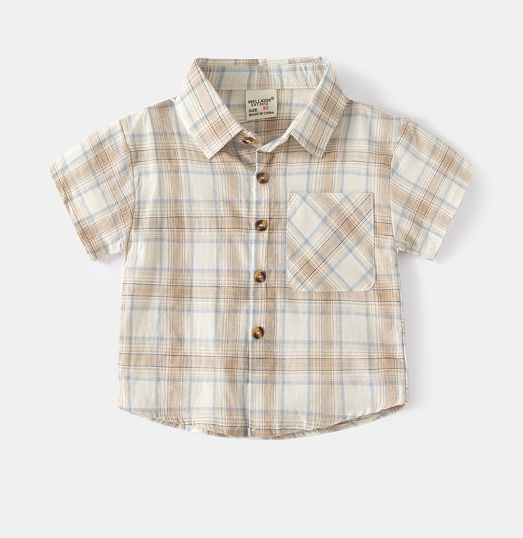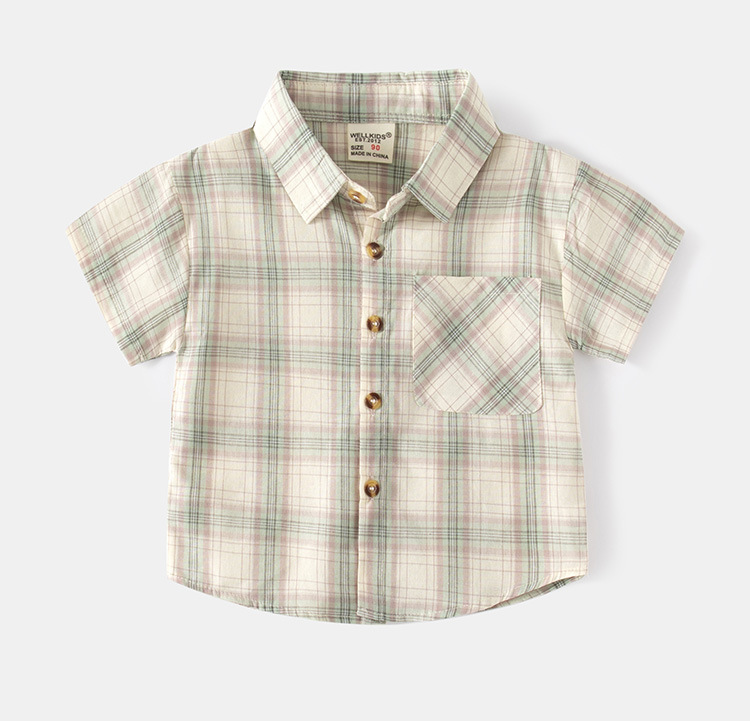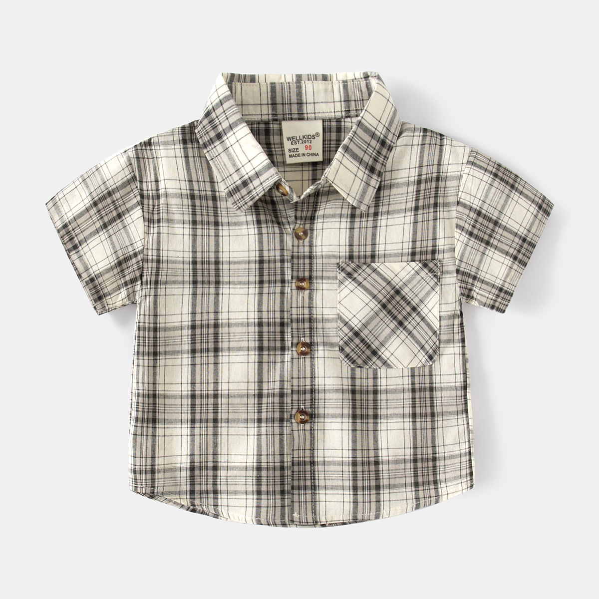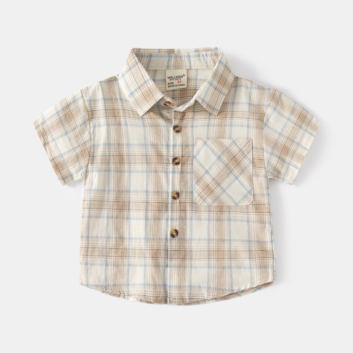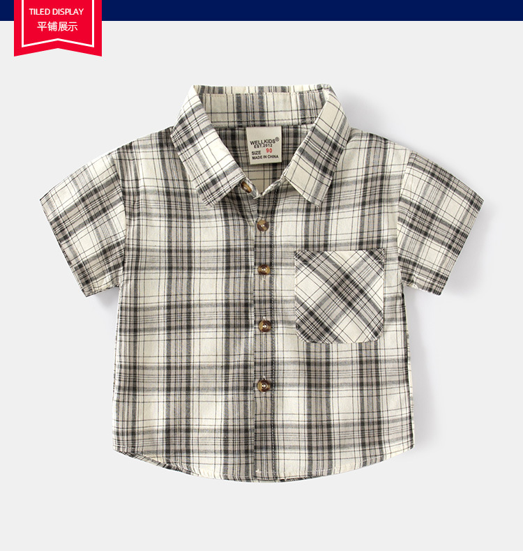 새로운 여름 소년 반팔 격자 무늬 셔츠 면 부드러운 아기 탑 캐주얼 여름 광장 칼라 어린이 셔츠스토어 가기