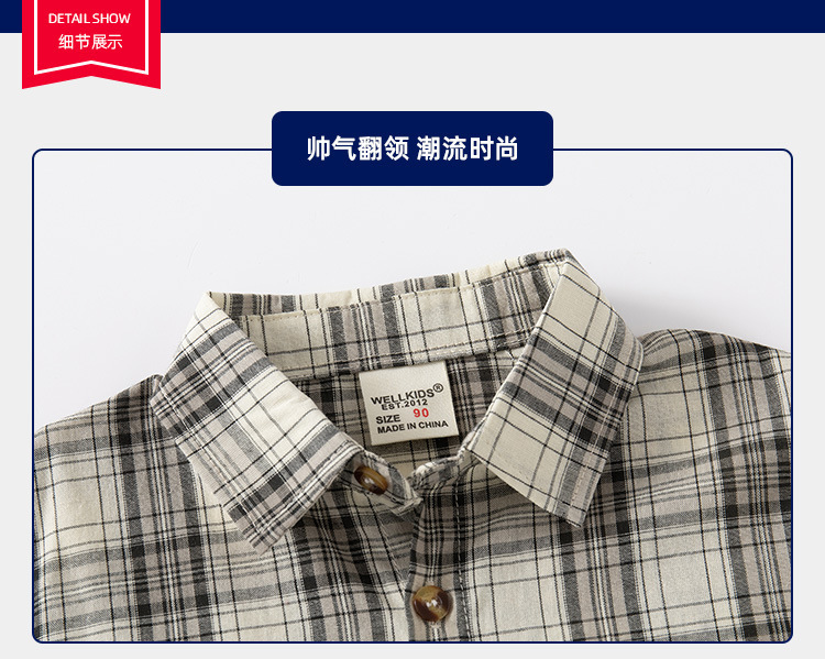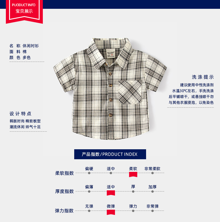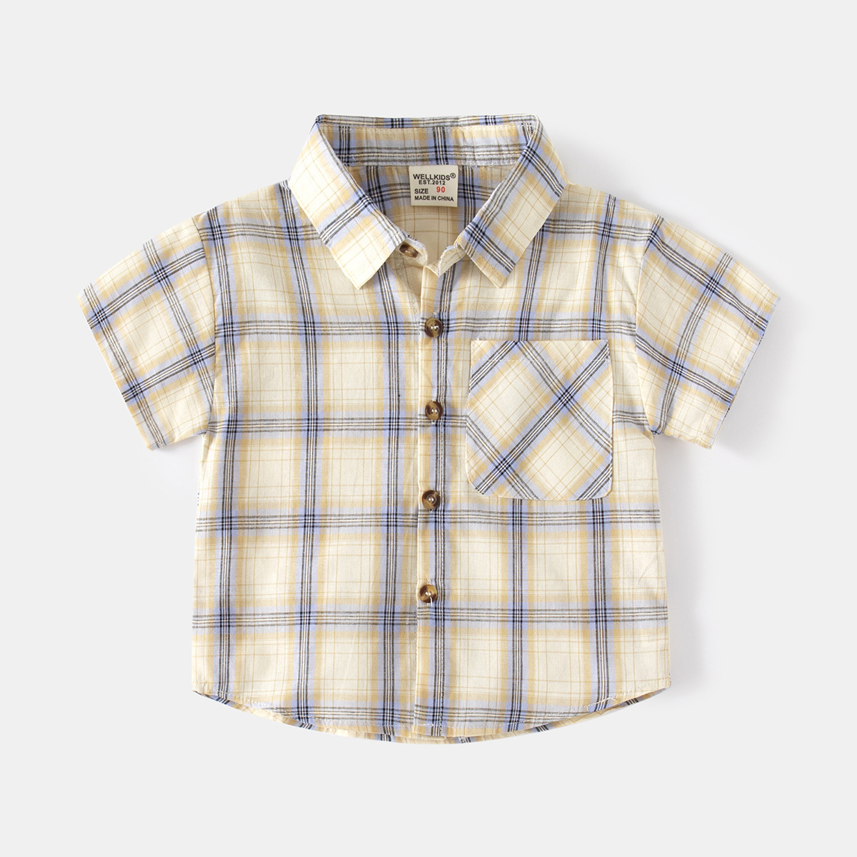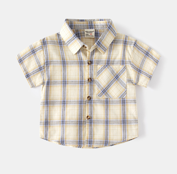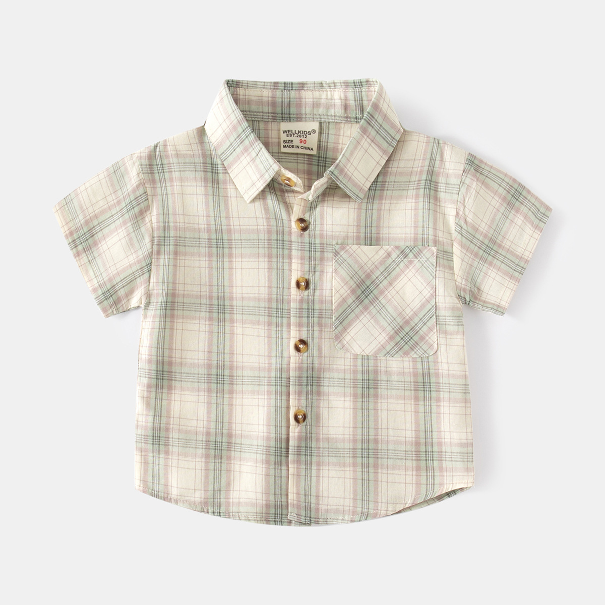 새로운 여름 소년 반팔 격자 무늬 셔츠 면 부드러운 아기 탑 캐주얼 여름 광장 칼라 어린이 셔츠스토어 가기