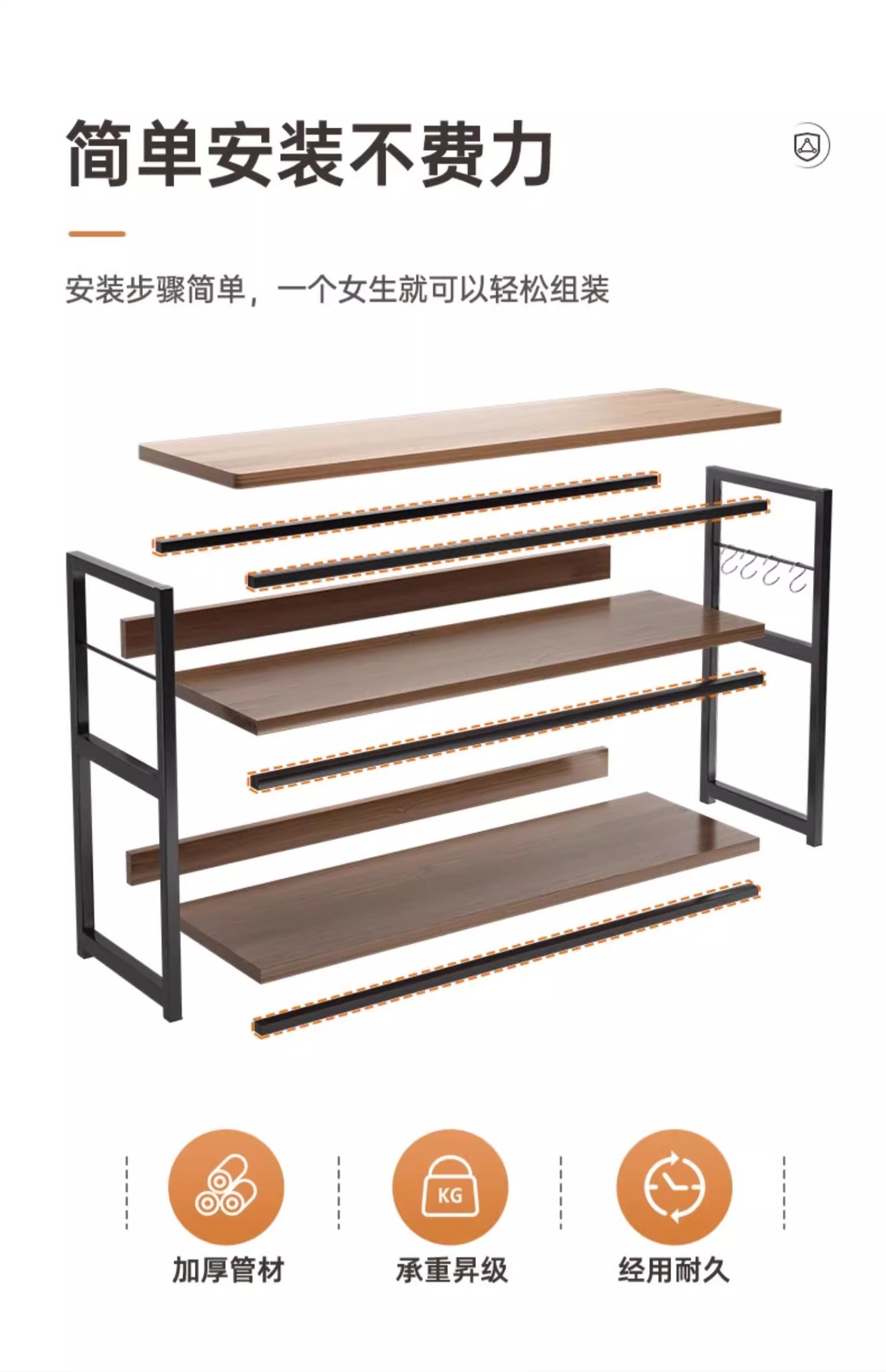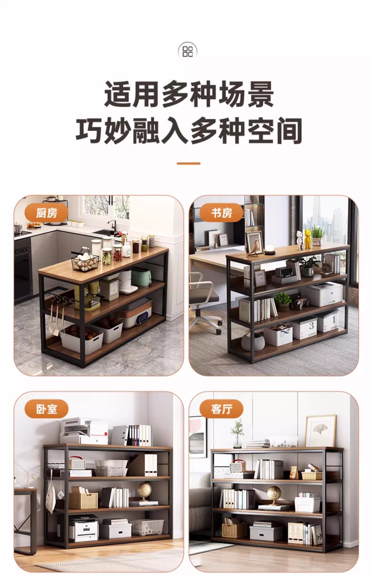 • [두 배 높은 수납모델 4단] 80cm 와일드오크 컬러 + 블랙 프레임