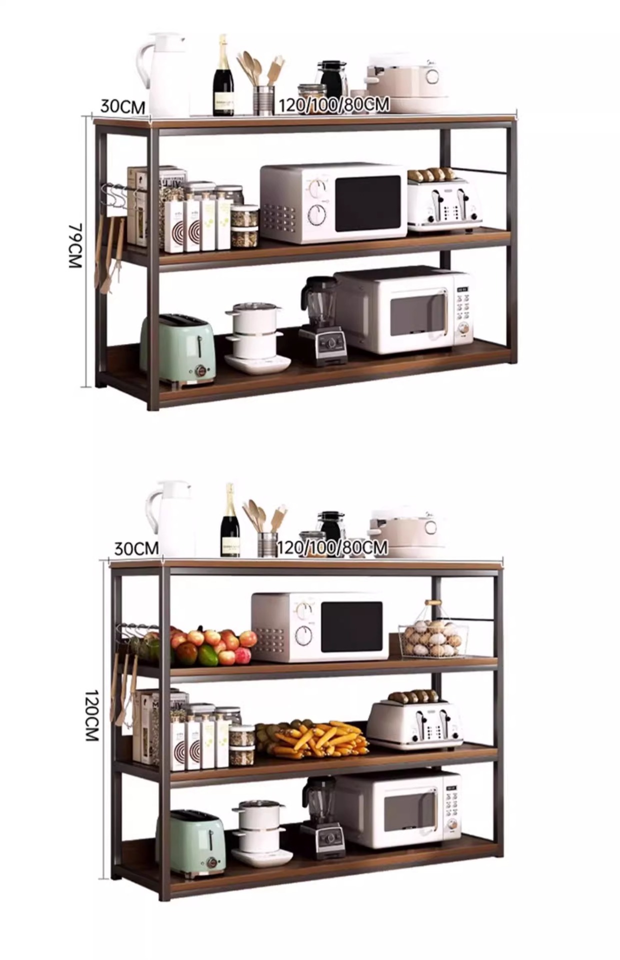 • [두 배 높은 수납모델 4단] 100cm 와일드오크 컬러 + 블랙 프레임