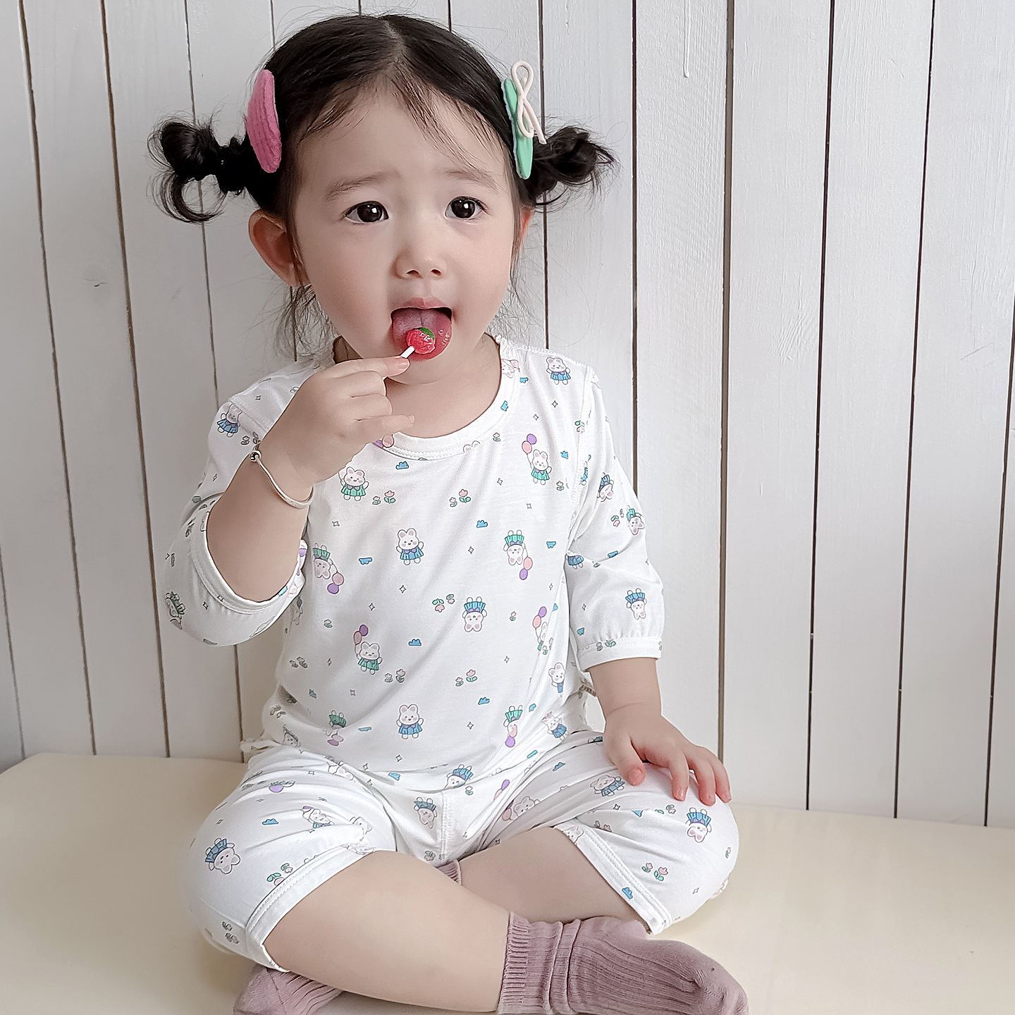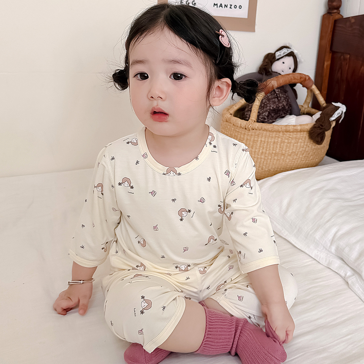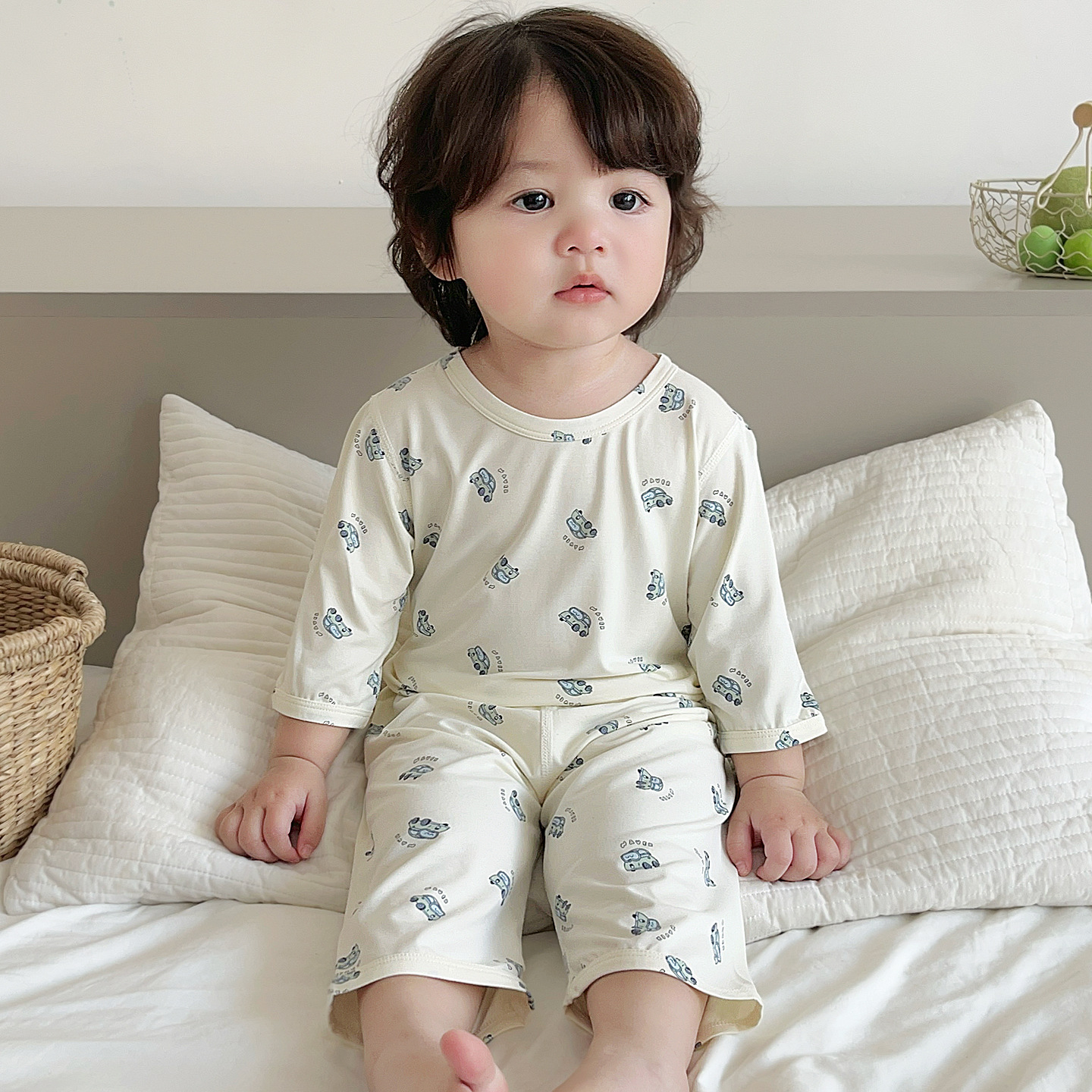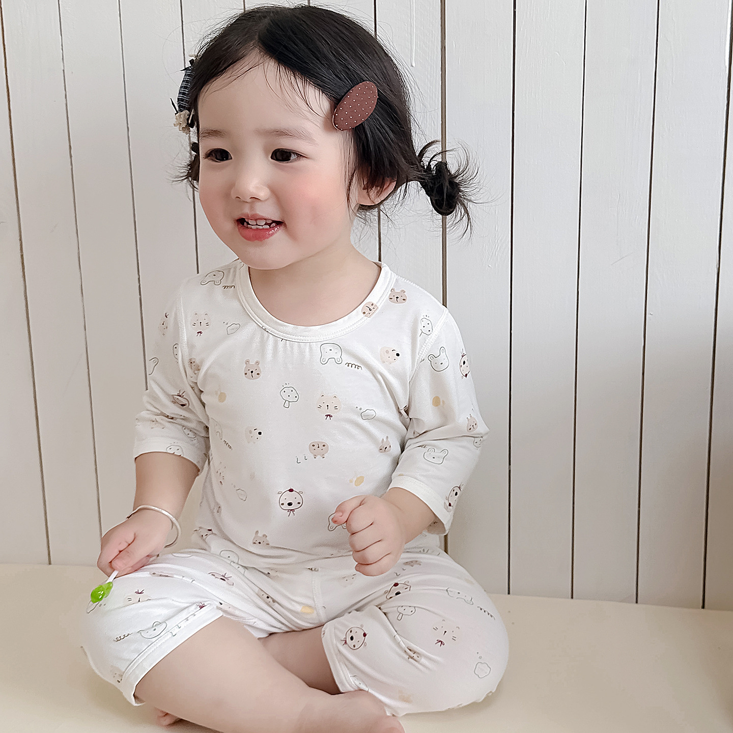 여름 아기 홈 세트 얇은 모달 어린이 잠옷 소년 소녀 통기성 Lyocell 소매스토어 가기