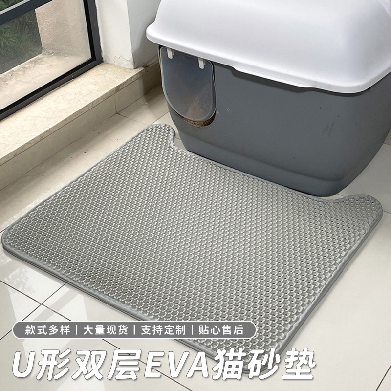 U자형 고양이 모래 매트 EVA 이중층 고양이 모래 매트 미끄럼 방지 고양이 모래 매트 고양이 화장실 모래 필터 매트 내마모성 및 긁힘 방지 고양이 모래 매트스토어 가기