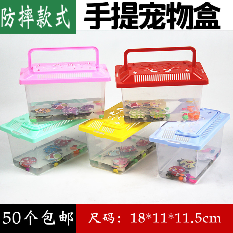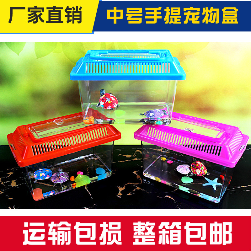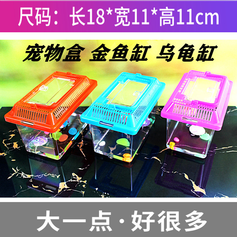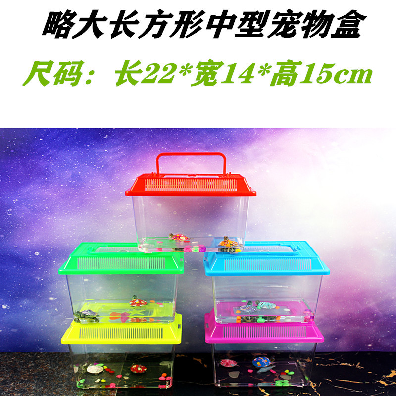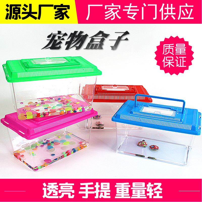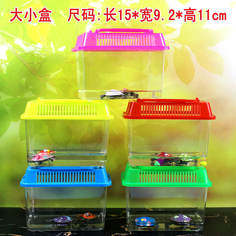 대형, 중형 및 소형 플라스틱 금붕어 탱크 투명한 휴대용 애완 동물 먹이 상자 거북이 탱크 수송 상자 물고기 거북이 햄스터 케이지