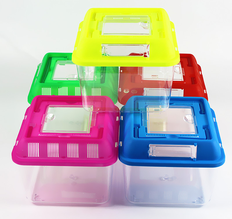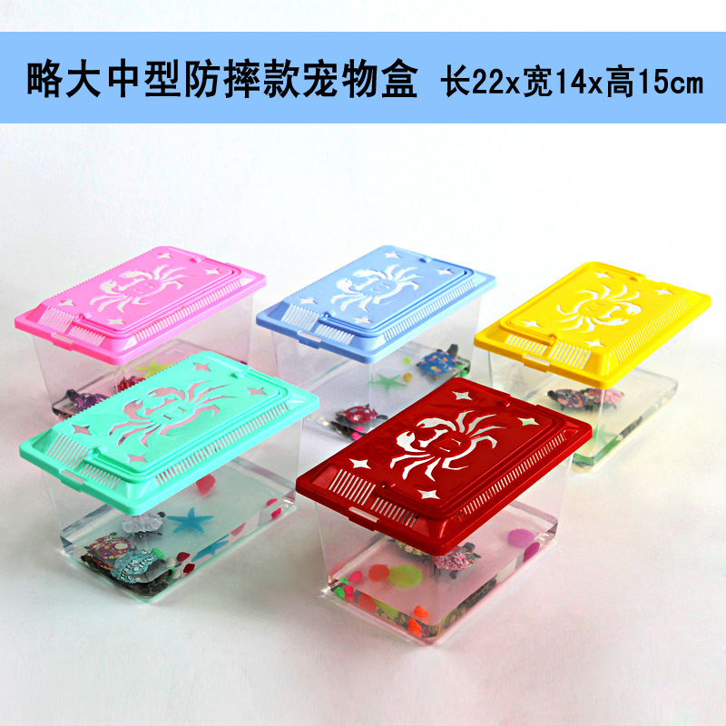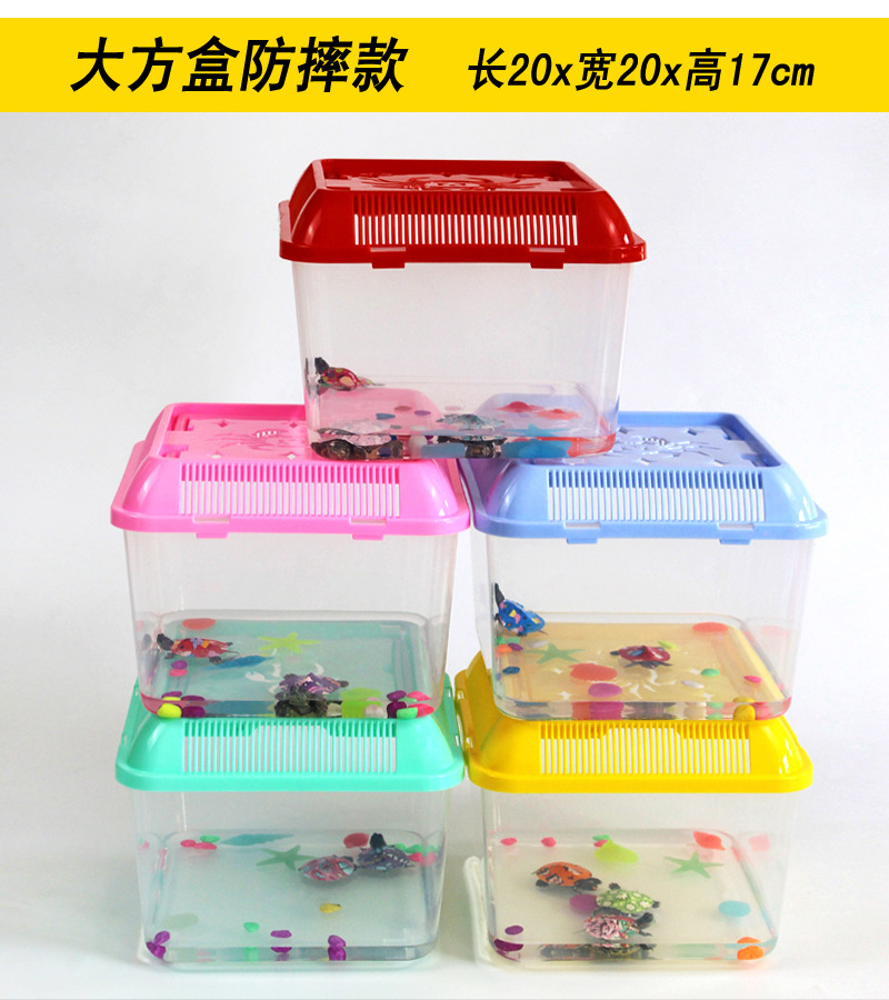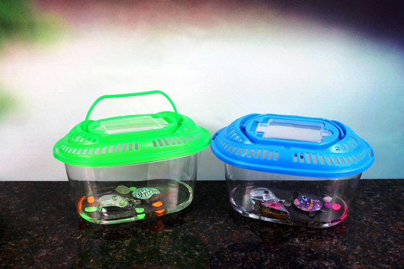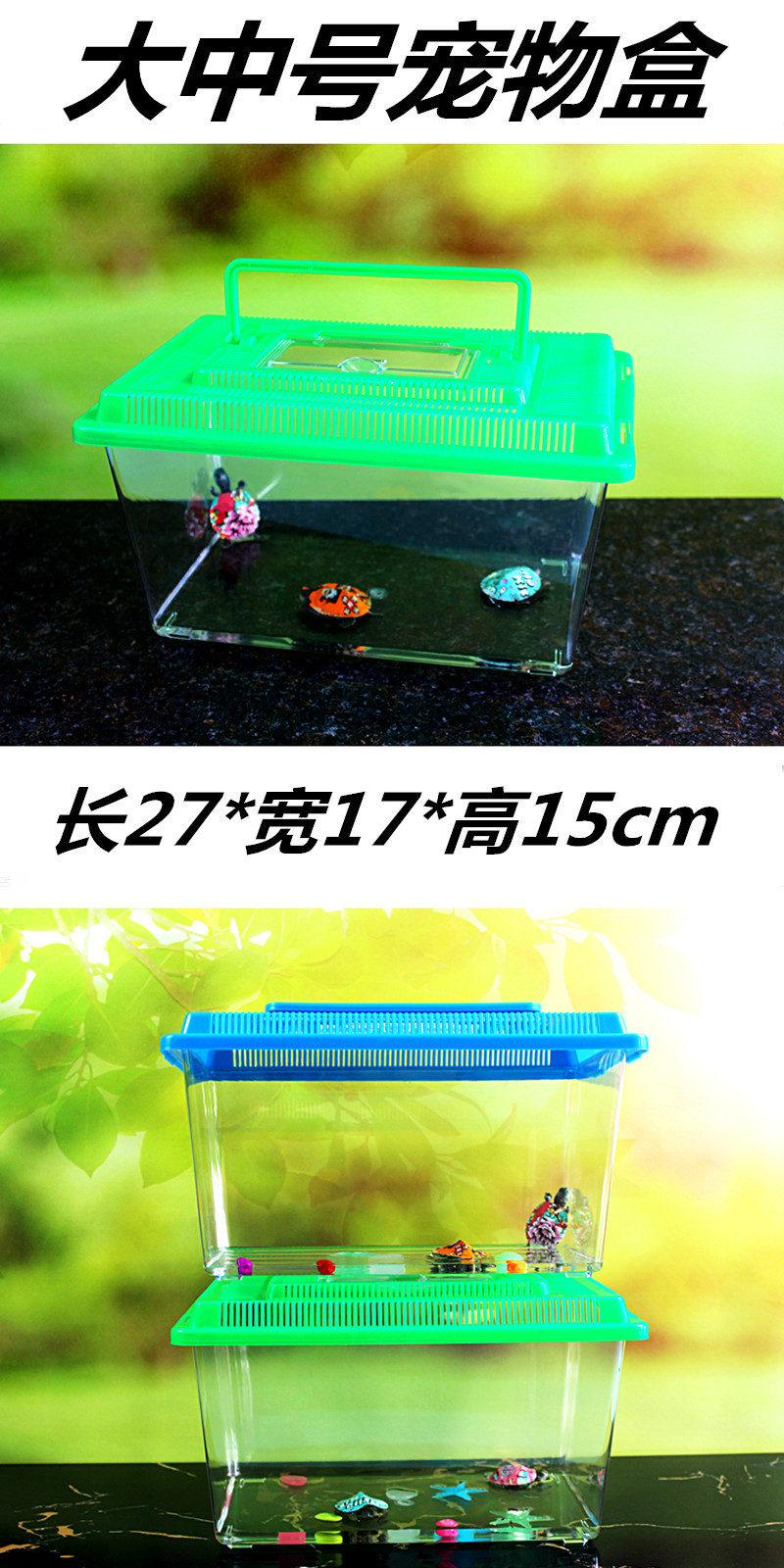대형, 중형 및 소형 플라스틱 금붕어 탱크 투명한 휴대용 애완 동물 먹이 상자 거북이 탱크 수송 상자 물고기 거북이 햄스터 케이지