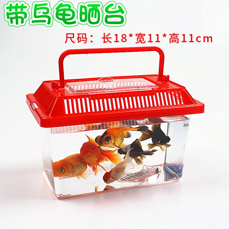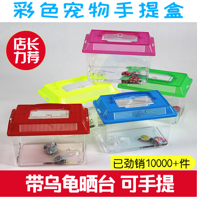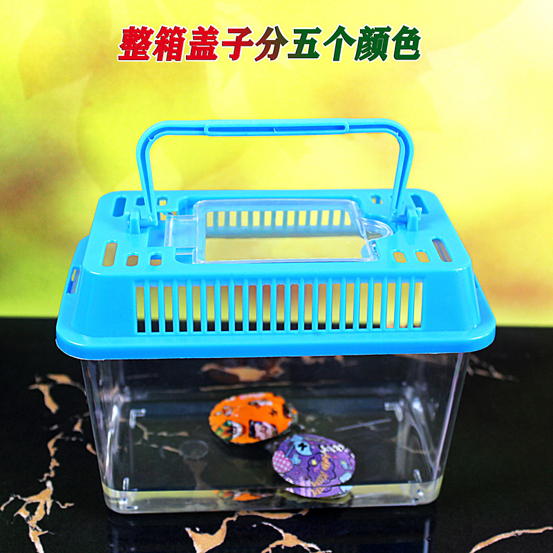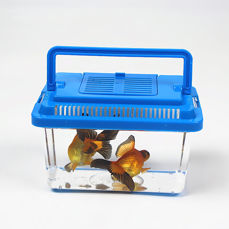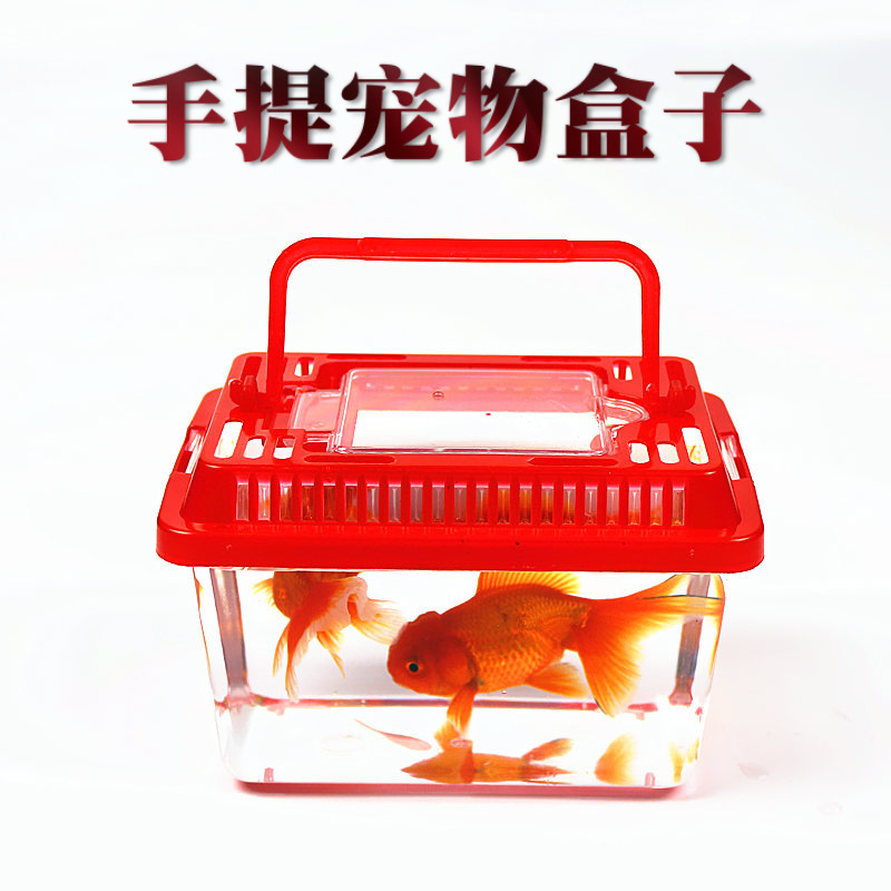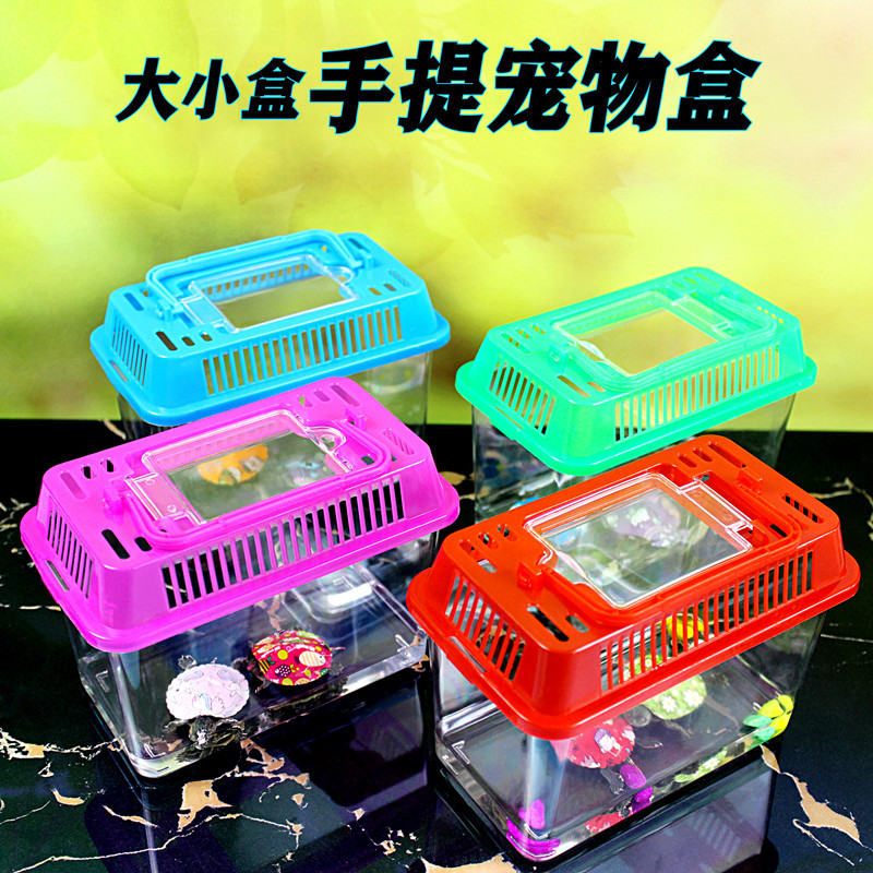 대형, 중형 및 소형 플라스틱 금붕어 탱크 투명한 휴대용 애완 동물 먹이 상자 거북이 탱크 수송 상자 물고기 거북이 햄스터 케이지스토어 가기