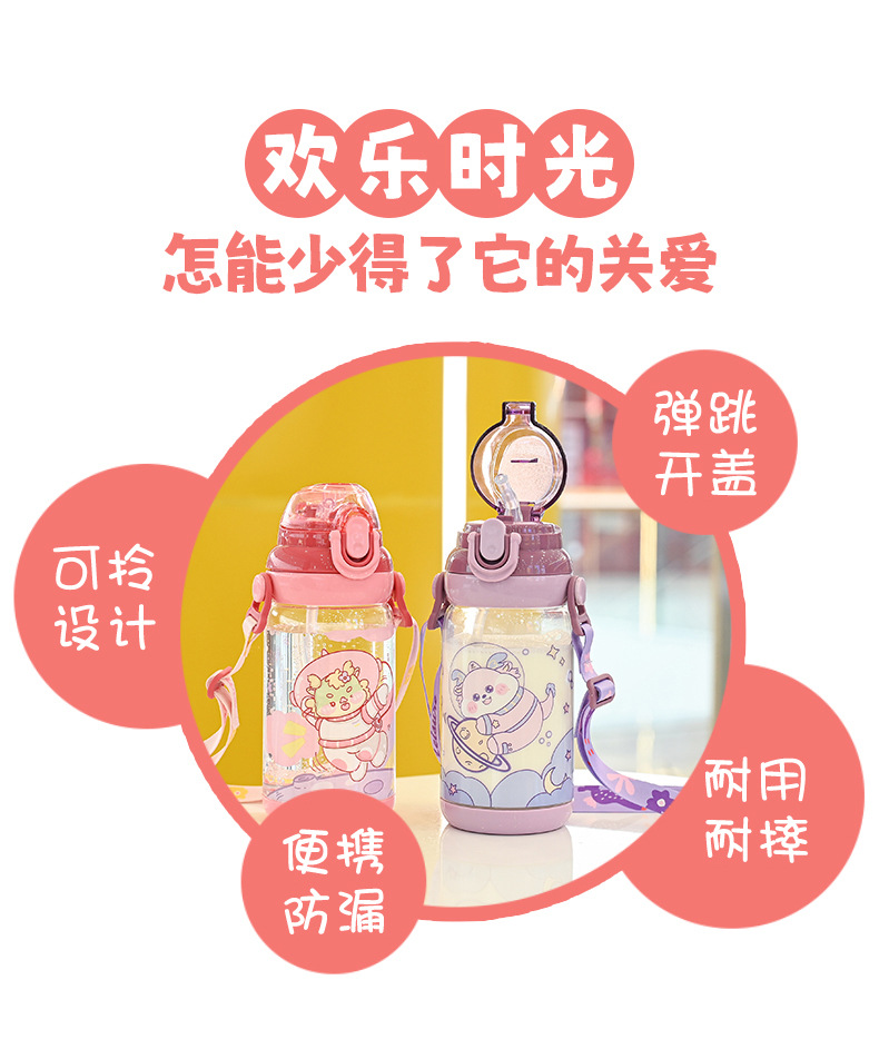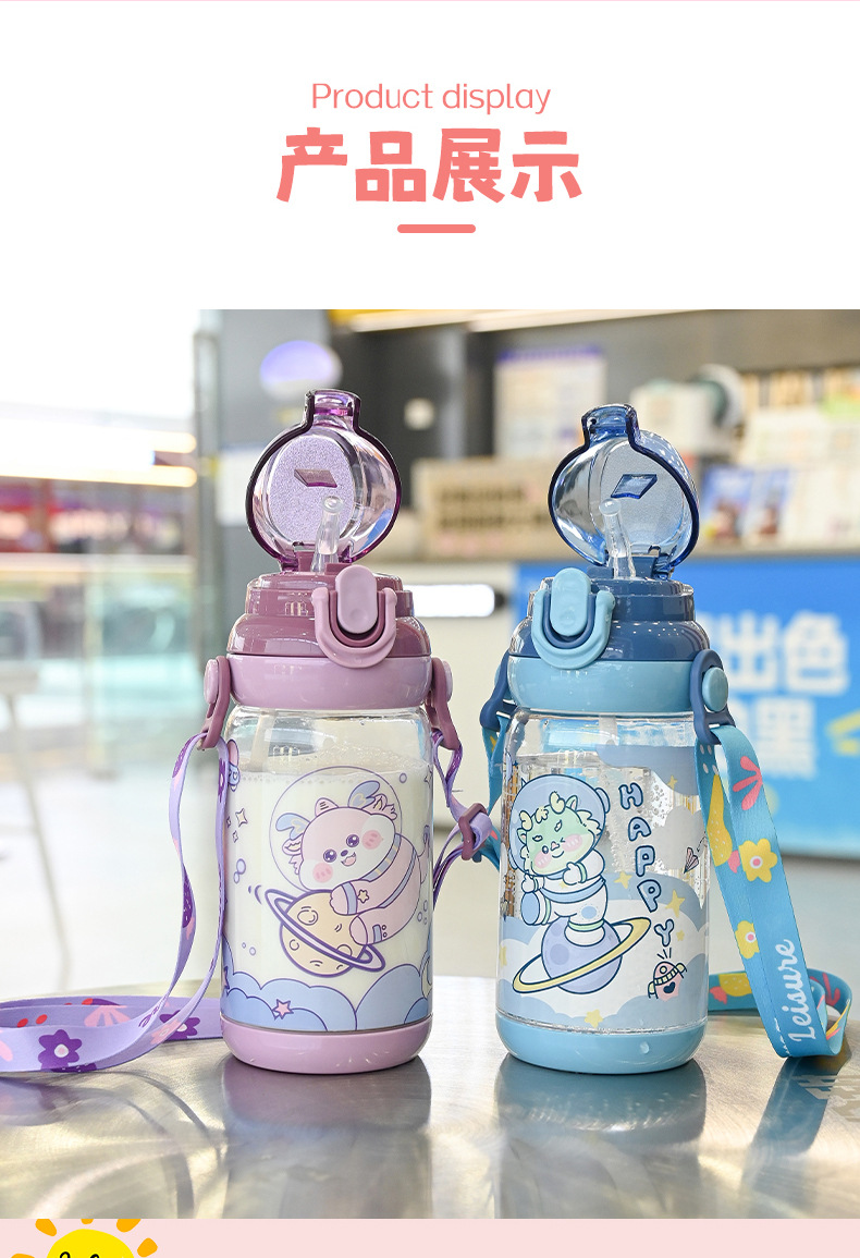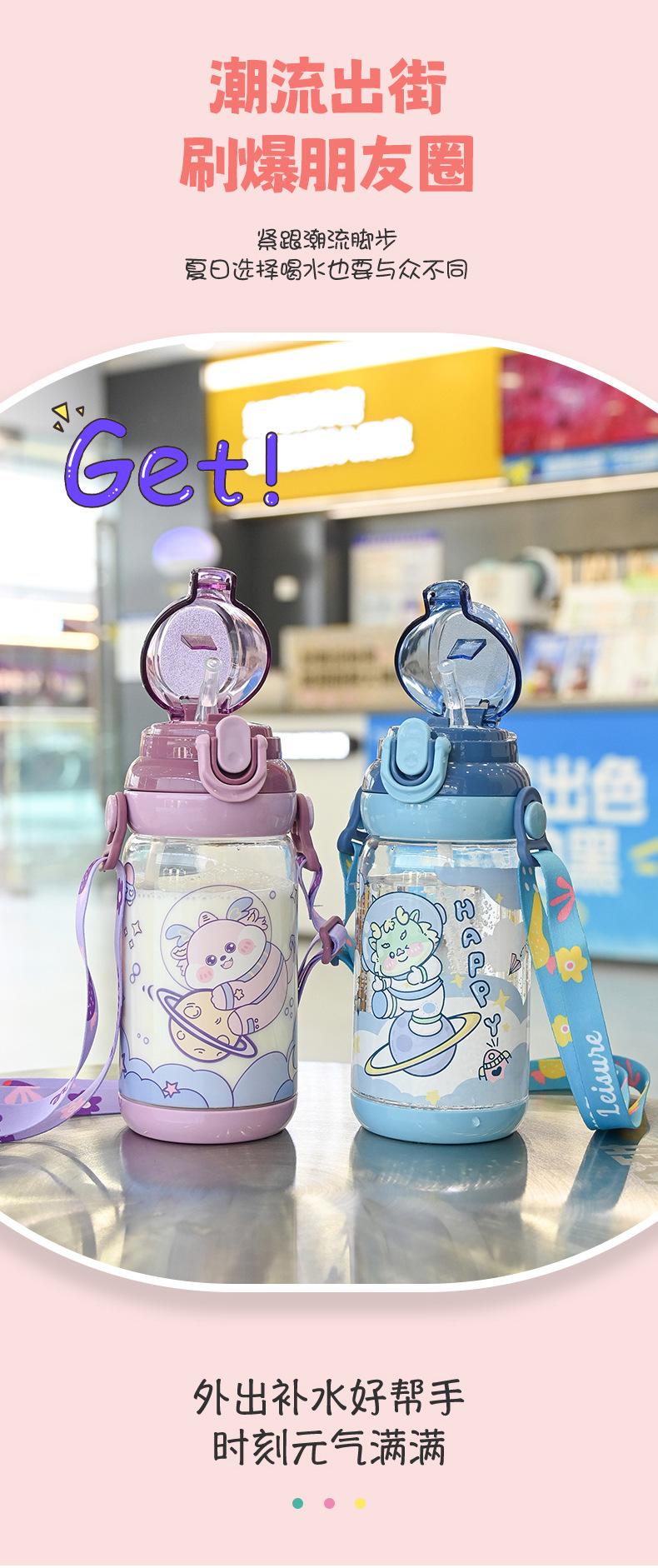 어린이 물 컵 여자 학교 특수 플라스틱 컵 남성과 초등 학생을위한 휴대용 주전자 여름 귀여운 흡입 컵스토어 가기