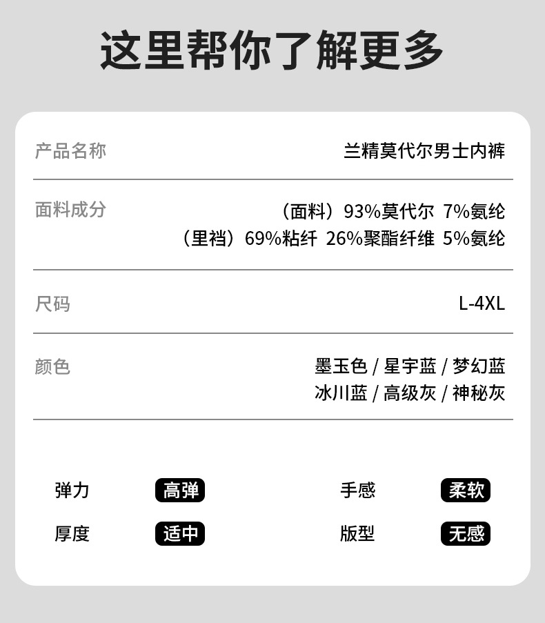 A급 란징 모달 남성용 속옷 7A 항균 통기성 반바지 제조업체 도매 무탄소 무흔적 남성 속옷스토어 가기