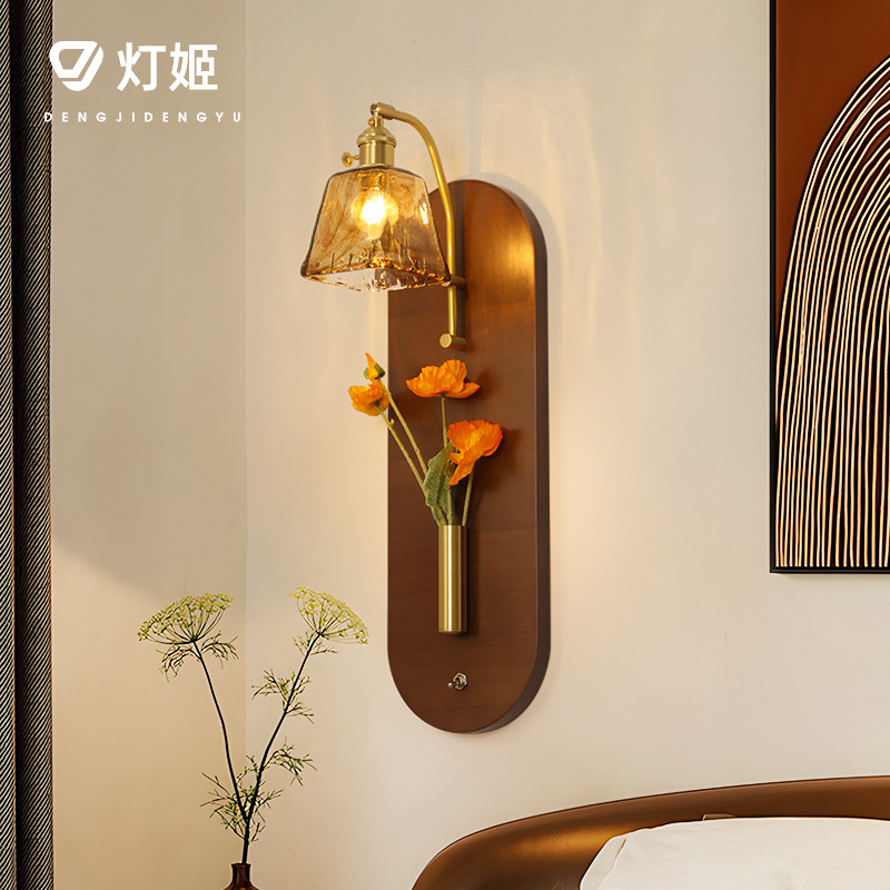 중세 시대 침묵하는 바람 틈새 복고풍 거실 침실 침실 입구 복도 홈스테이 카페 우드 보드 벽 램프
