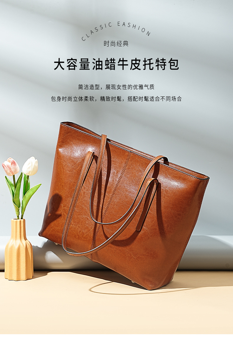 欧美时尚女包2025百搭真皮托特包 洋气质感大容量牛皮女士单肩包