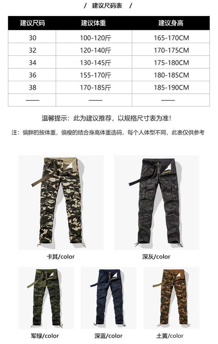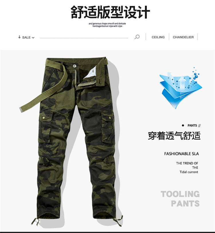 국경 간 야외 멀티 백 작업복 튼튼한 내마모성 코튼 캐주얼 바지 바지 슬림핏 스트레이트 바지 남성용 바지