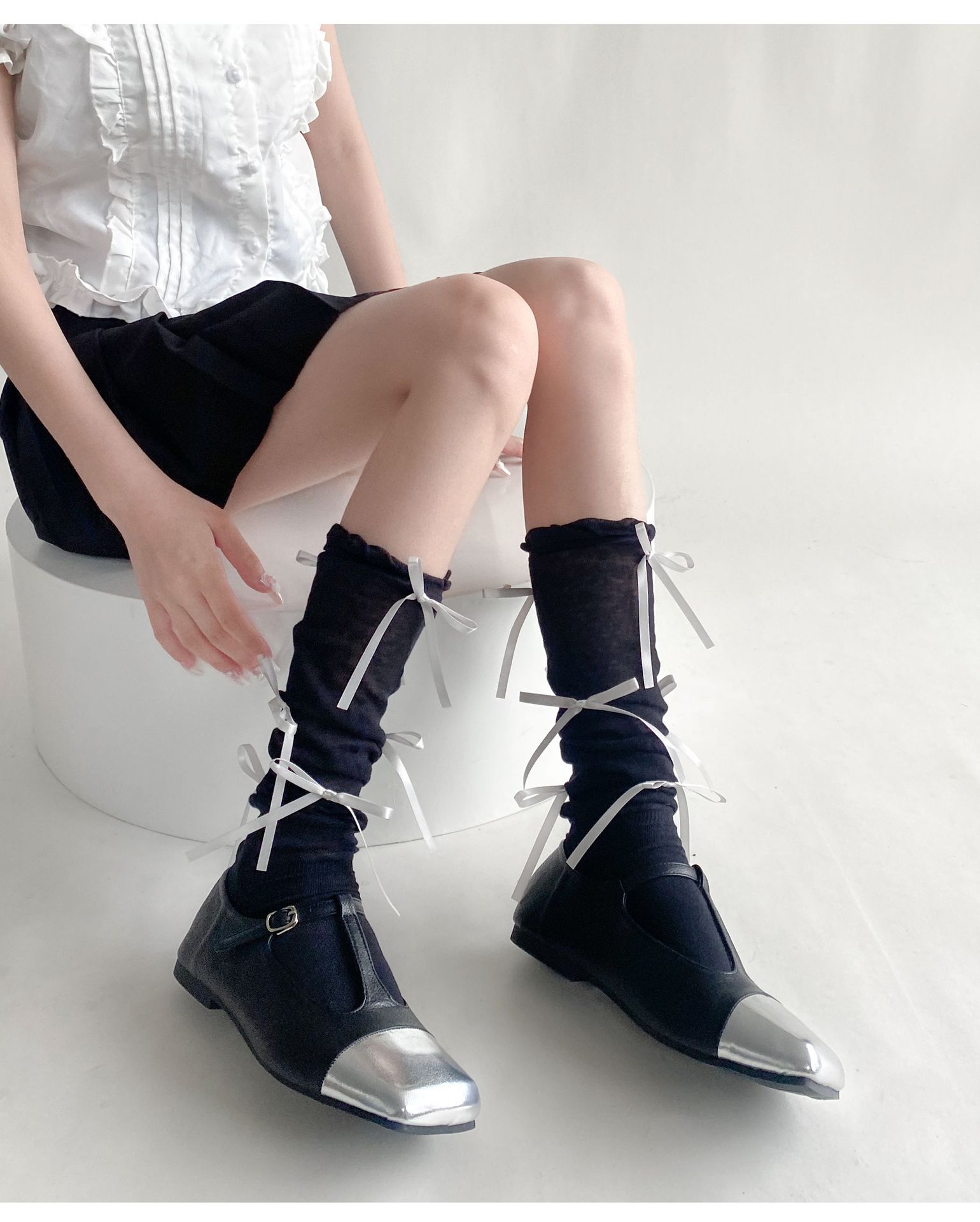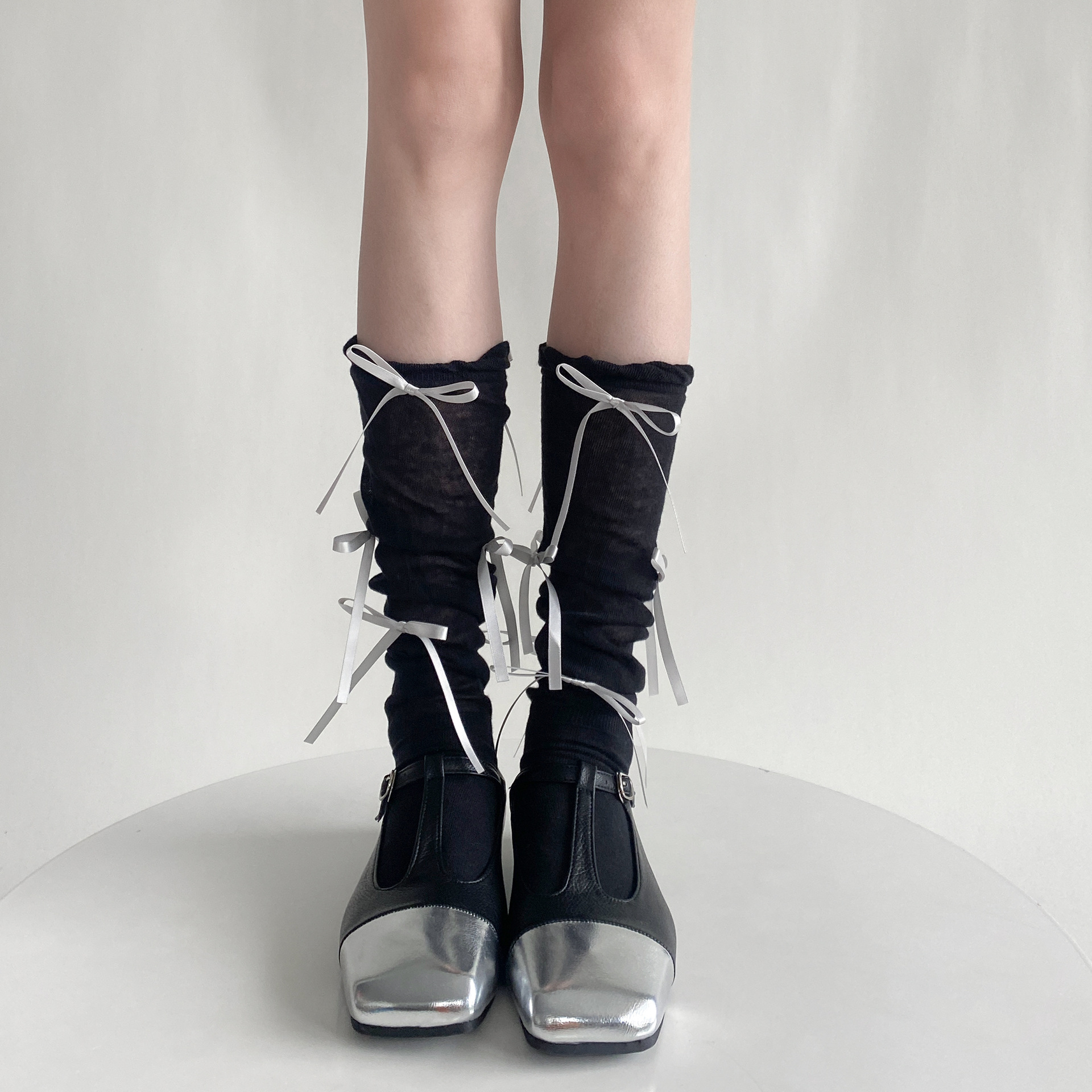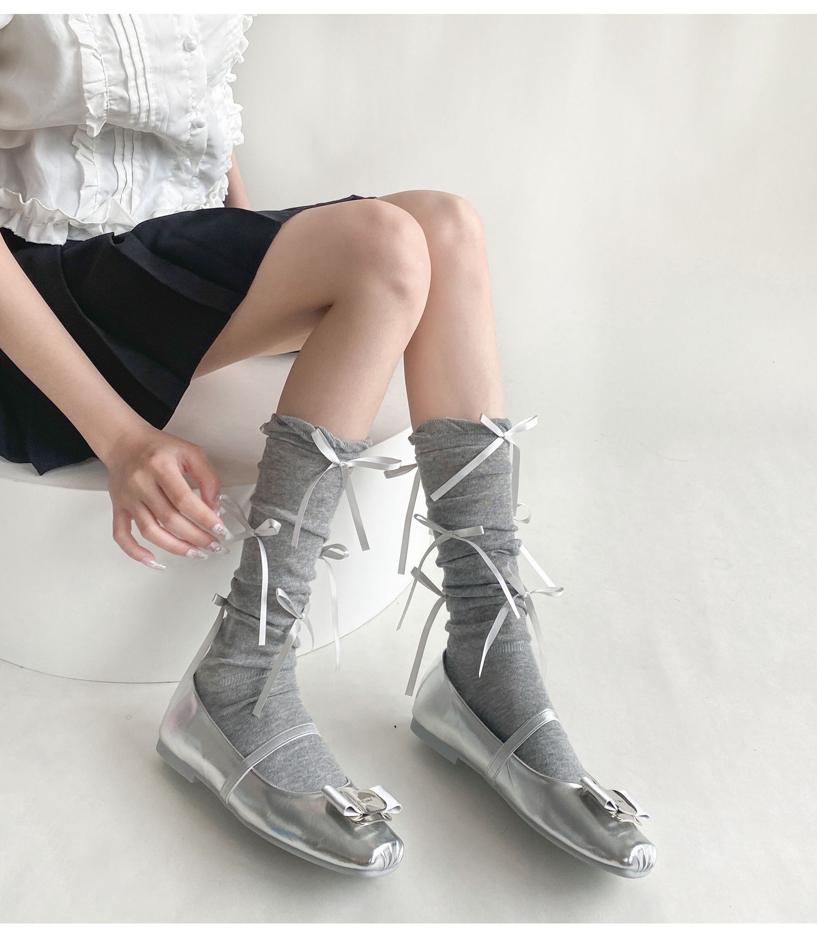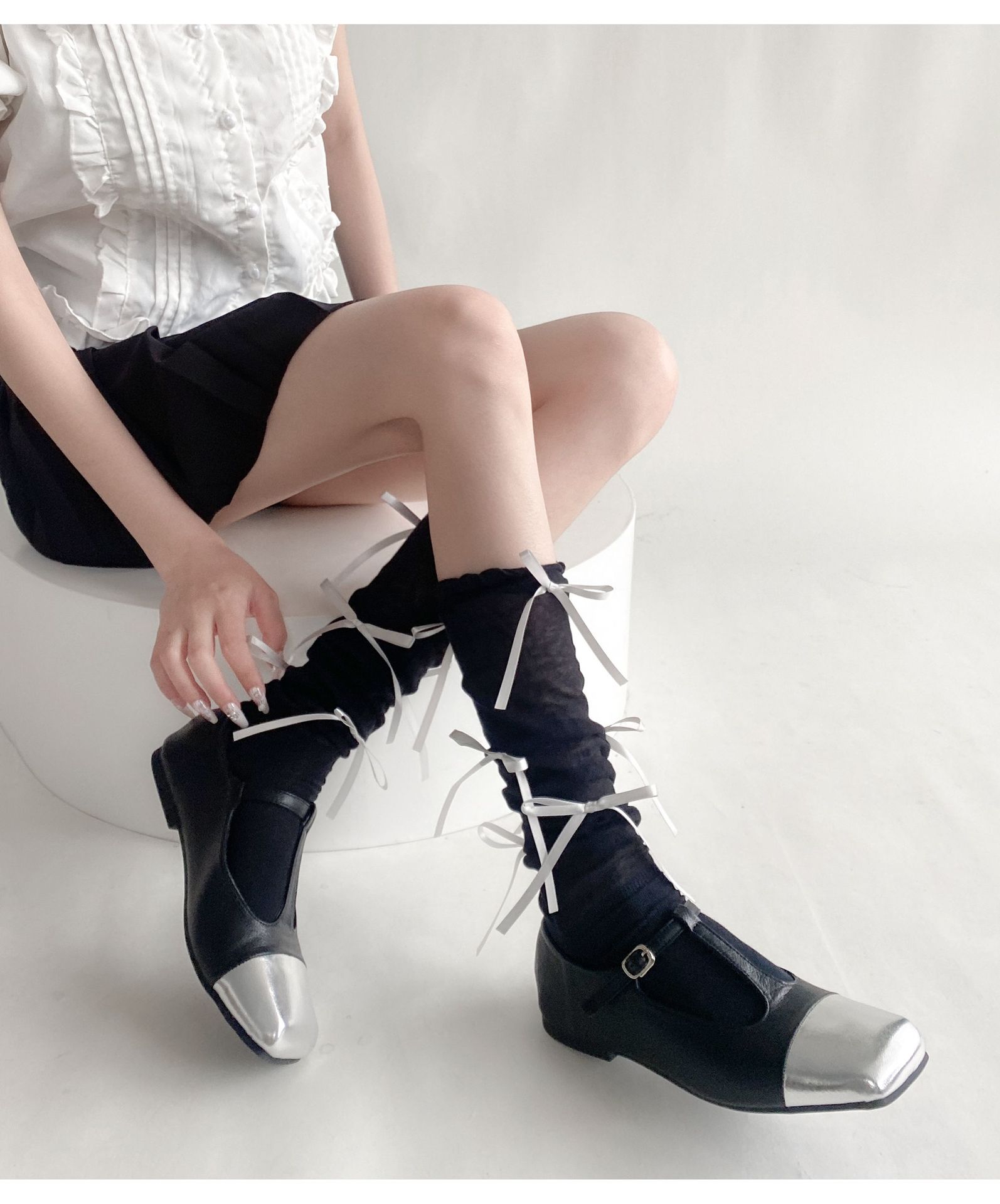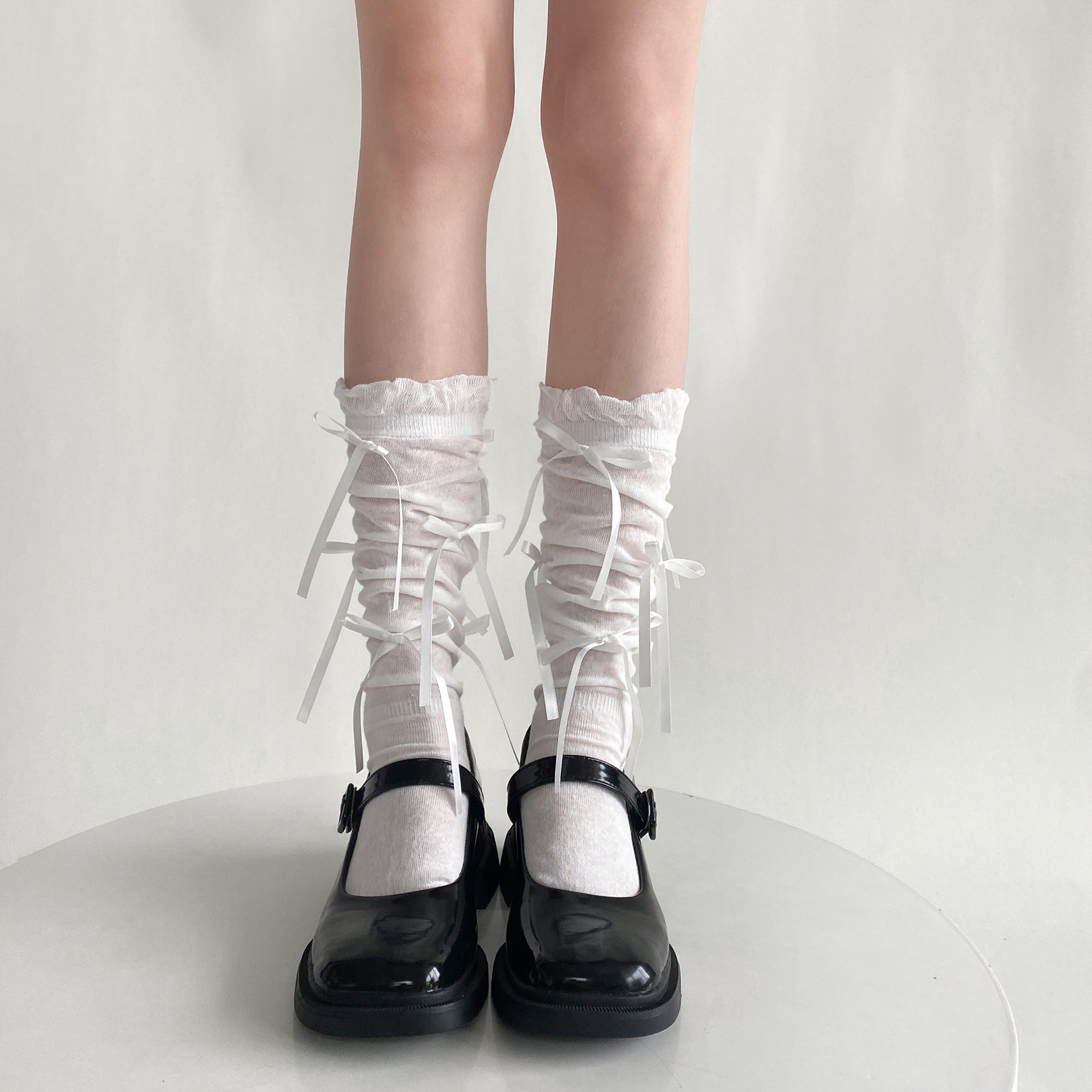 봄 여름 얇은 신상품 버블 컷 약간 비침이 있는 발목 양말 발레 스타일 리본 달린 독특한 디자인 여성 양말스토어 가기