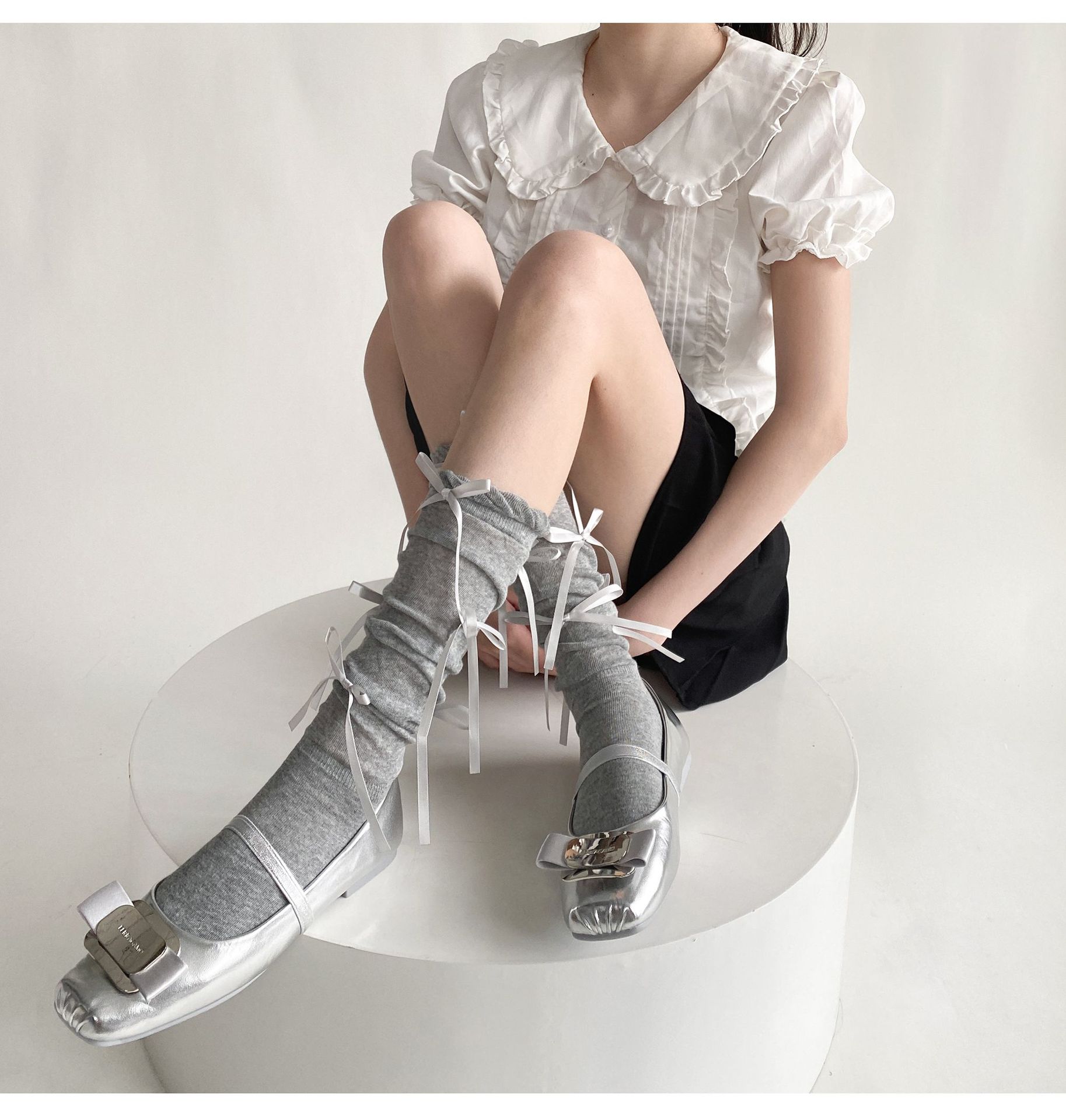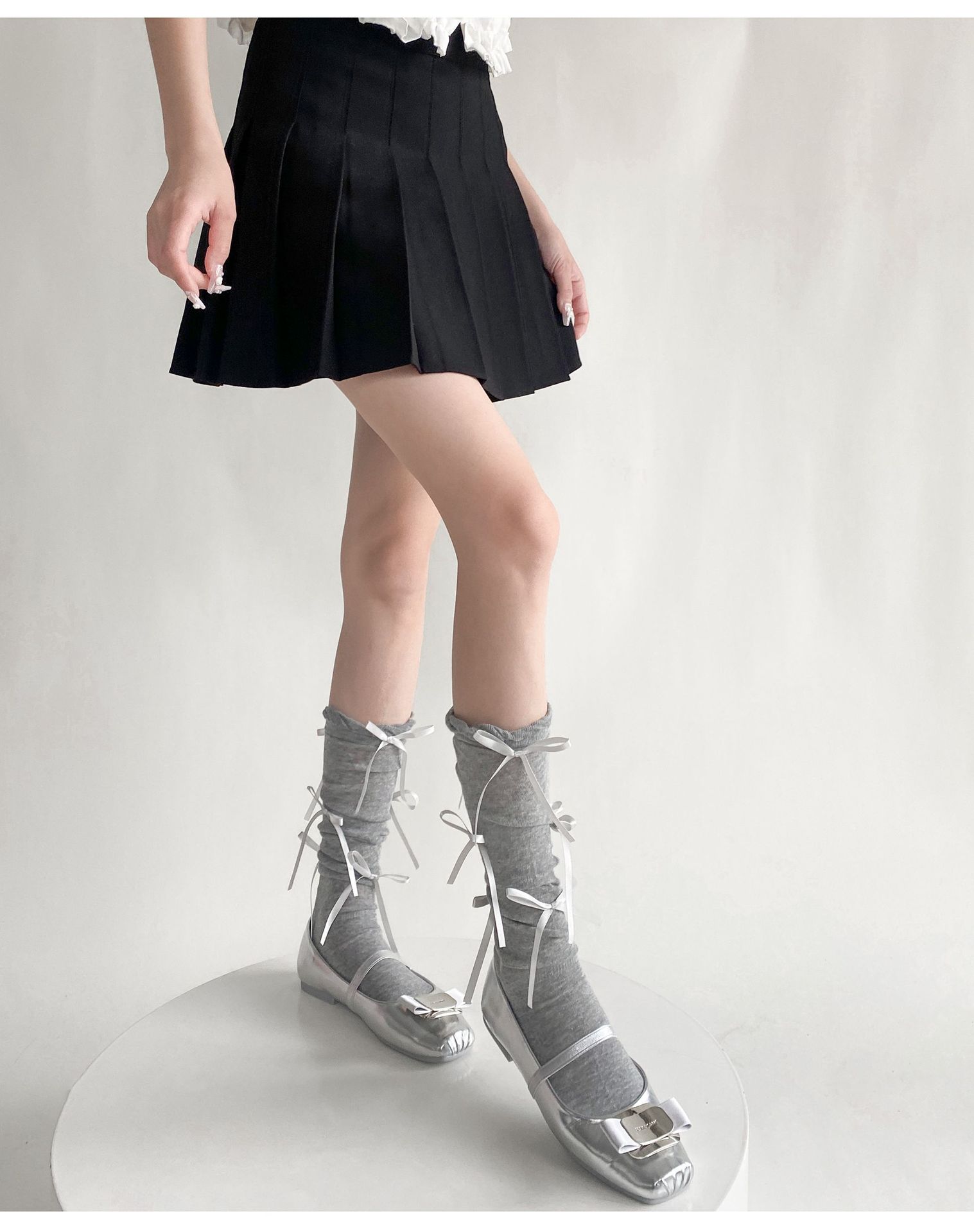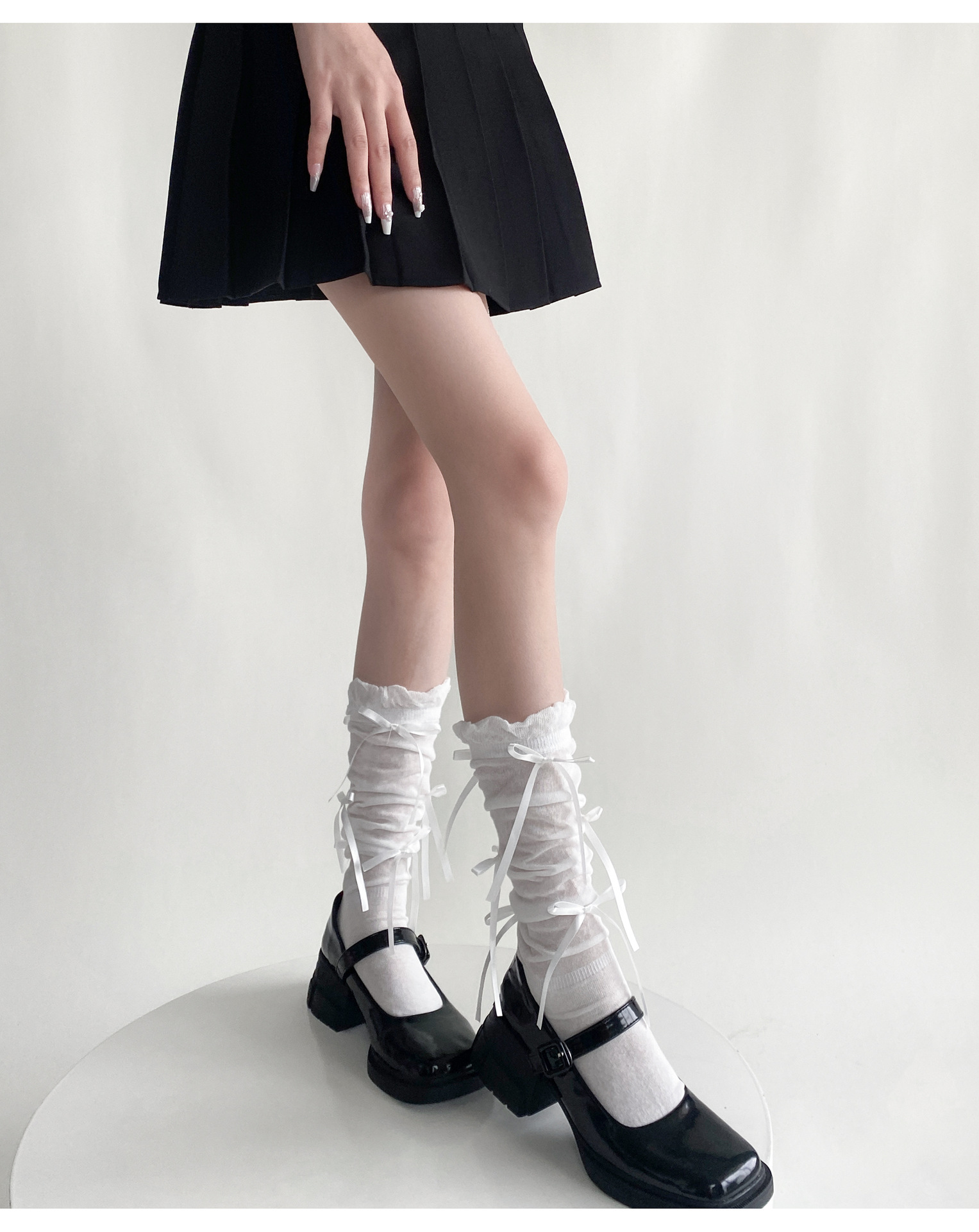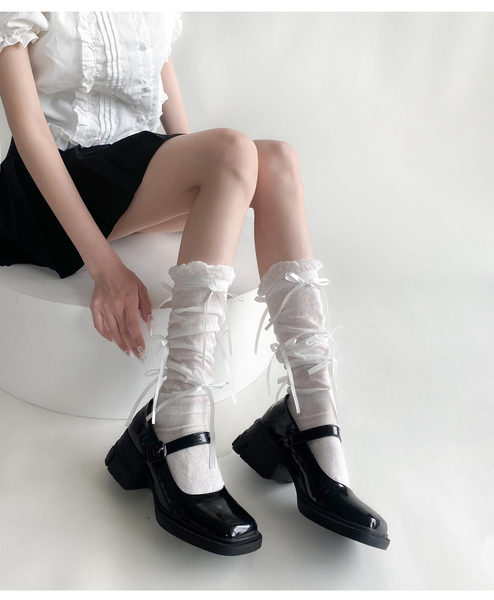봄 여름 얇은 신상품 버블 컷 약간 비침이 있는 발목 양말 발레 스타일 리본 달린 독특한 디자인 여성 양말스토어 가기