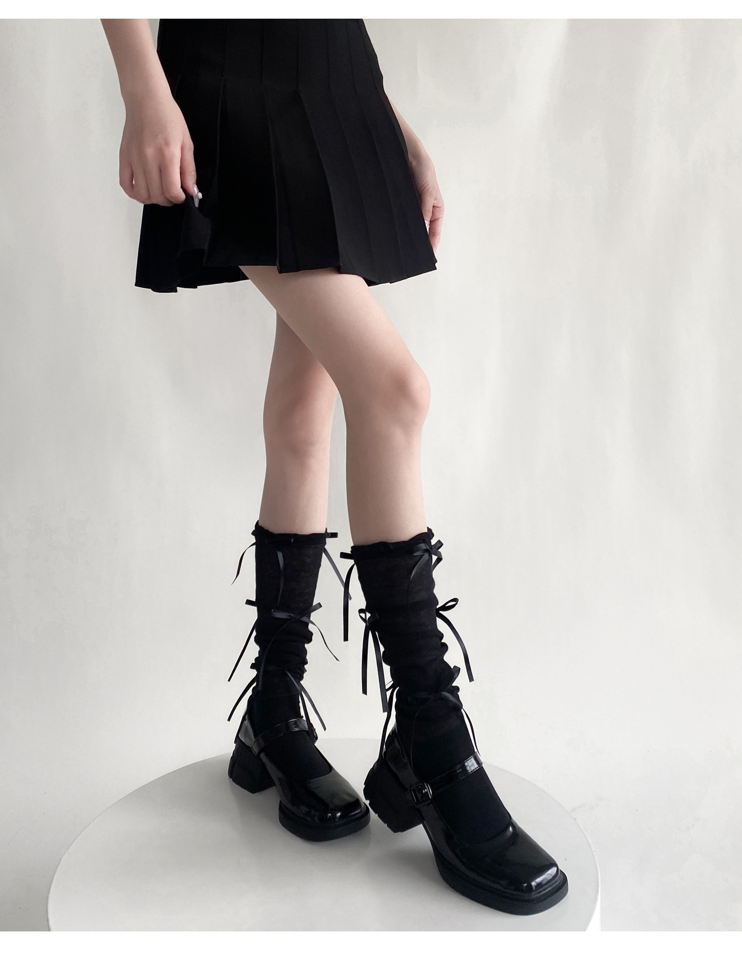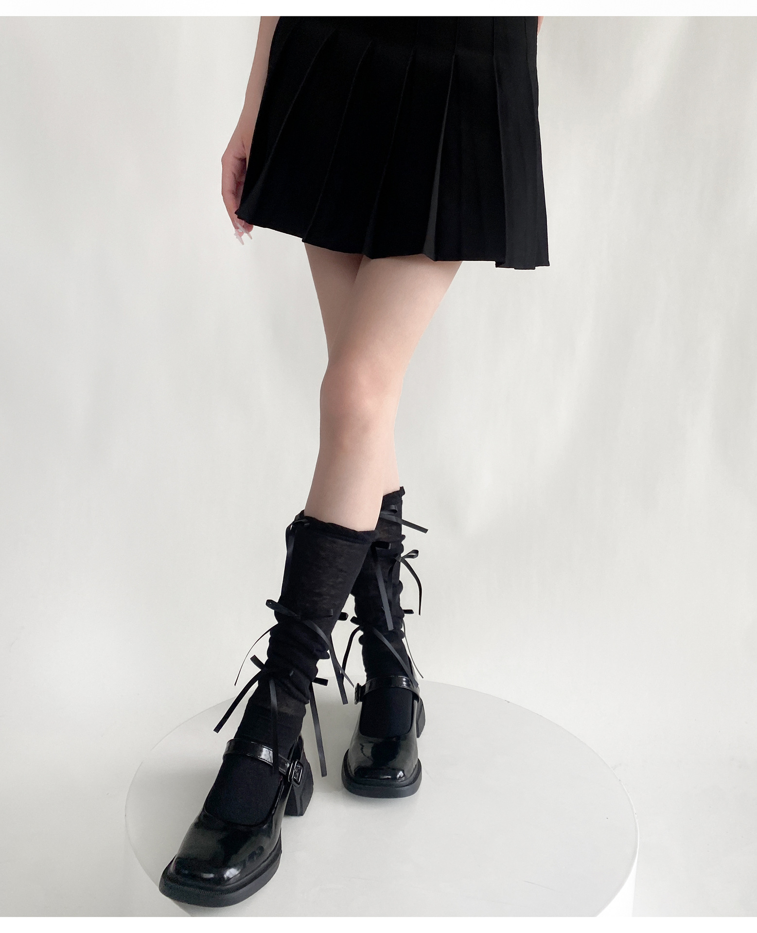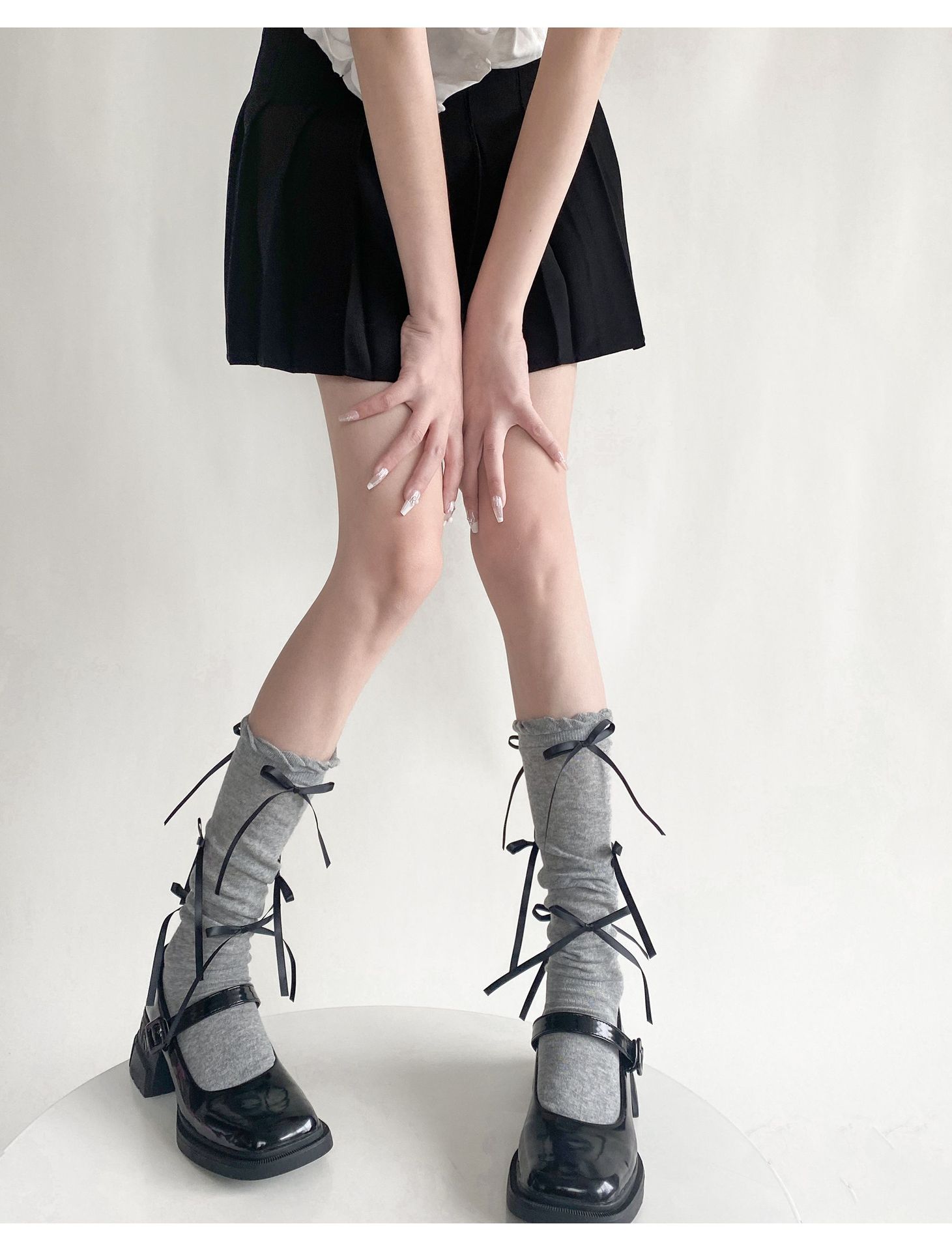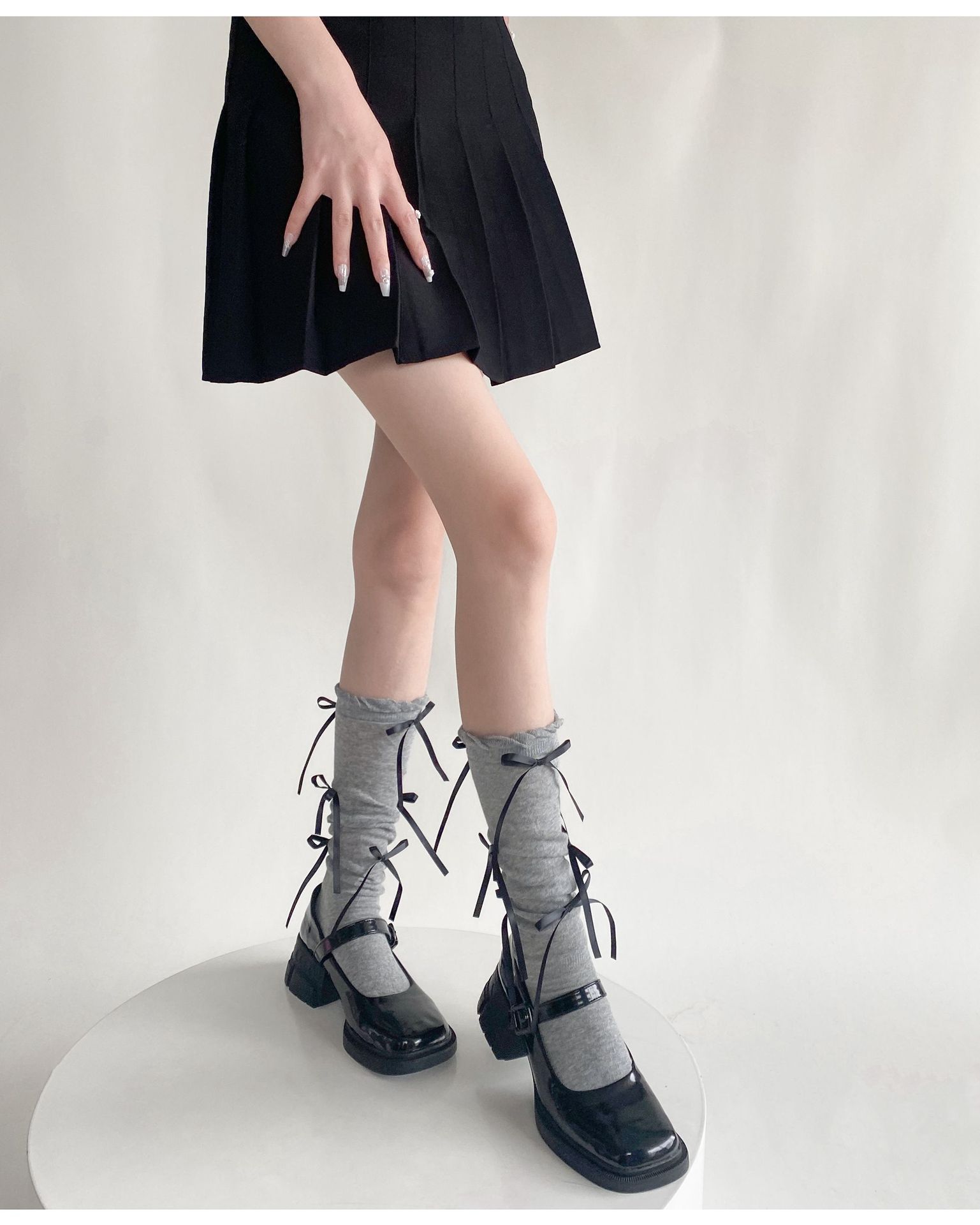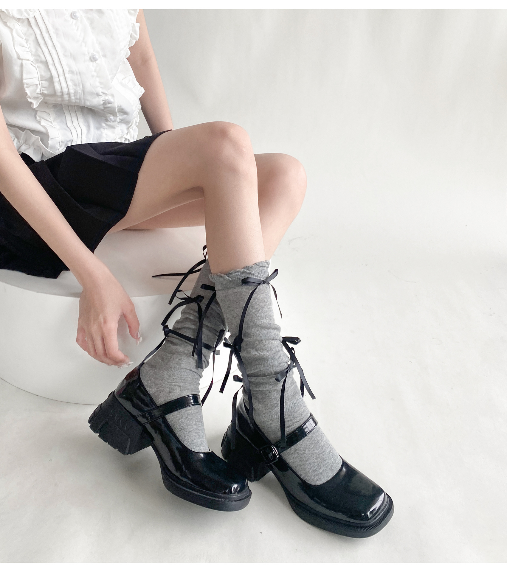 봄 여름 얇은 신상품 버블 컷 약간 비침이 있는 발목 양말 발레 스타일 리본 달린 독특한 디자인 여성 양말스토어 가기