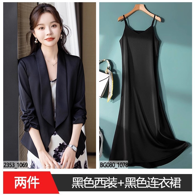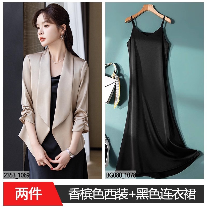 아세트산 새틴 작은 세트 재킷 여성 봄 2024 새로운 여신 팬 전문 착용 패션 우아한 외부 탑스토어 가기