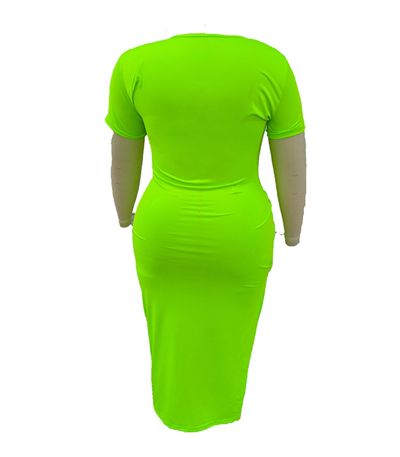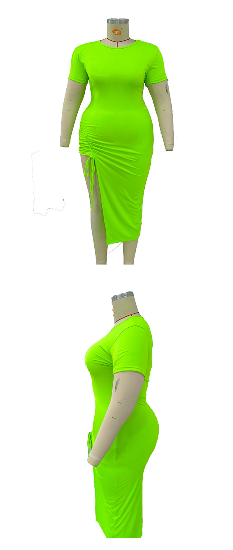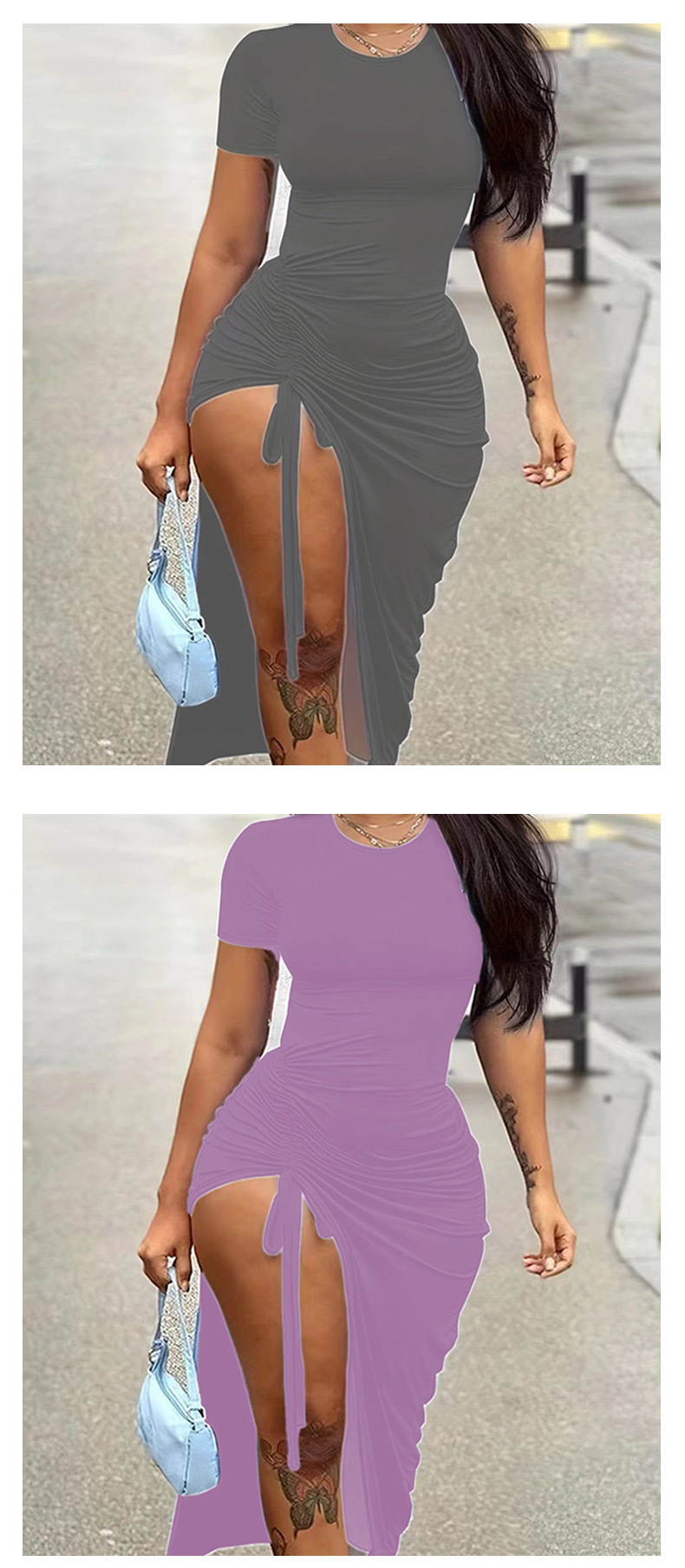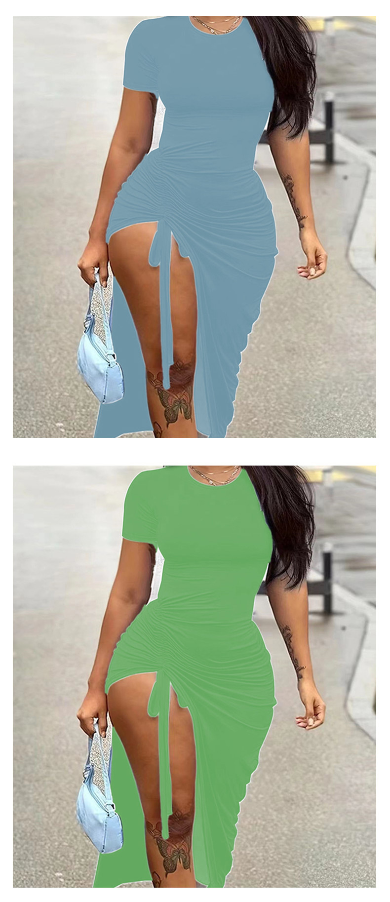 AliExpress 유럽과 미국 2024 여성 섹시 슬림 핏 라운드 넥 솔리드 컬러 플리트 비정규 짧은 소매 원피스