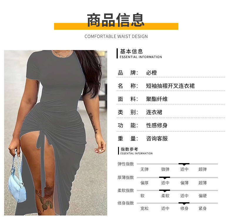 AliExpress 유럽과 미국 2024 여성 섹시 슬림 핏 라운드 넥 솔리드 컬러 플리트 비정규 짧은 소매 원피스스토어 가기