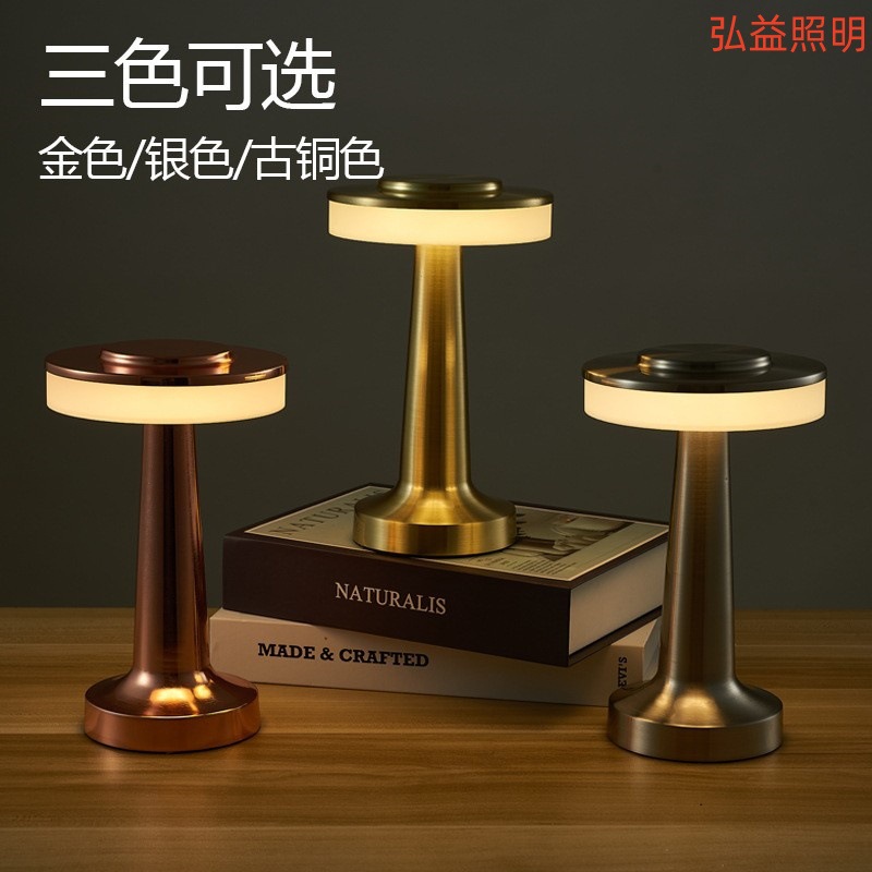 국경 간 인기 판매 복고풍 금속 덤벨 테이블 램프 USB 충전 분위기 램프 침대 옆 터치 테이블 램프 팻 야간 조명
