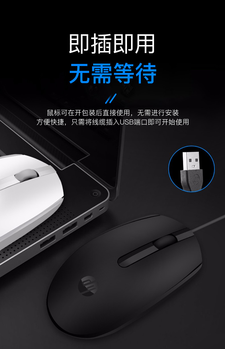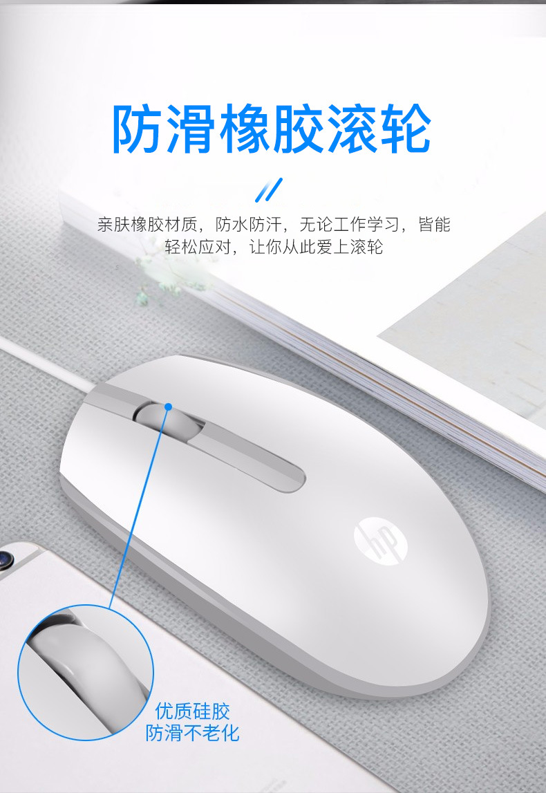 HP M10 유선 마우스 비즈니스 사무실 클래식 대칭 오디오 유선 USB 인터페이스 플러그 앤 플레이 마우스스토어 가기