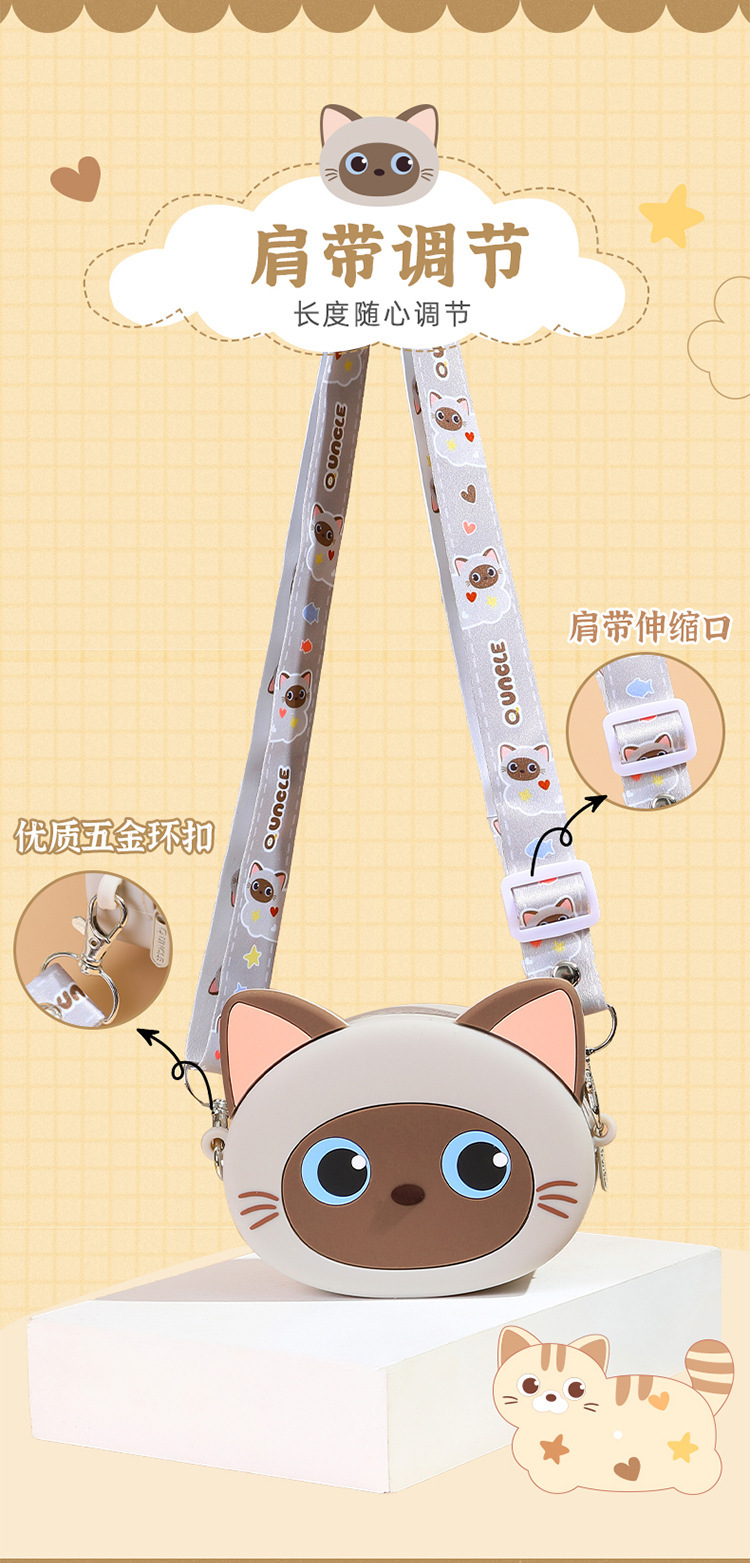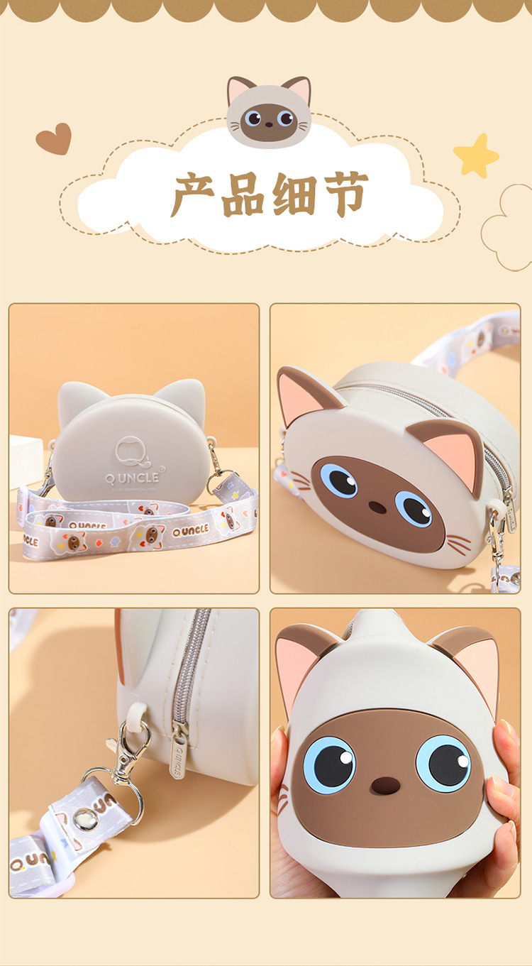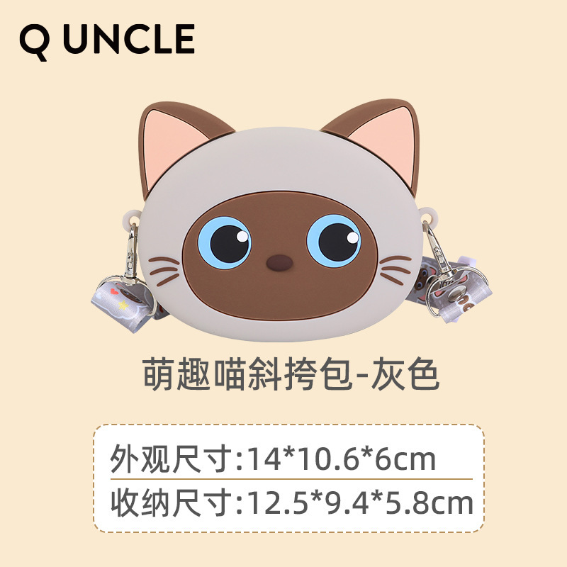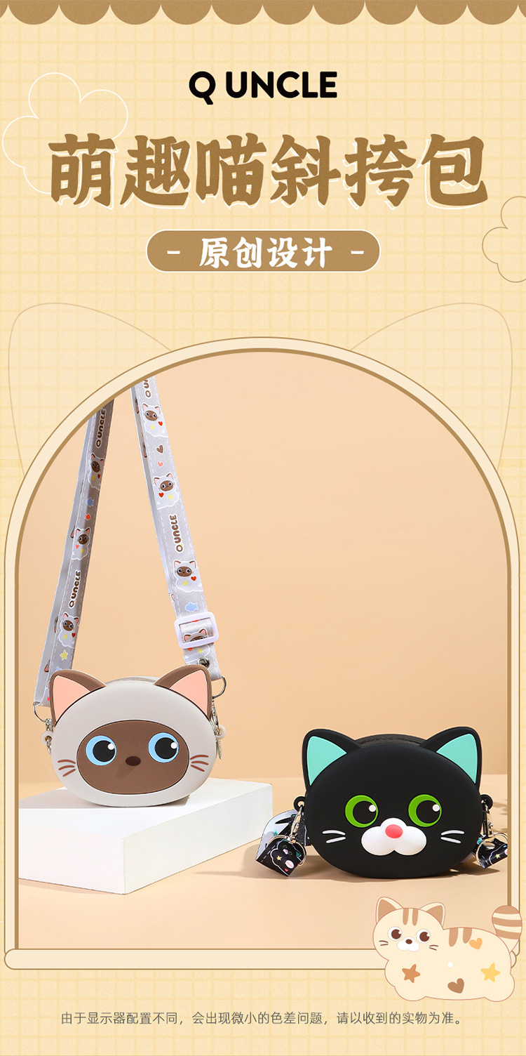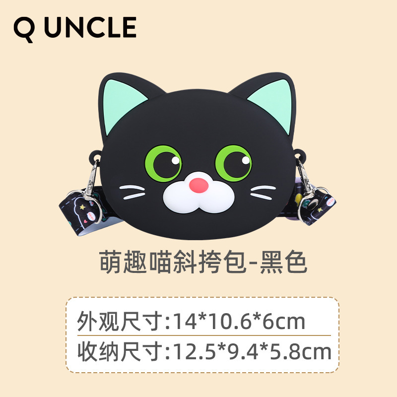 Q UNCLE 어린이 3 차원 만화 고양이 실리콘 메신저 가방 귀여운 재미있는 야옹 동전 지갑 귀여운 새끼 고양이 어깨 가방