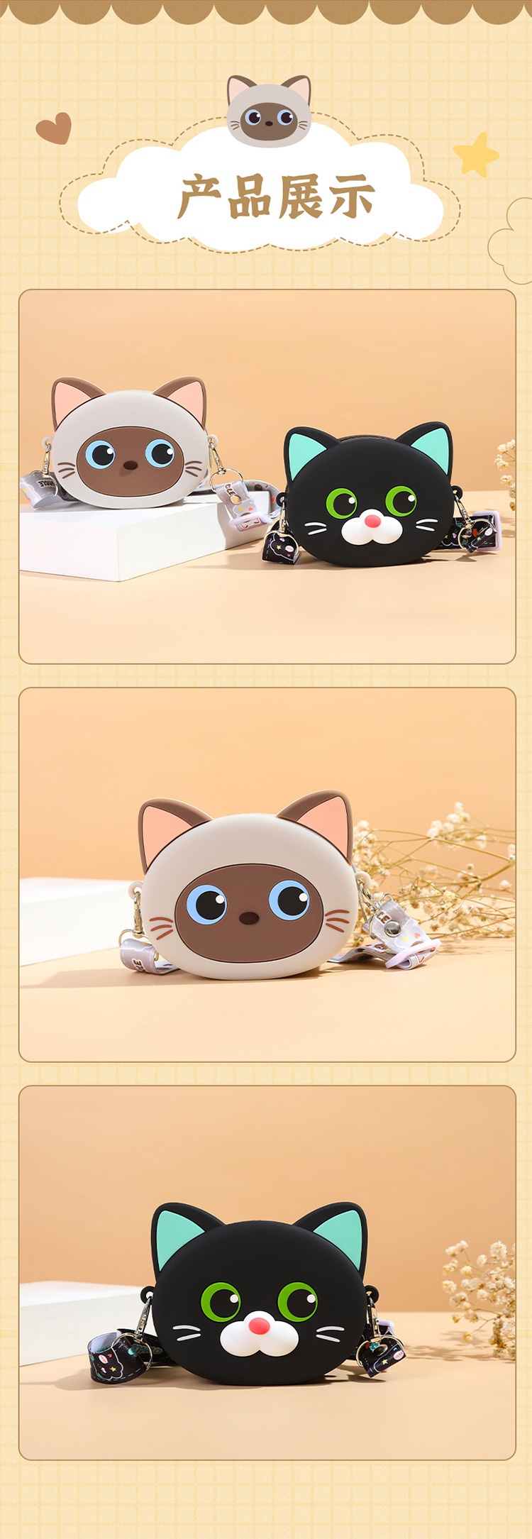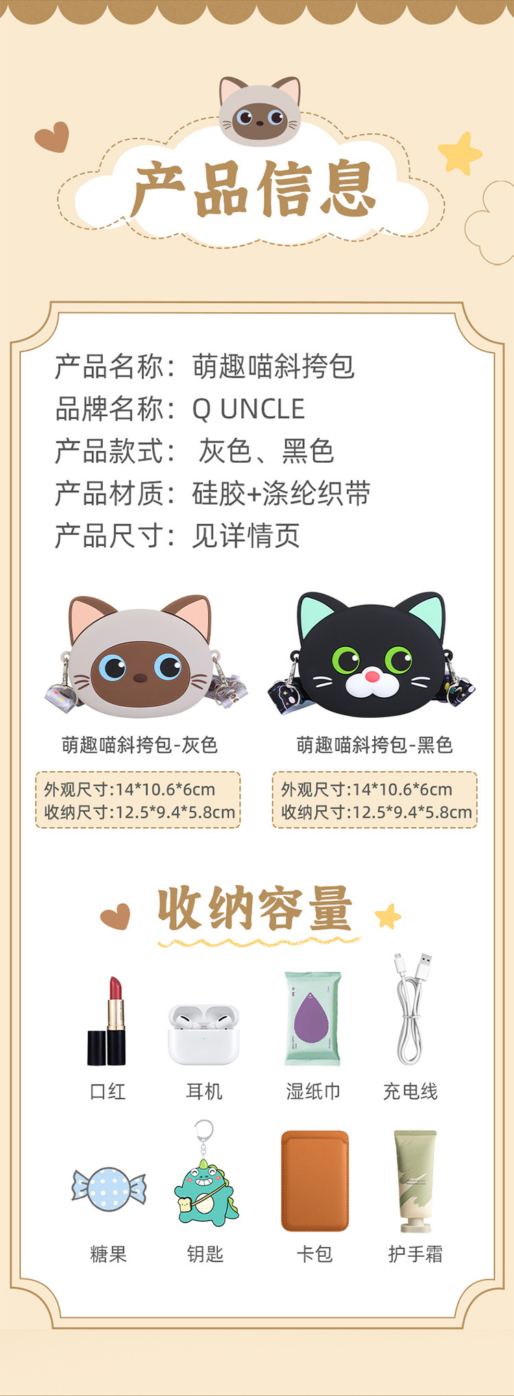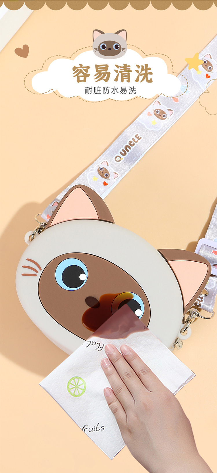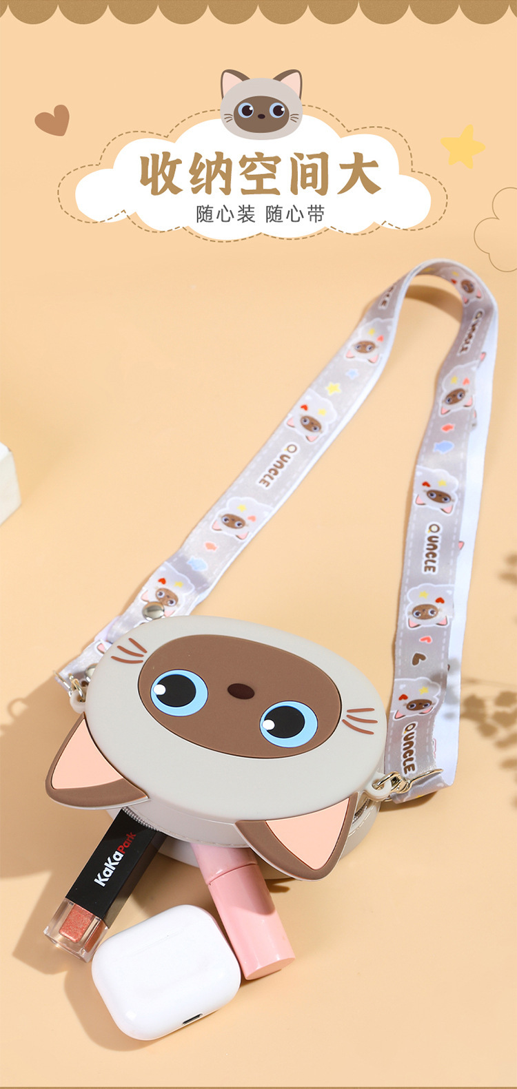 Q UNCLE 어린이 3 차원 만화 고양이 실리콘 메신저 가방 귀여운 재미있는 야옹 동전 지갑 귀여운 새끼 고양이 어깨 가방