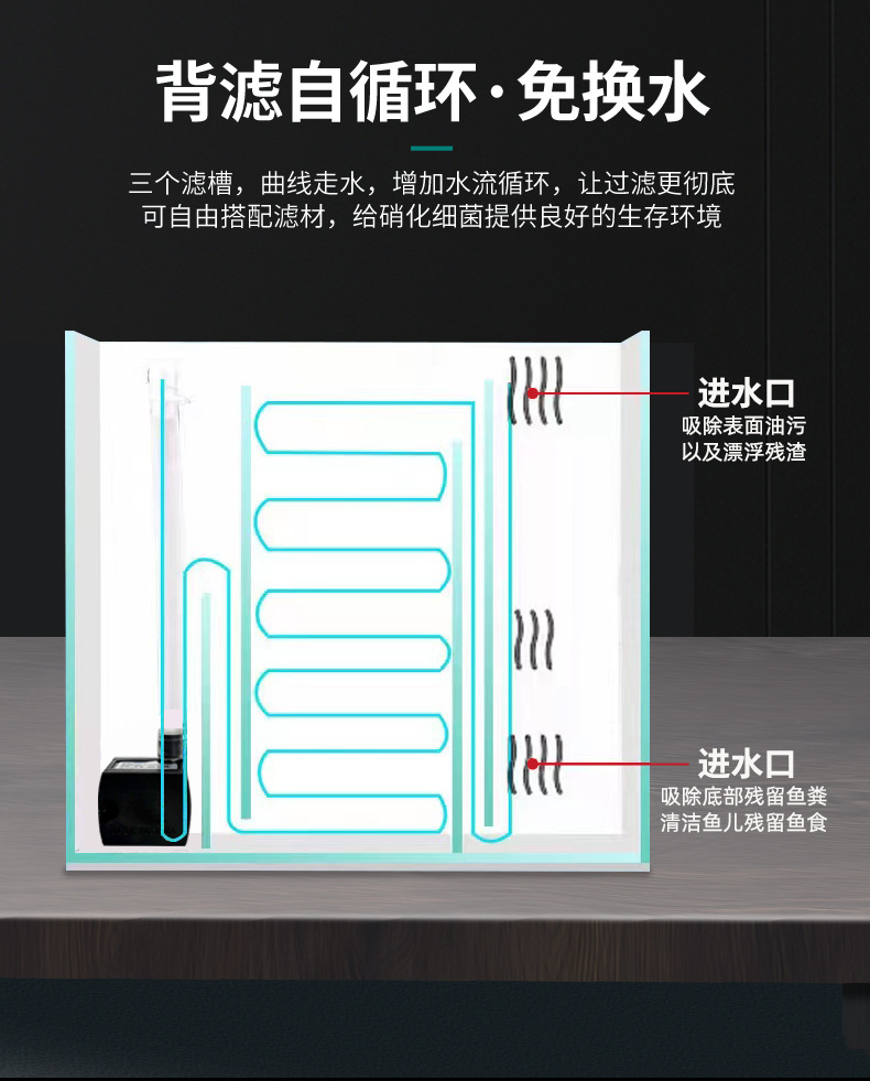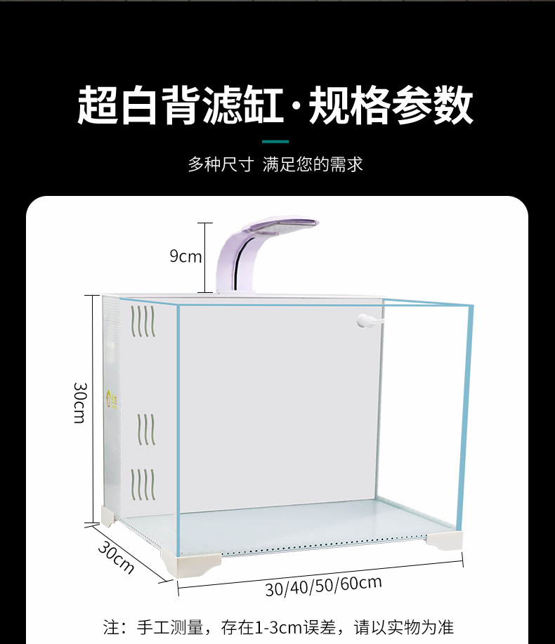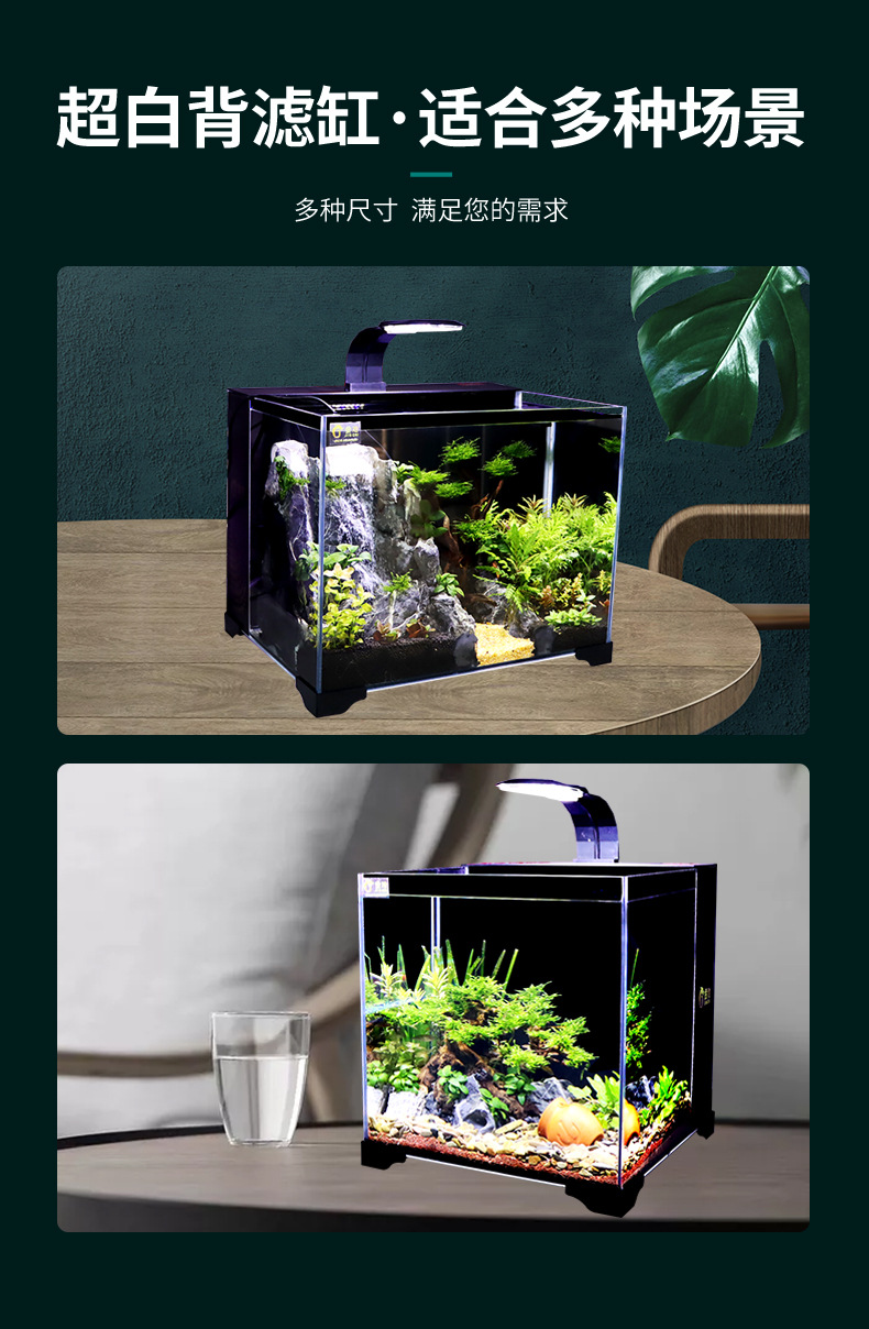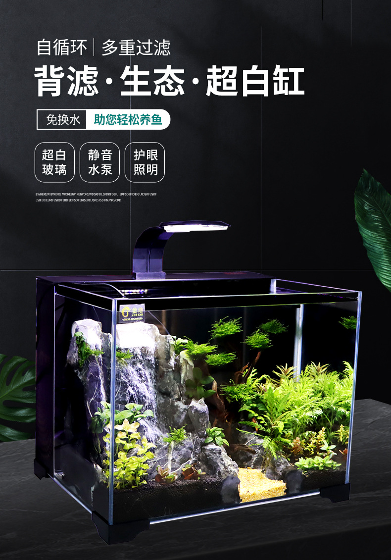 소형 워터젯 백플레인 수조, 무소음, 물 교환 없음, 수족관, 거실 데스크탑 수조, 초백색 유리 백필터 수조스토어 가기