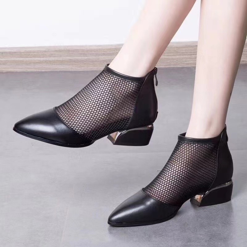 봄과 가을 새로운 여성의 청키 힐 신발 유럽과 미국의 지퍼 메쉬 패션 여성 신발 영국 스타일 한국 스타일 샌들스토어 가기