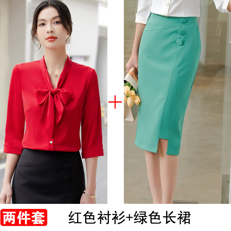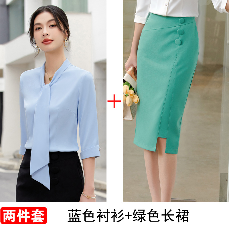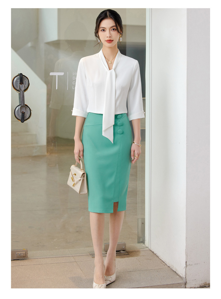 활 셔츠 쓰레기 쉬폰 탑 반소매 전문 한국식 우아한 슬리밍 레이스 업 셔츠 원피스