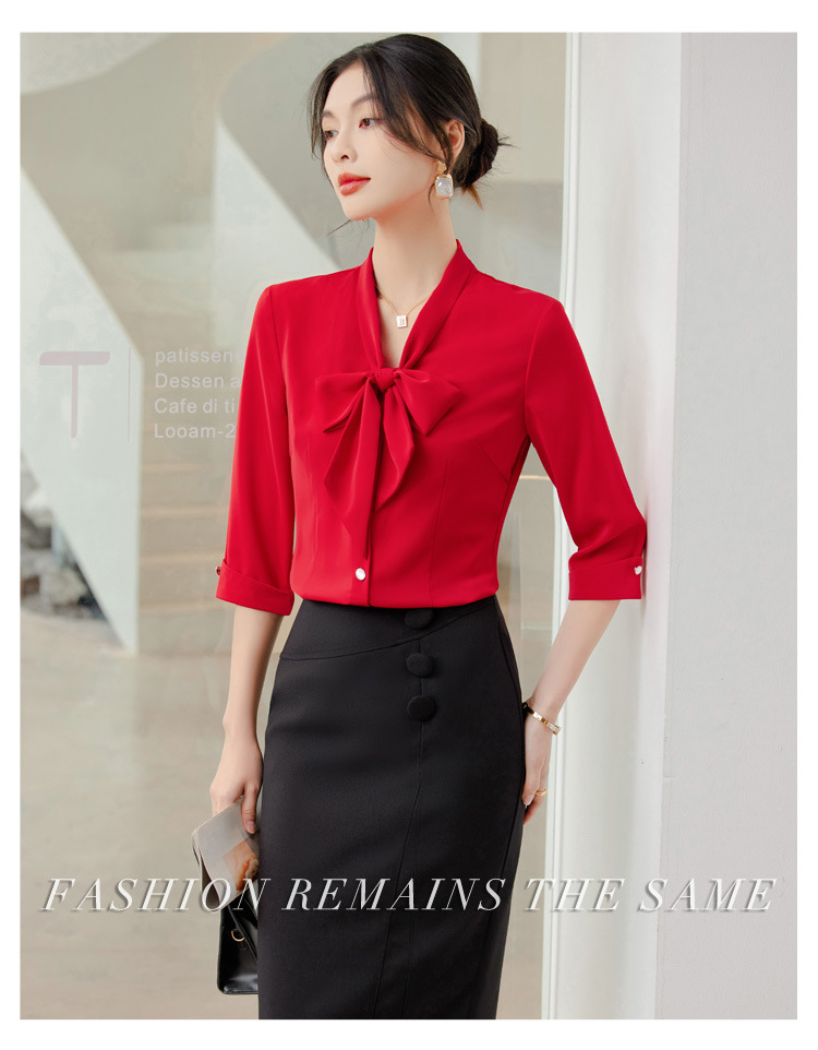 활 셔츠 쓰레기 쉬폰 탑 반소매 전문 한국식 우아한 슬리밍 레이스 업 셔츠 원피스스토어 가기