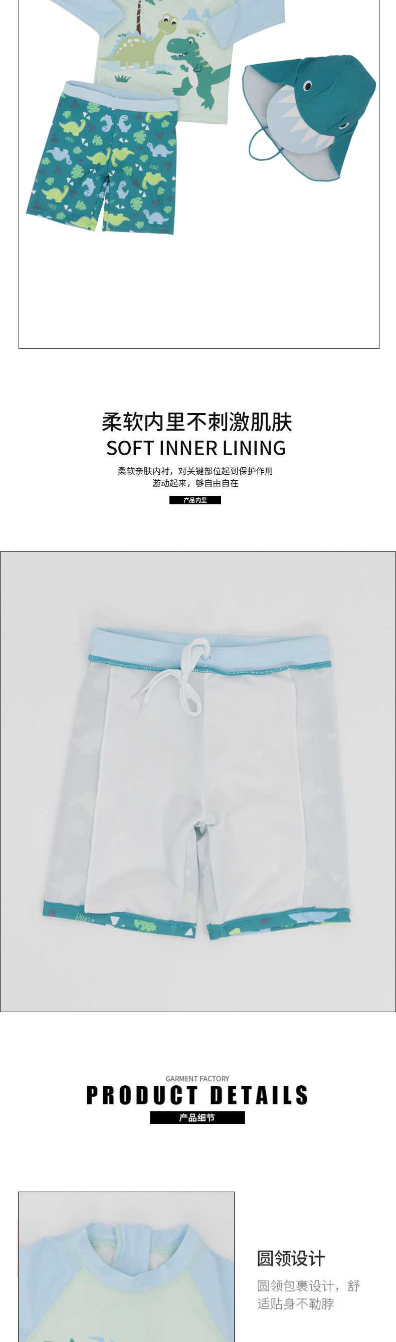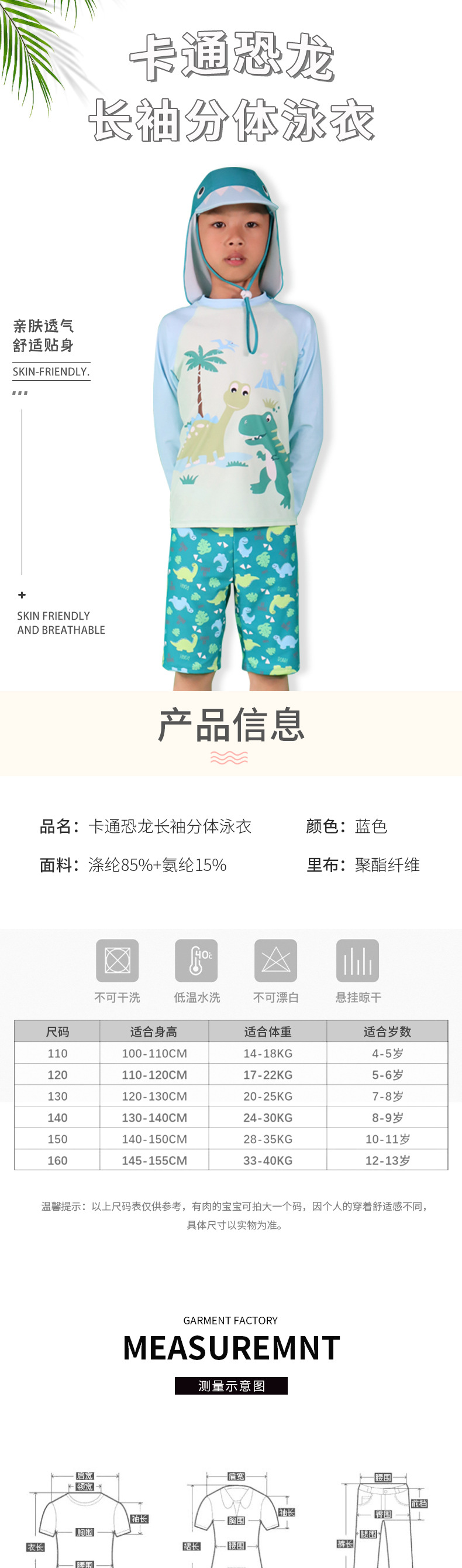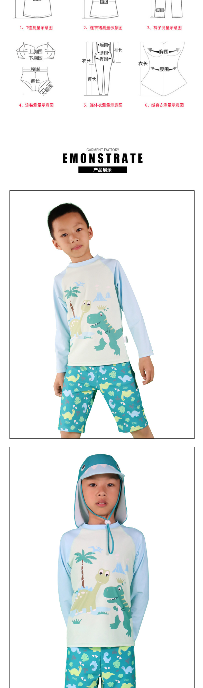 어린이 수영복 3 피스 세트 소년 수영복 세트 모자와 분할 만화 공룡 긴 소매 태양 방지 빠른 건조 수영복스토어 가기