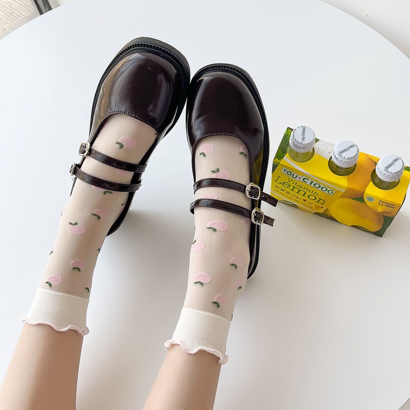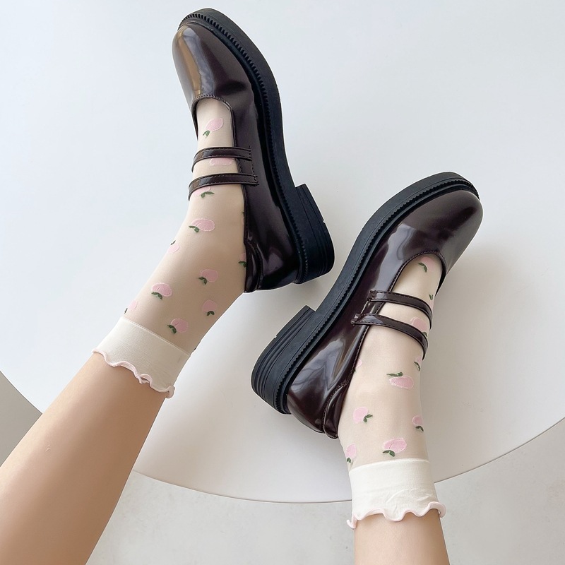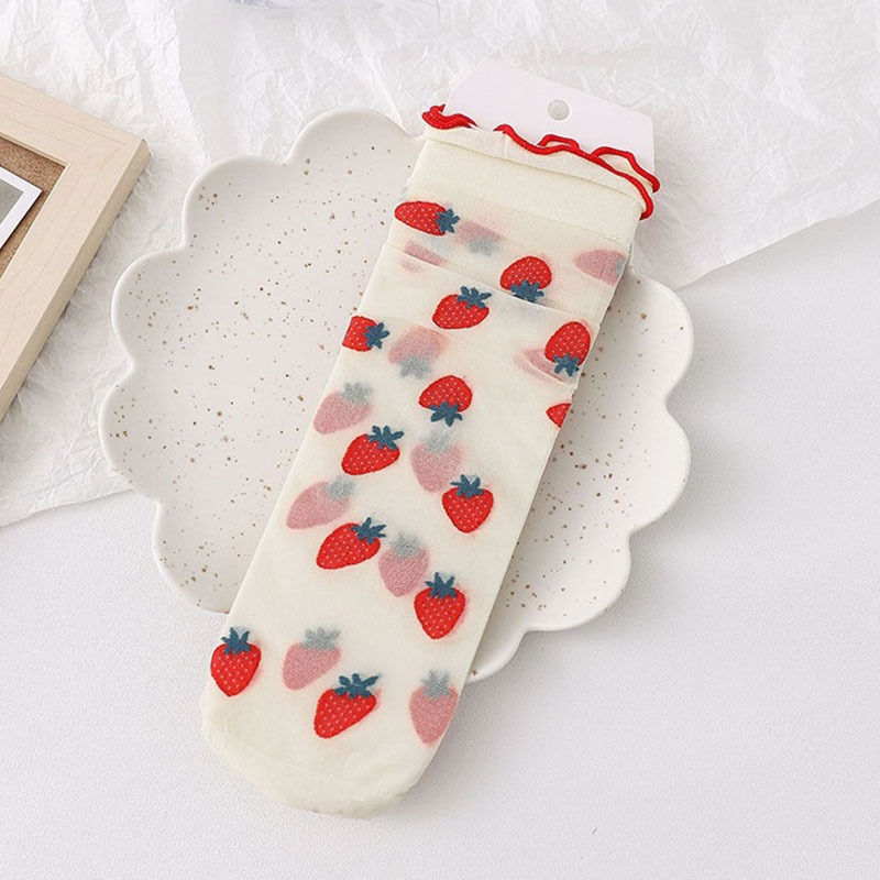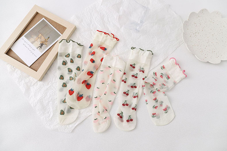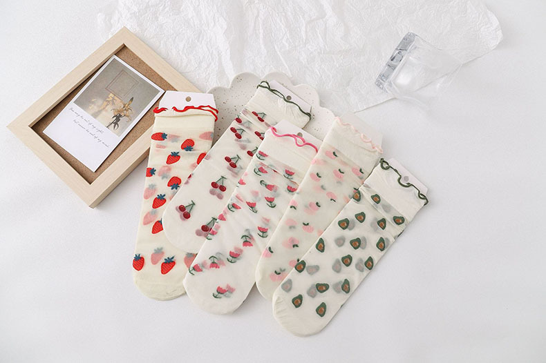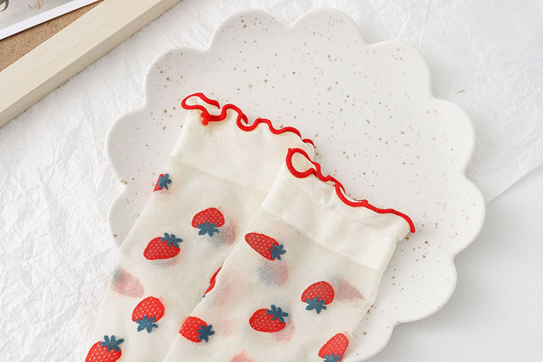 일본풍 귀엽고 달콤한 딸기 크리스탈 실크 카시 미드 종아리 양말 여성용 도매 항균 냄새방지 캐주얼 다용도 양말스토어 가기