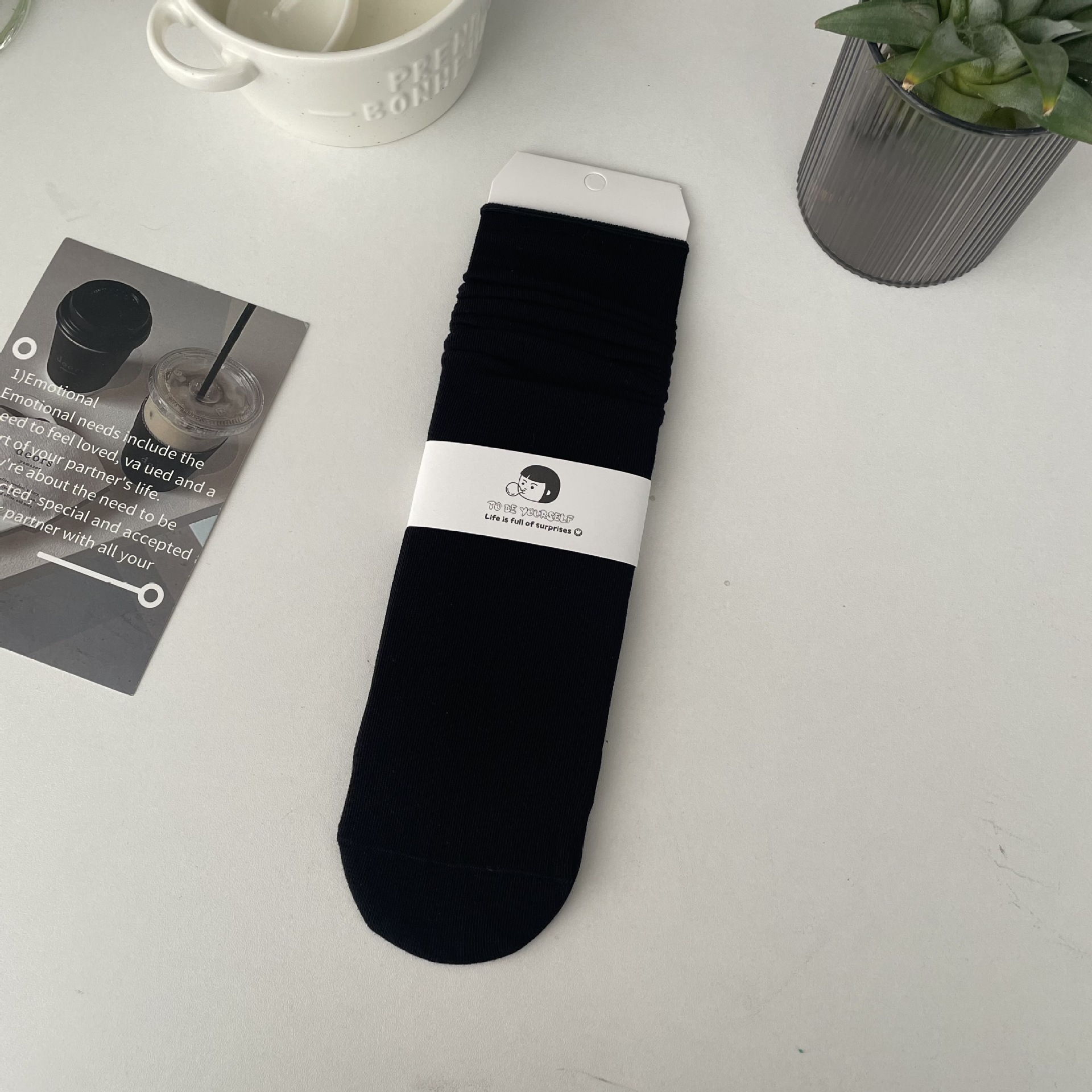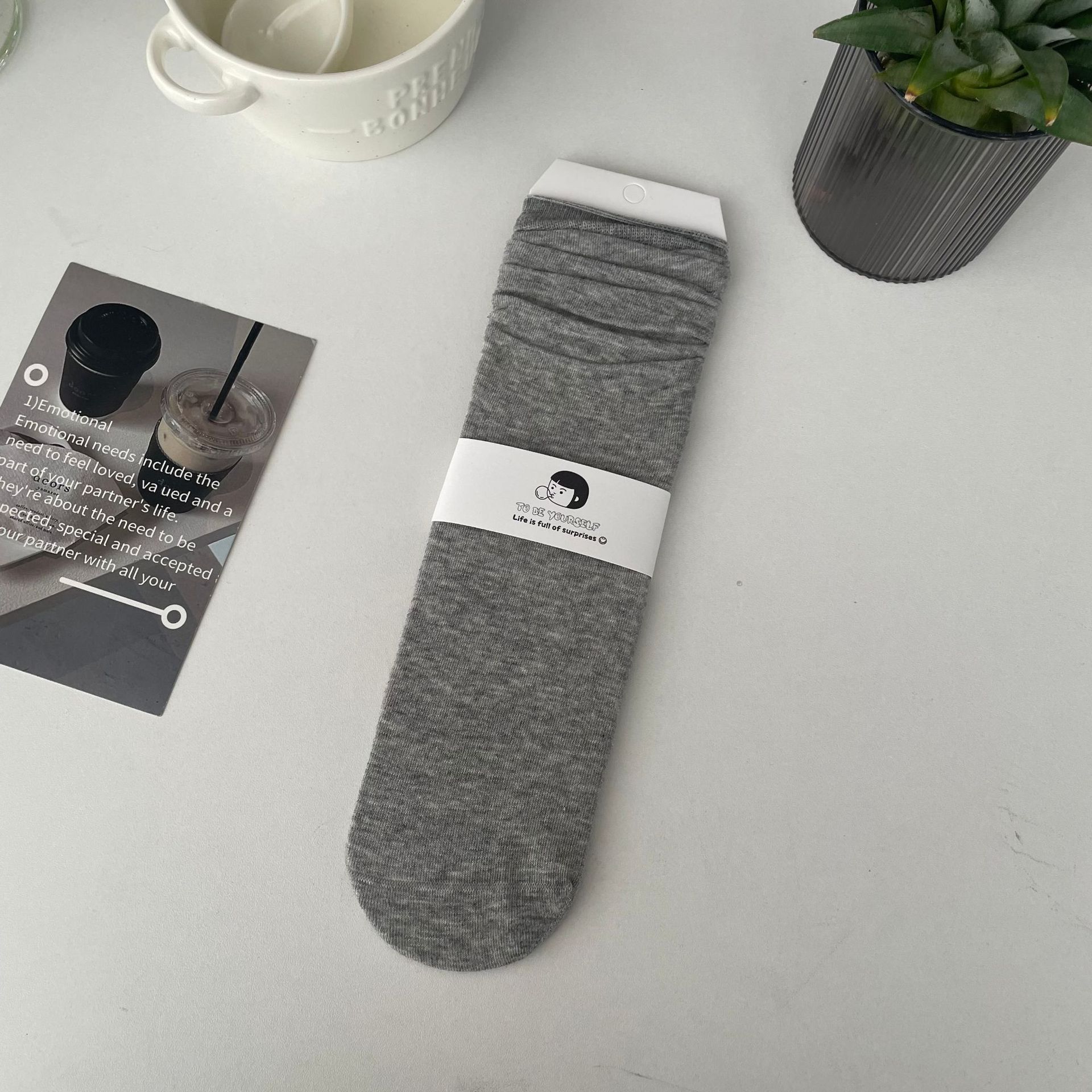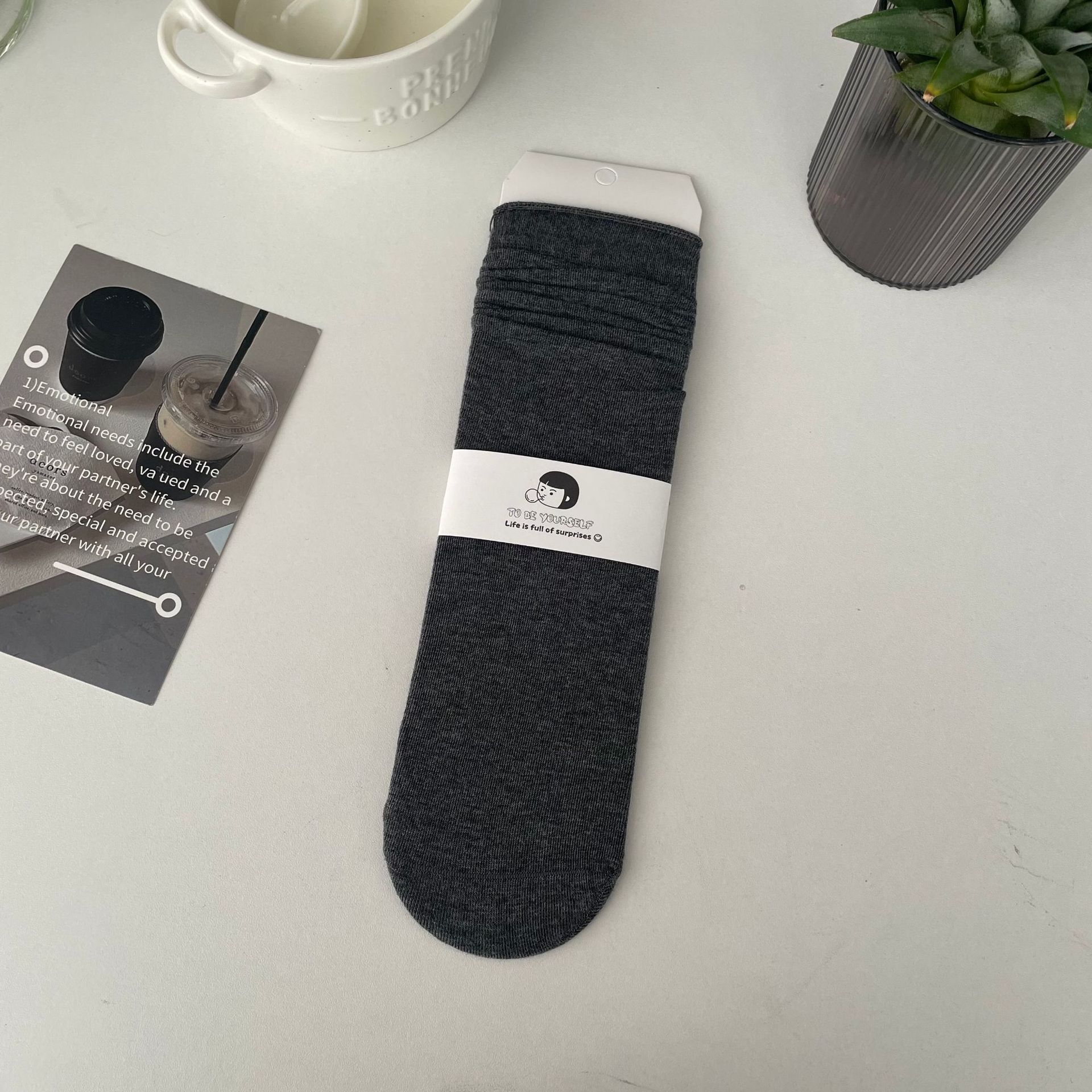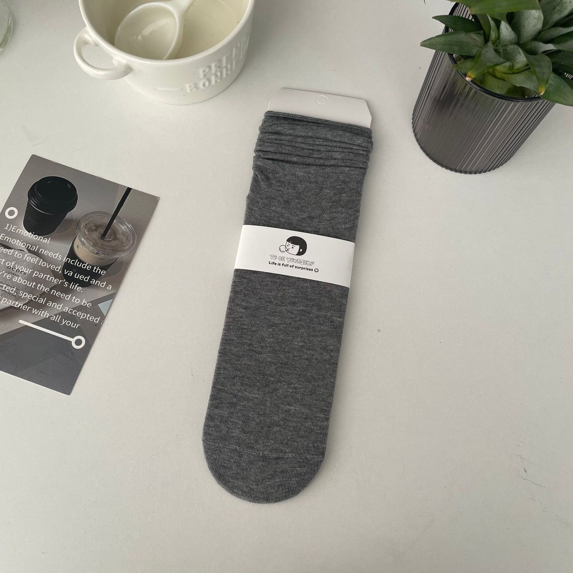 봄과 여름 양말 여성의 중간 튜브 회색 쌓인 양말 안티 필링 코튼 양말 회색 스타킹 흰색 달 양말 뼈없는 양말