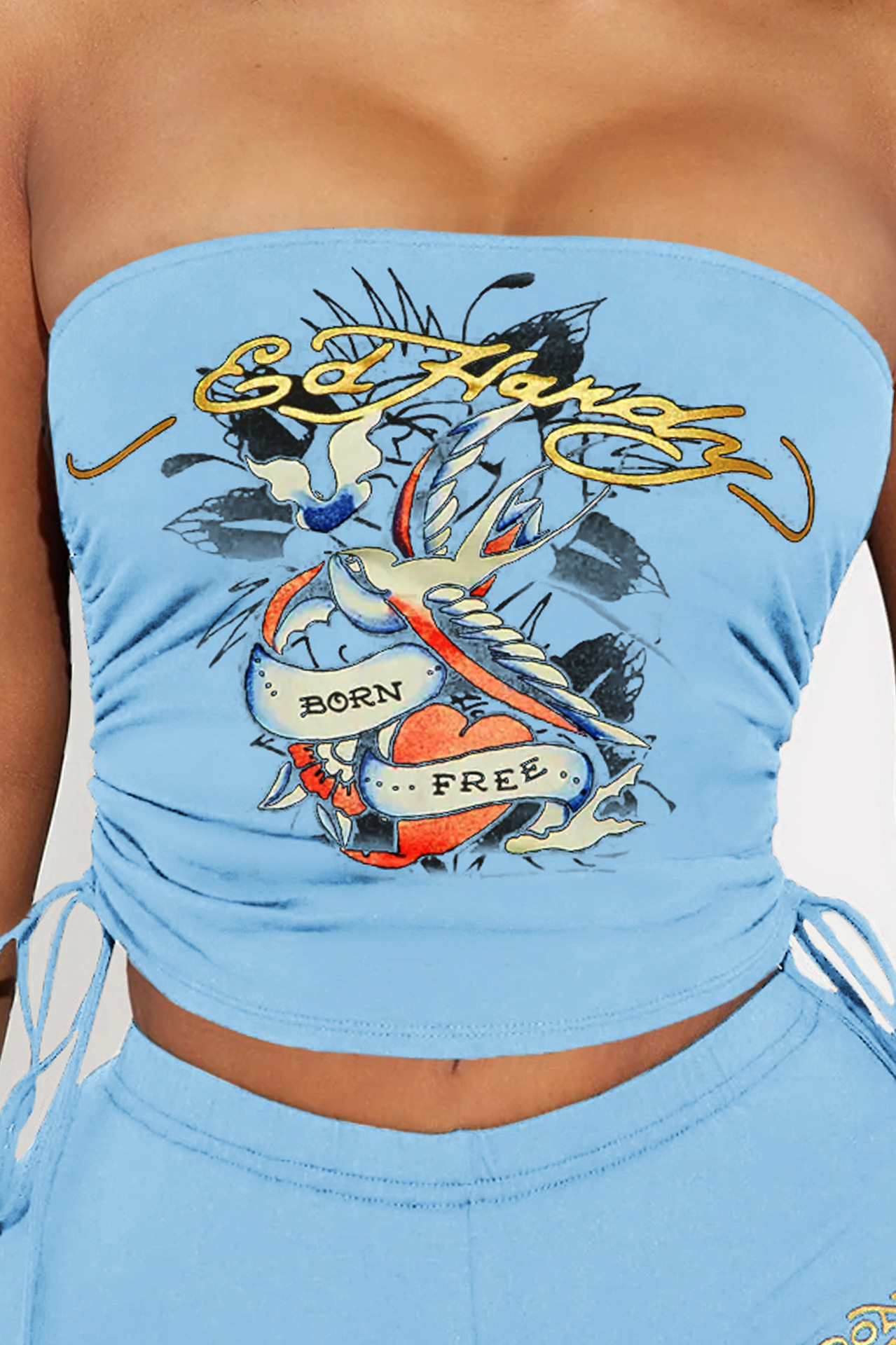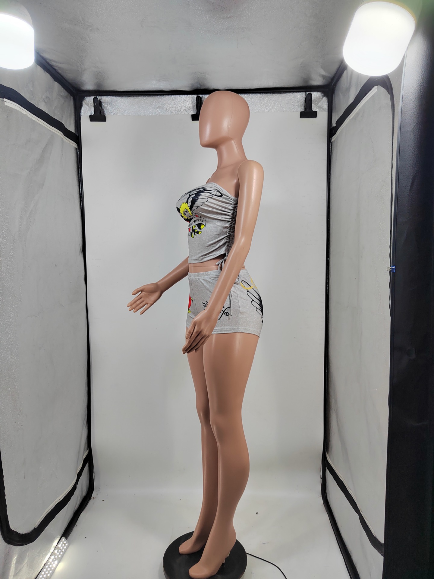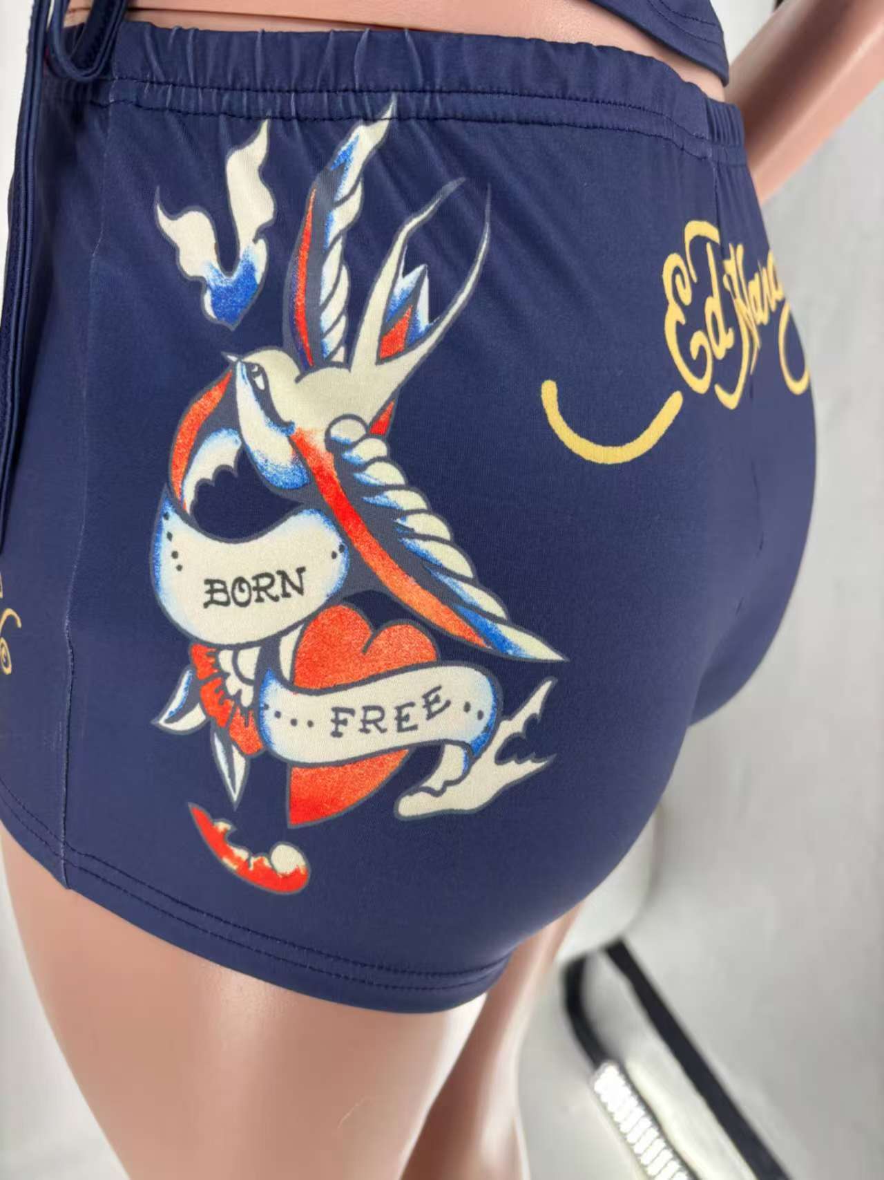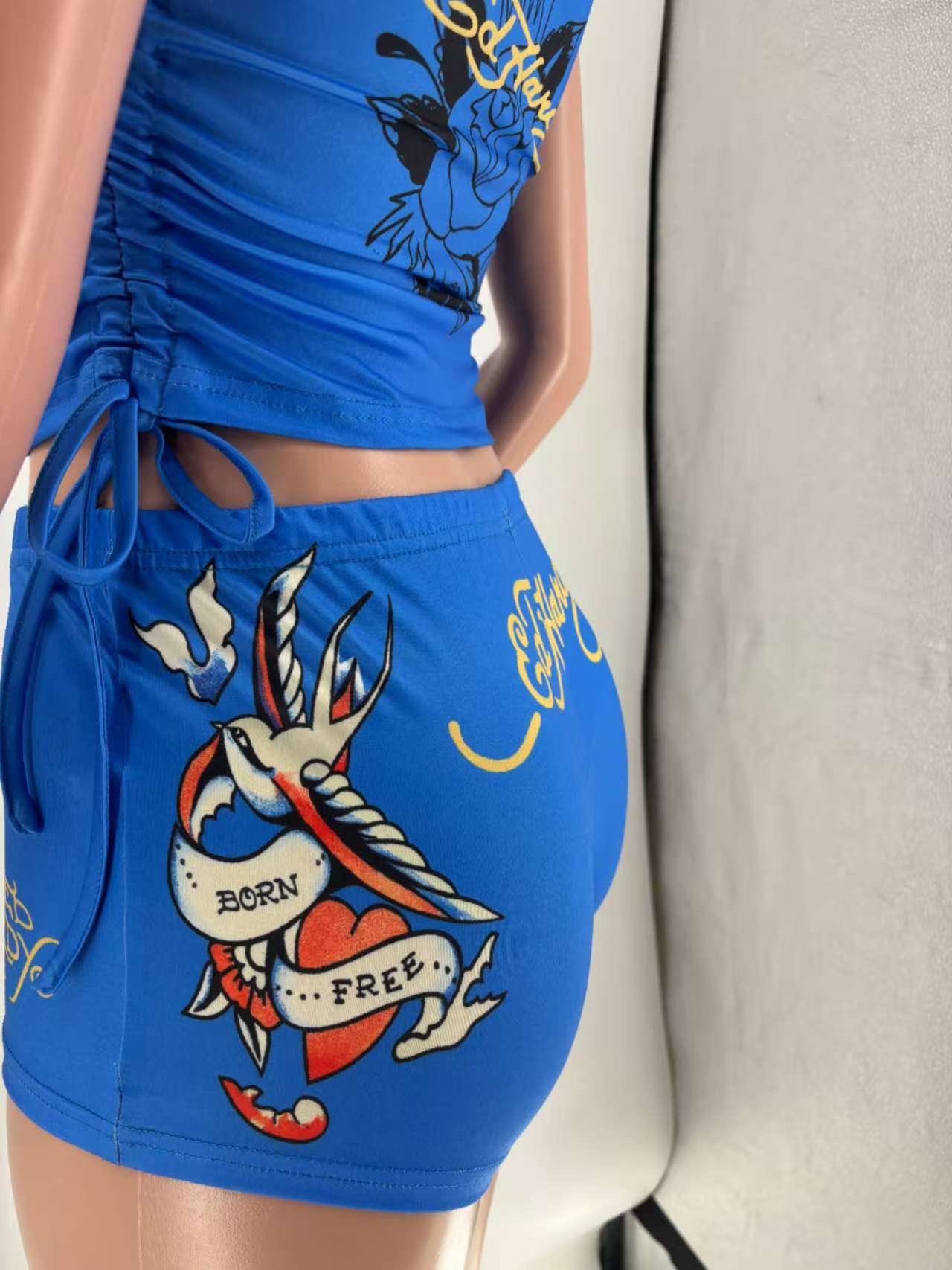 2024 국경 유럽 및 미국 여성의 위치 인쇄 가슴 랩 반바지 세트
