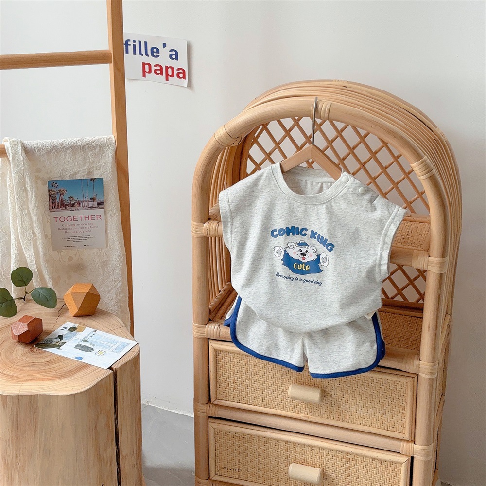 남아 여름 의류 세트 2024 신상 1-3세 어린이 여름 민소매 티셔츠 조끼 반바지 스포츠 스타일 투피스 세트