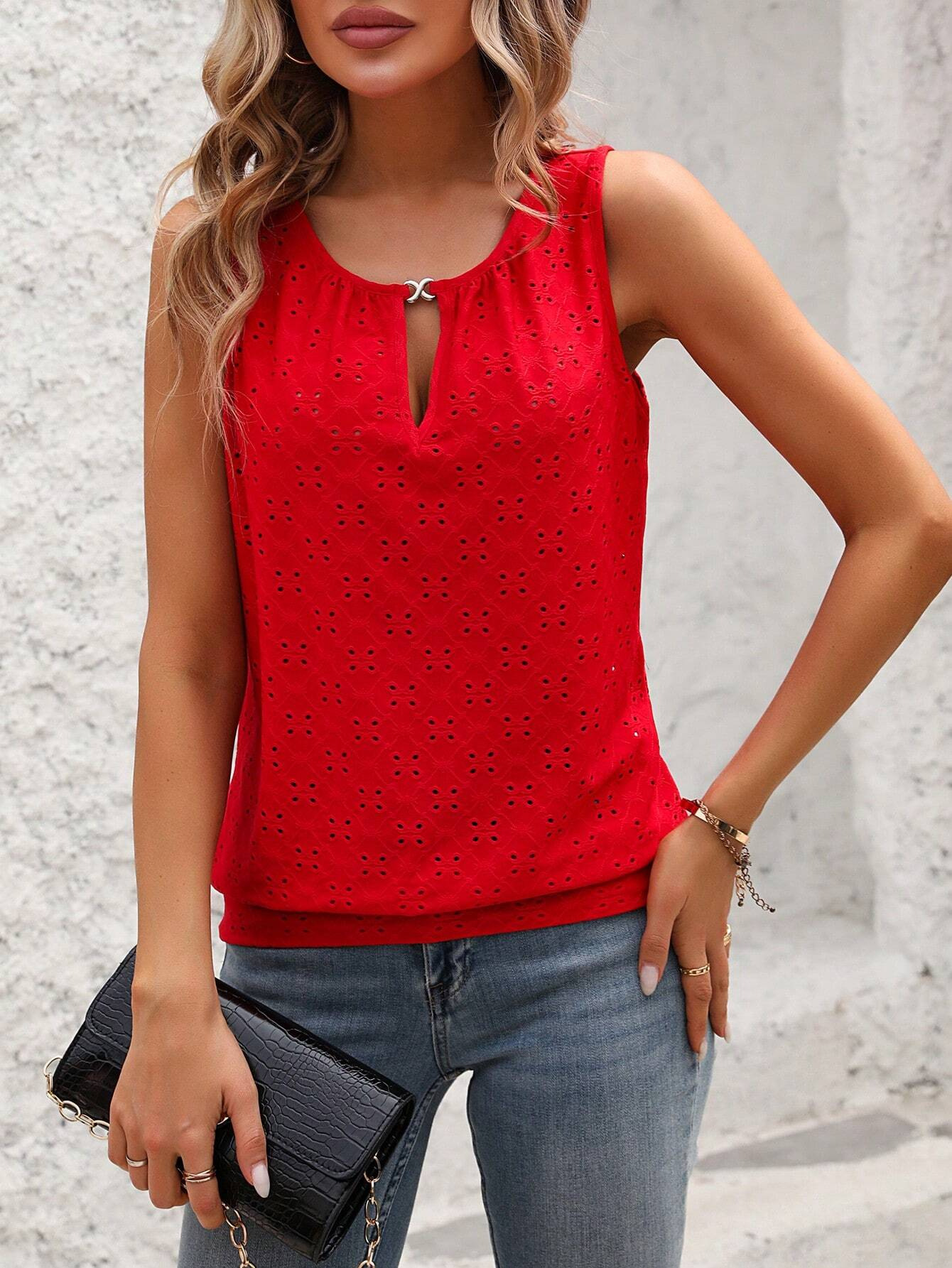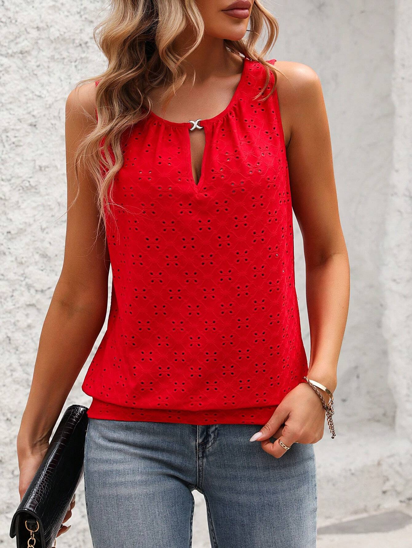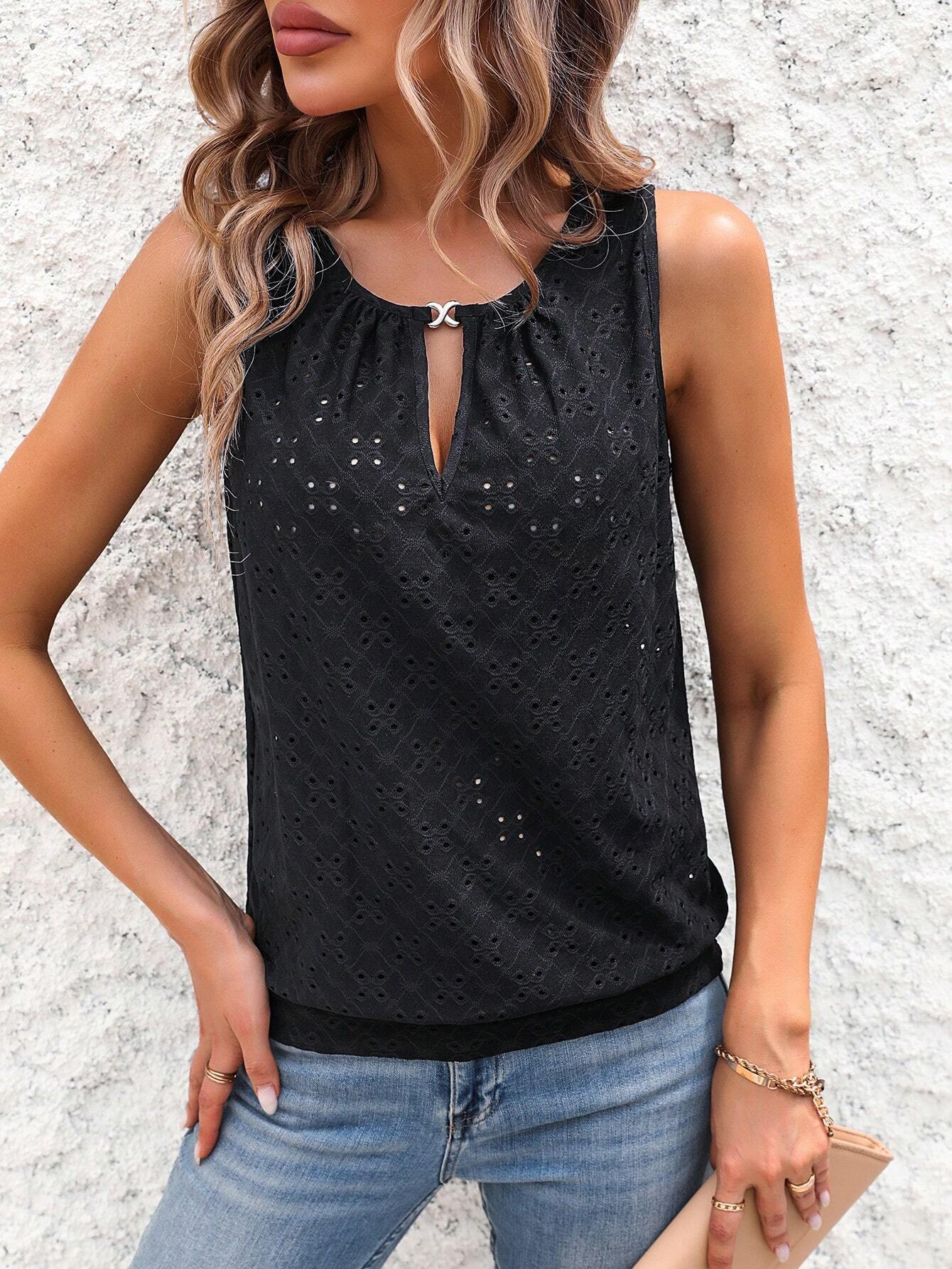 2025 여름 아마존 국경 유럽과 미국 의류 패션 우아한 성격 버클 U 넥 솔리드 컬러 민소매 조끼 티셔츠