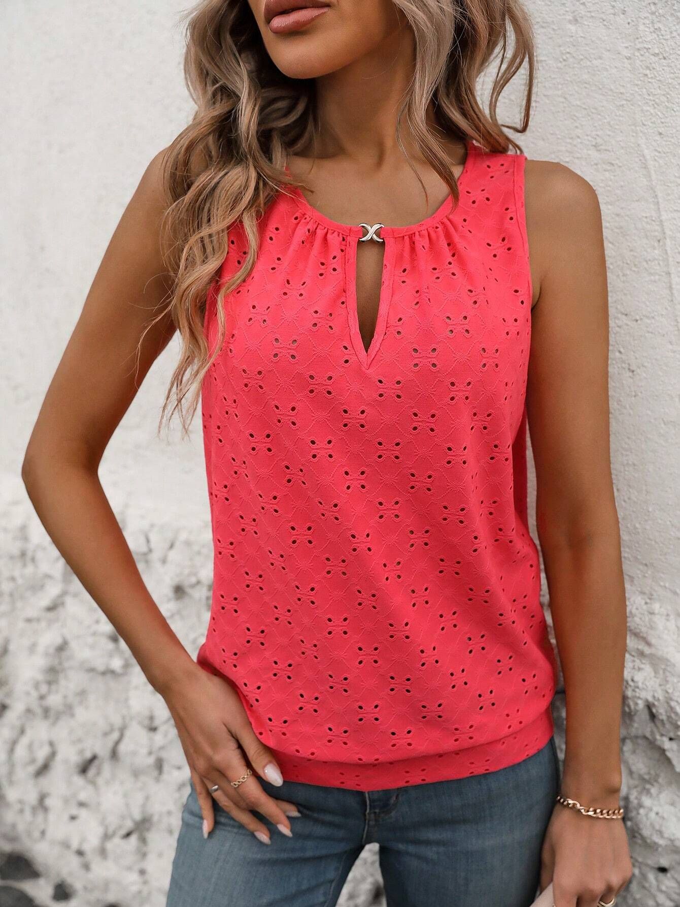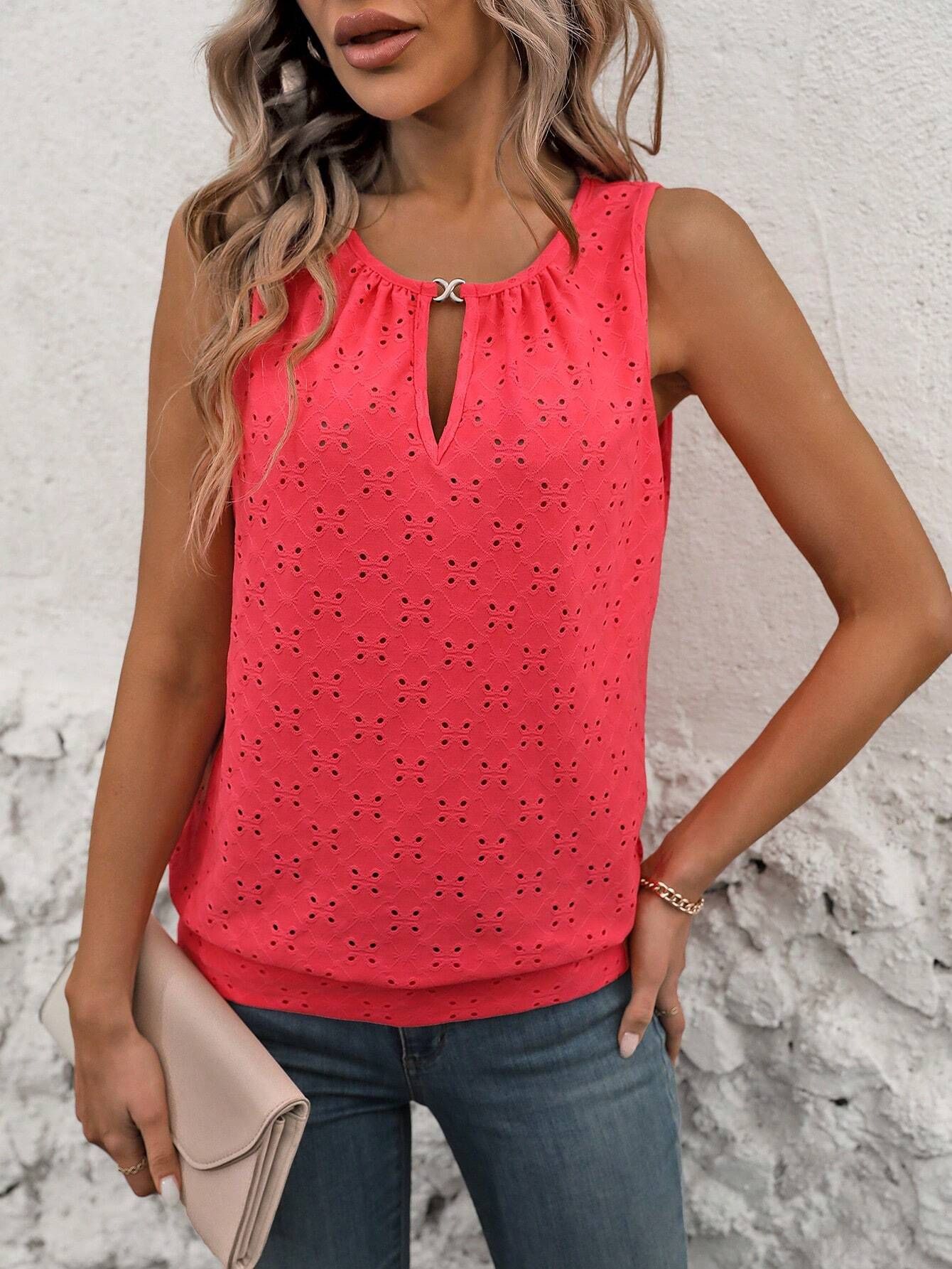 2025 여름 아마존 국경 유럽과 미국 의류 패션 우아한 성격 버클 U 넥 솔리드 컬러 민소매 조끼 티셔츠스토어 가기