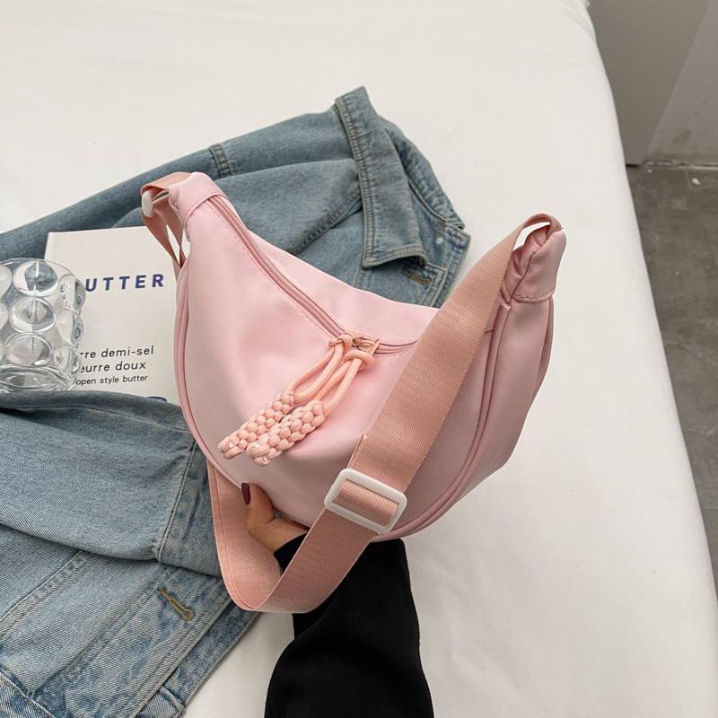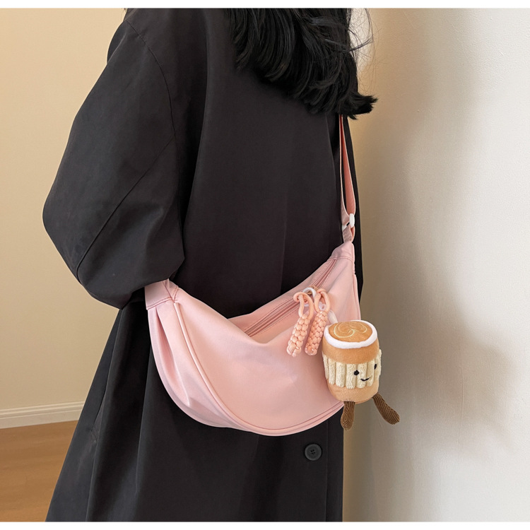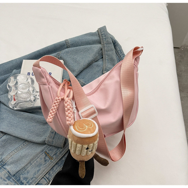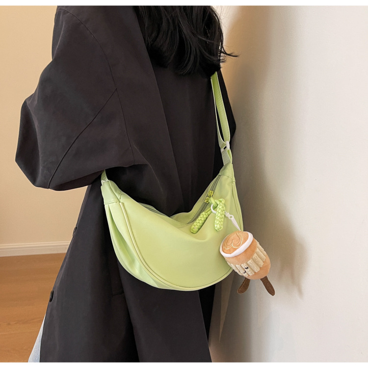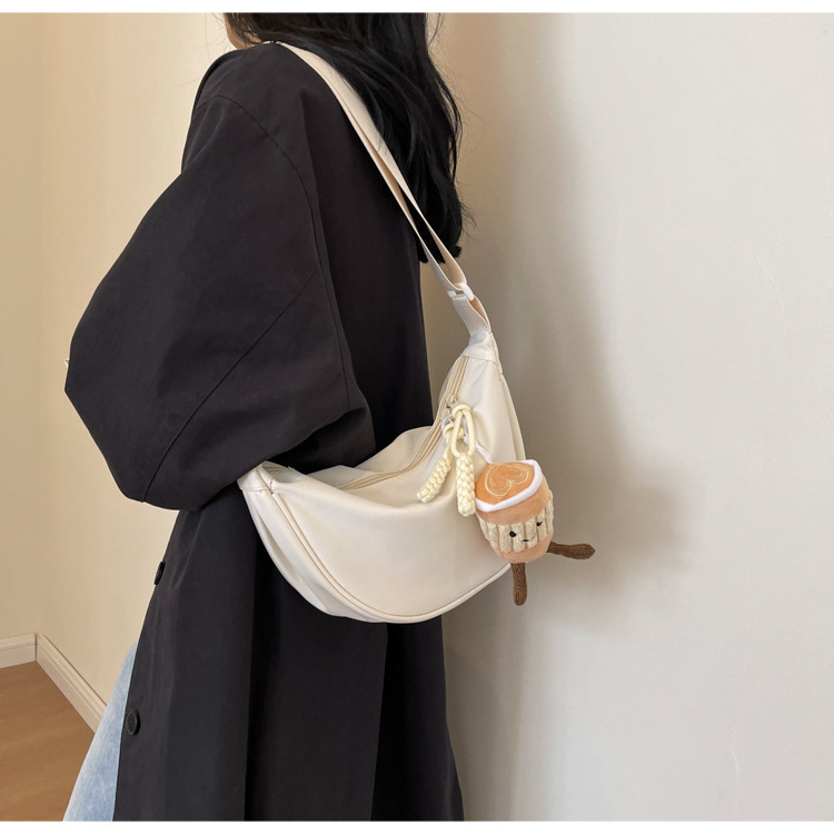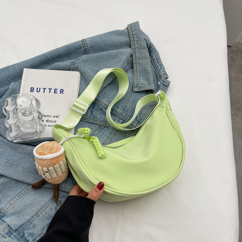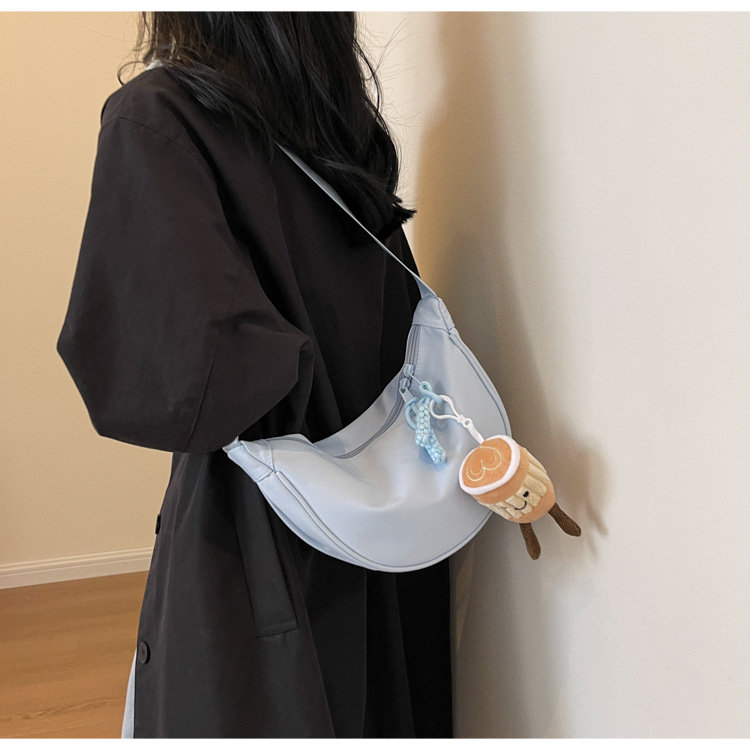 대용량 어깨 크로스 바디 크레센트 백 여성의 2024 년 새 봄 및 여름 캐주얼 올 매치 만두 백 나일론 백