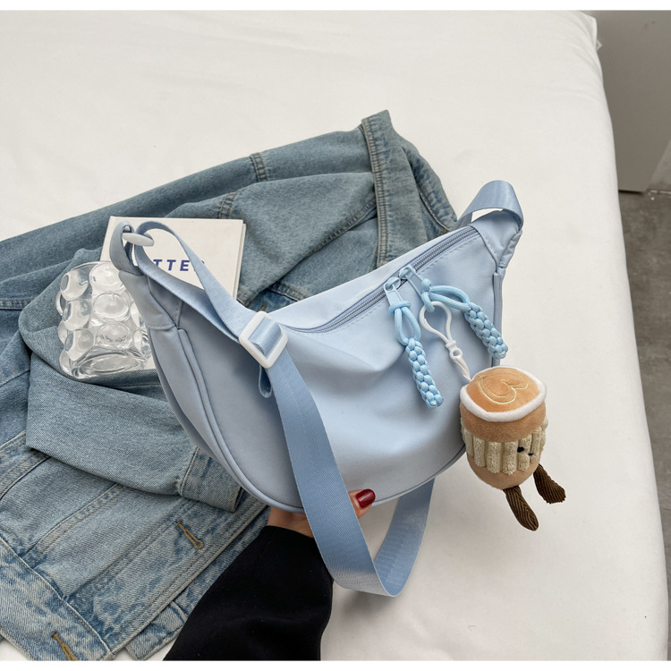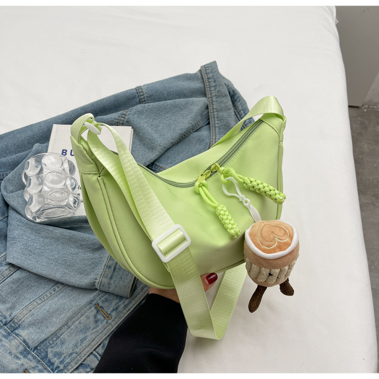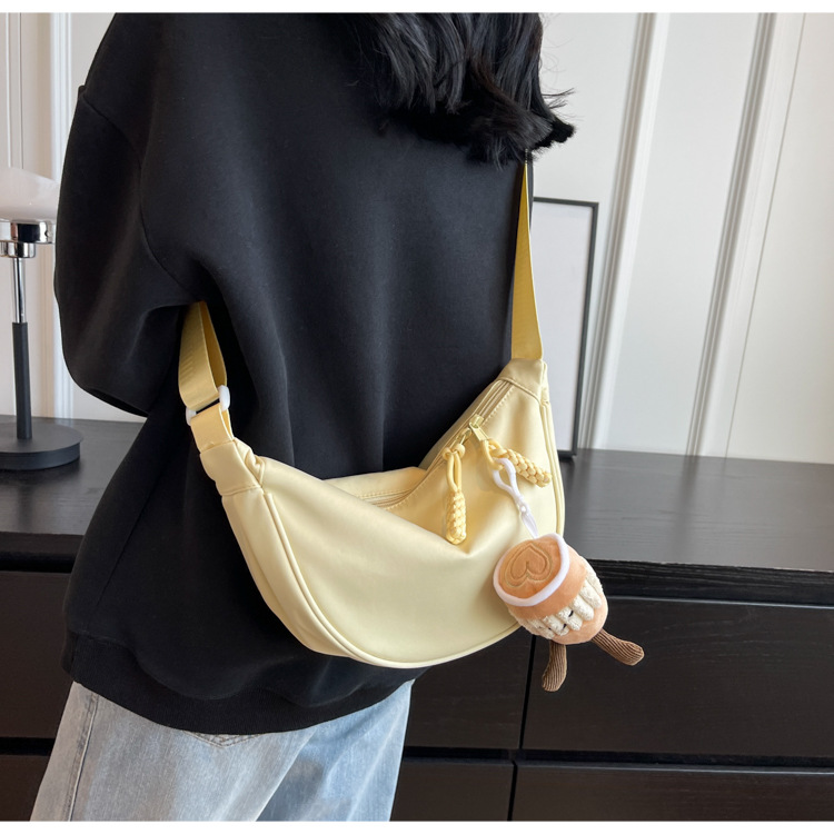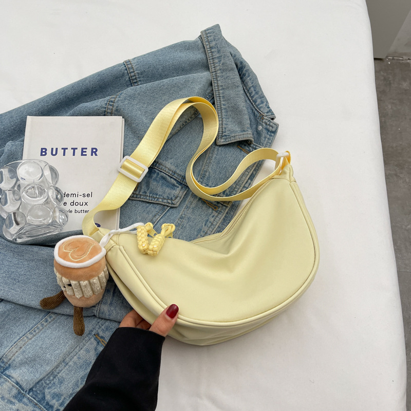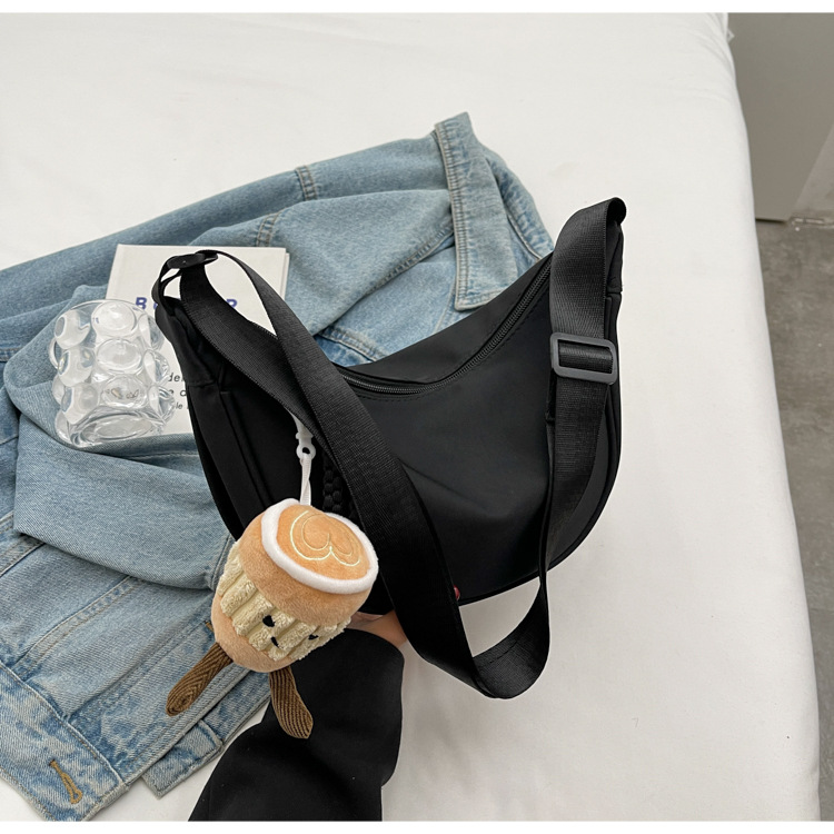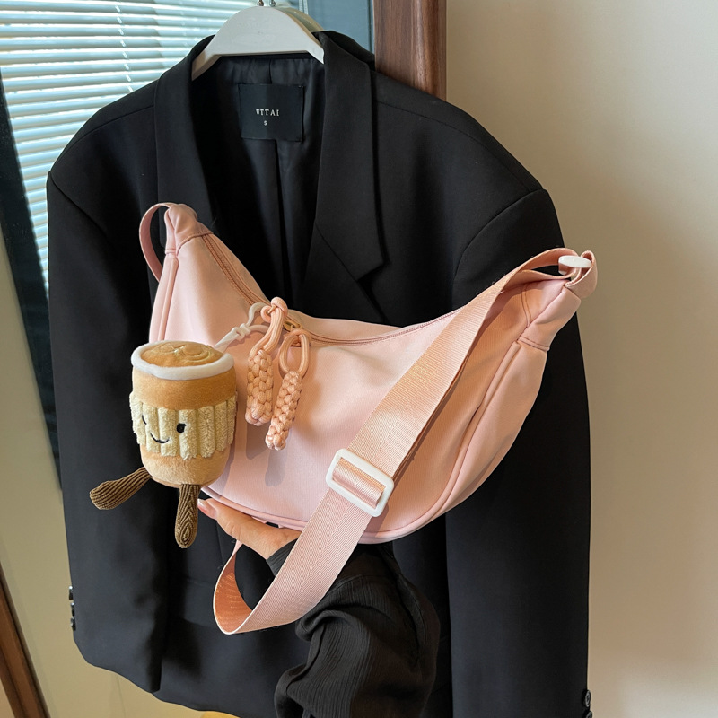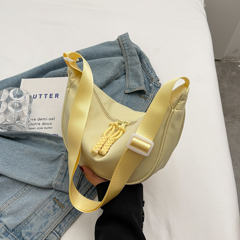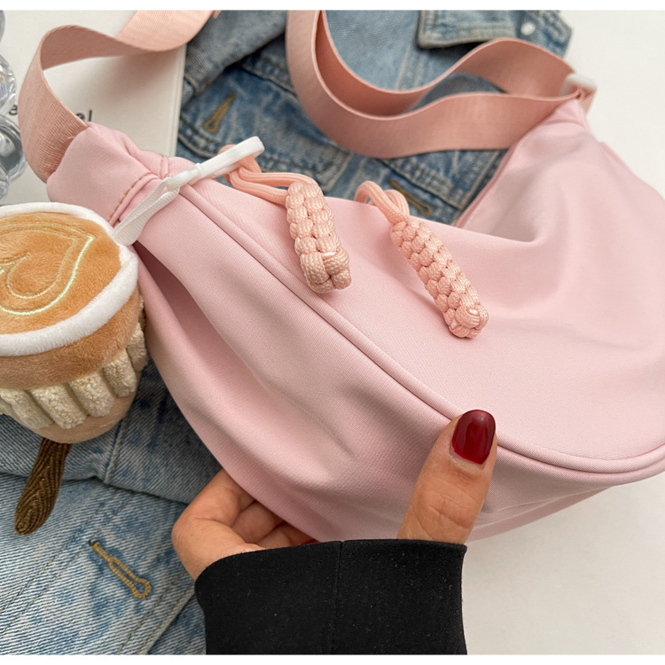대용량 어깨 크로스 바디 크레센트 백 여성의 2024 년 새 봄 및 여름 캐주얼 올 매치 만두 백 나일론 백