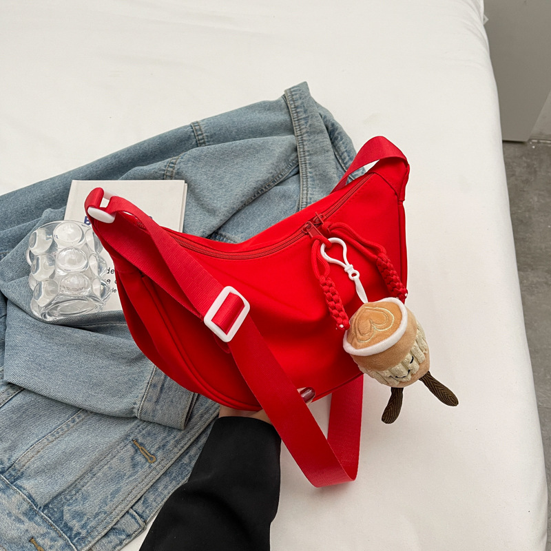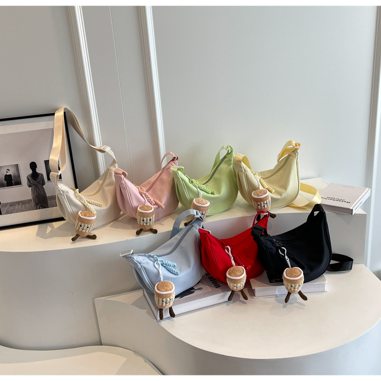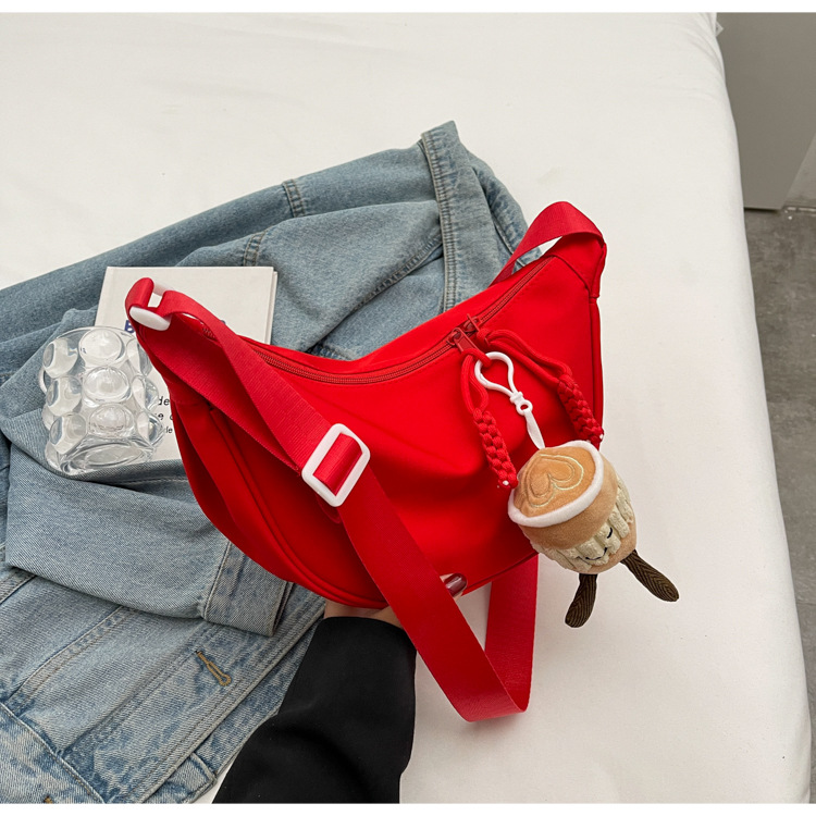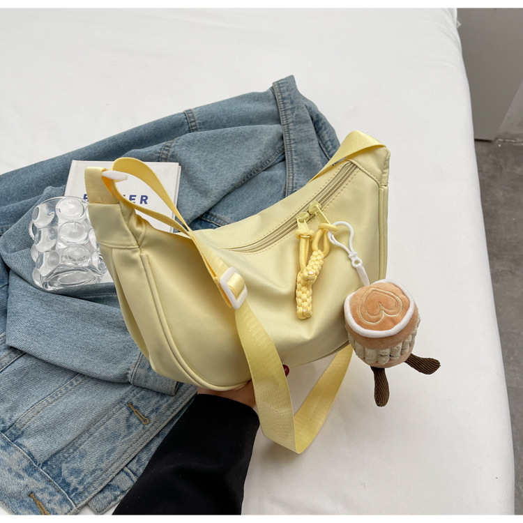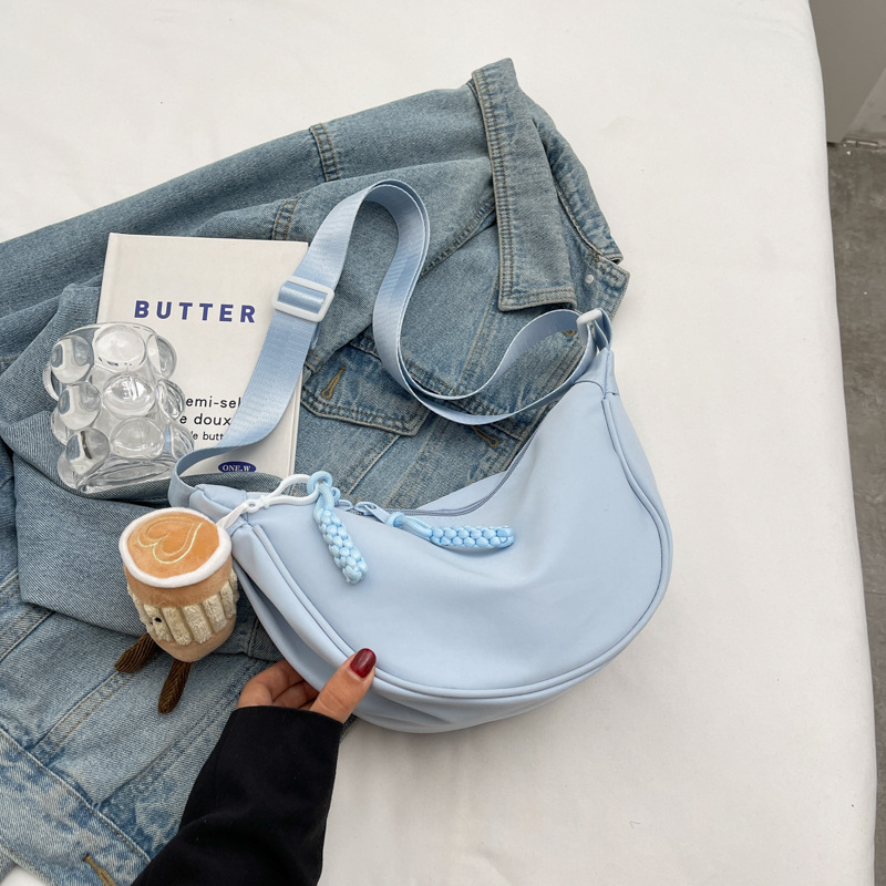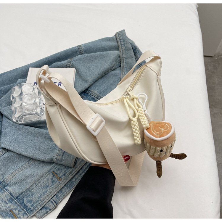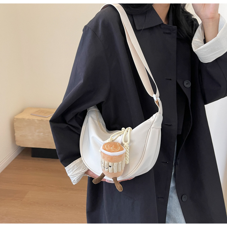 대용량 어깨 크로스 바디 크레센트 백 여성의 2024 년 새 봄 및 여름 캐주얼 올 매치 만두 백 나일론 백