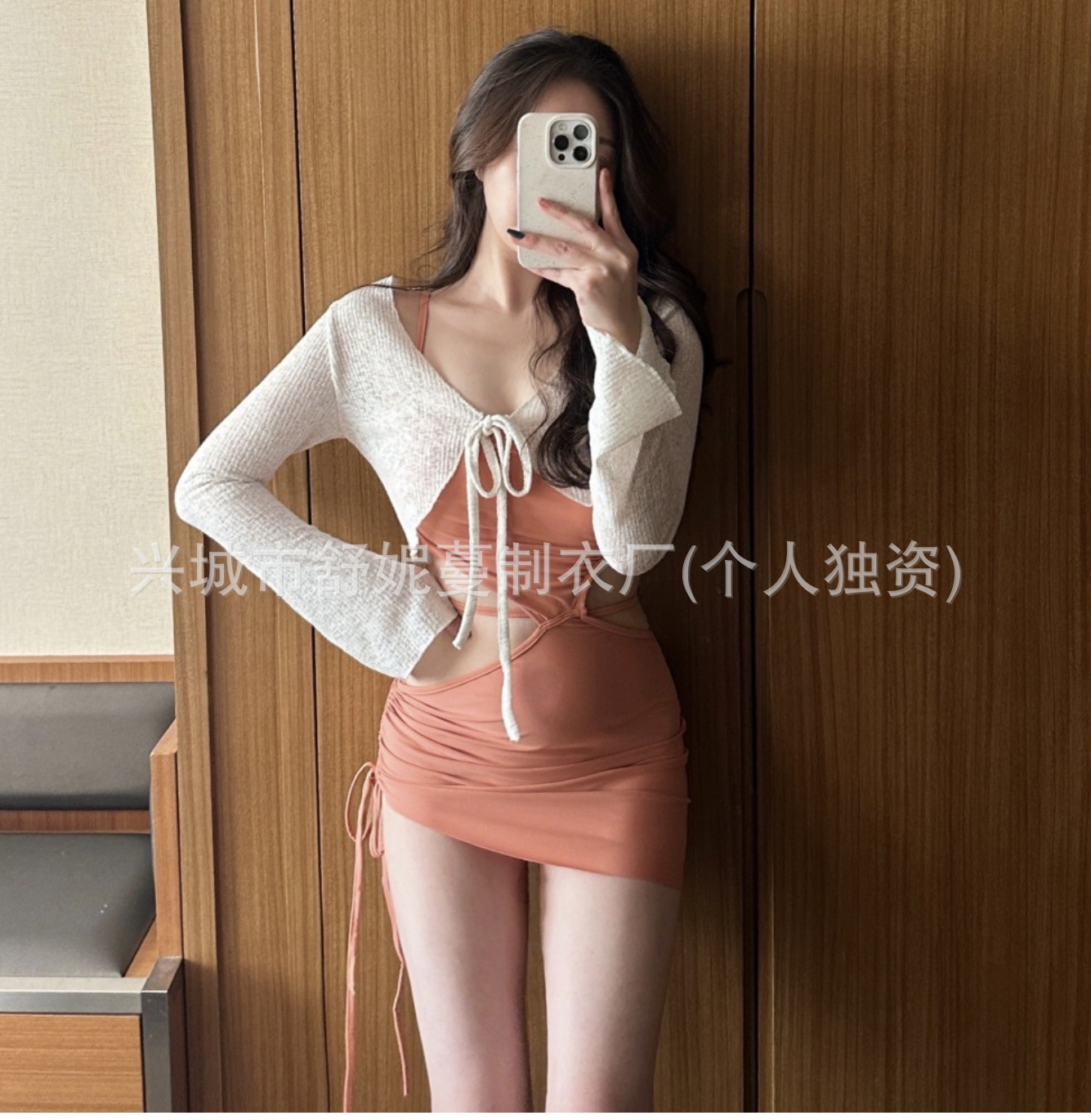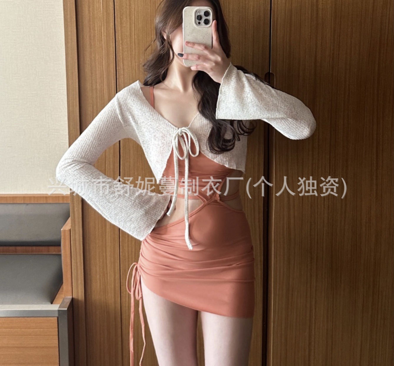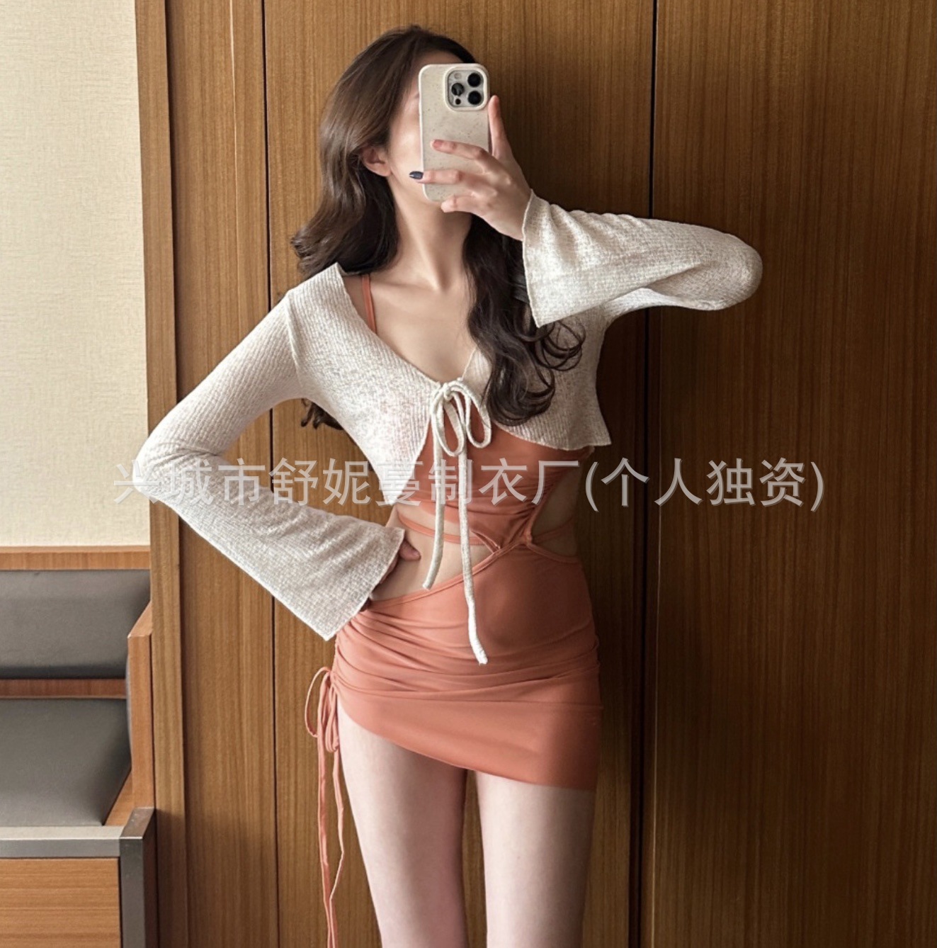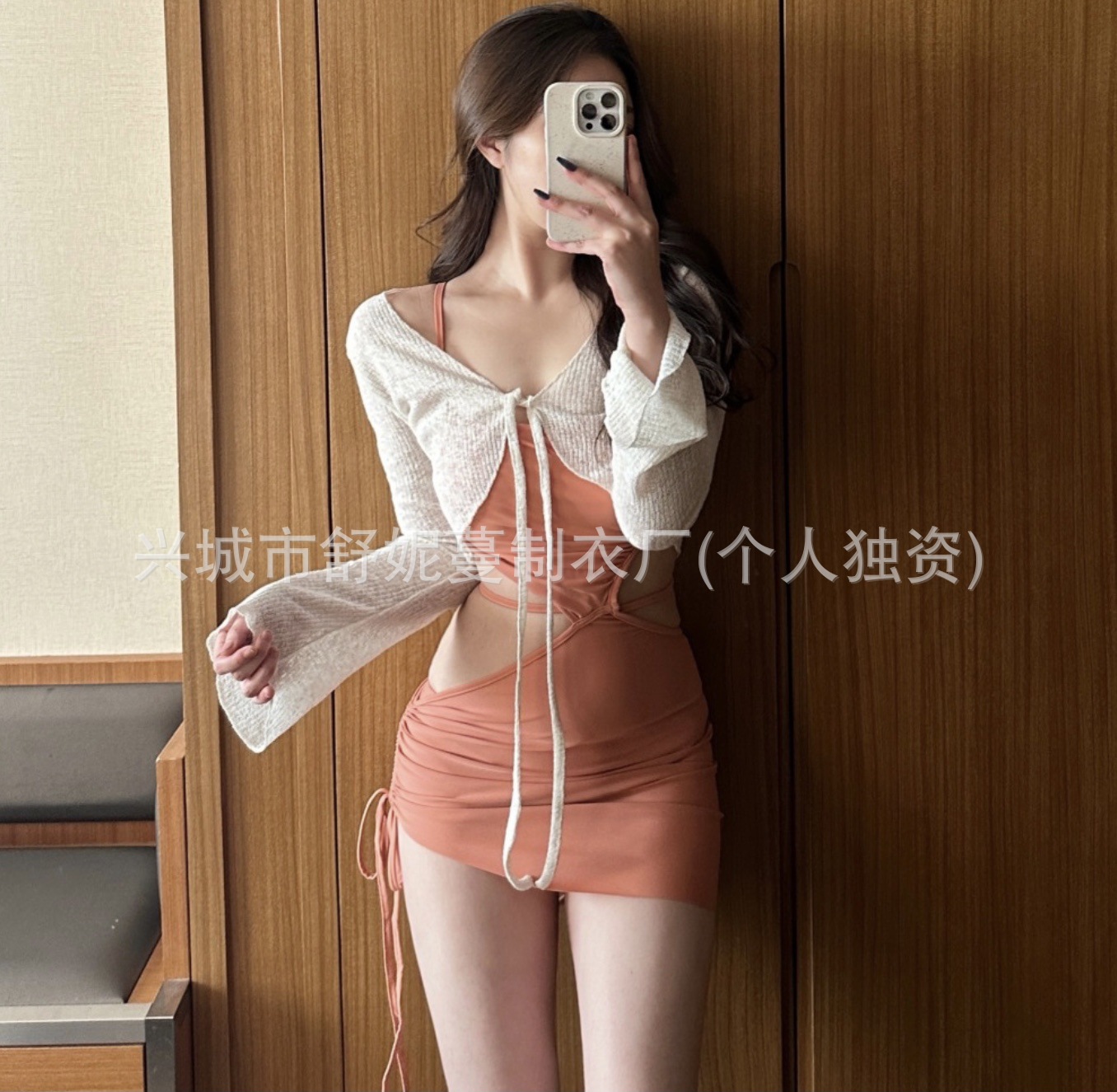 한국식 고급 단순 하이 웨이스트 벨리 커버 보수적 스커트 스타일 슬림 모양의 수영복스토어 가기