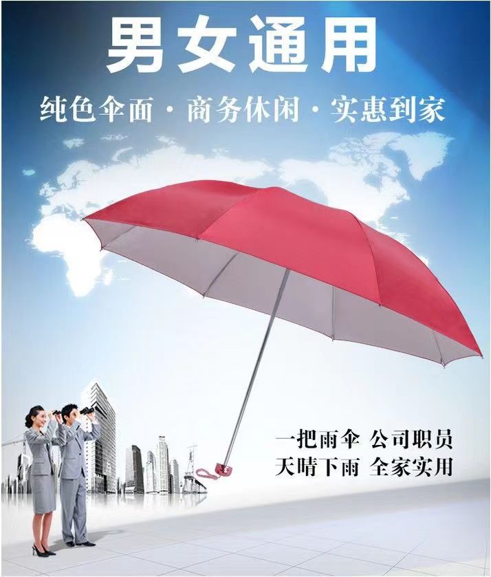 수동 실버 접착제 단일 3 배 우산 맑고 비 이중 사용 차양 로고 인쇄 활동 선물 광고 우산 제조 업체 도매스토어 가기