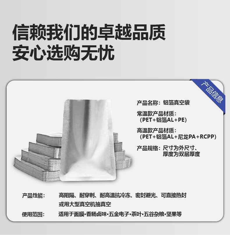 121도 고온 살균 포장 가능, 신선도 유지 진공 식품 포장용 알루미늄 호일 지퍼백