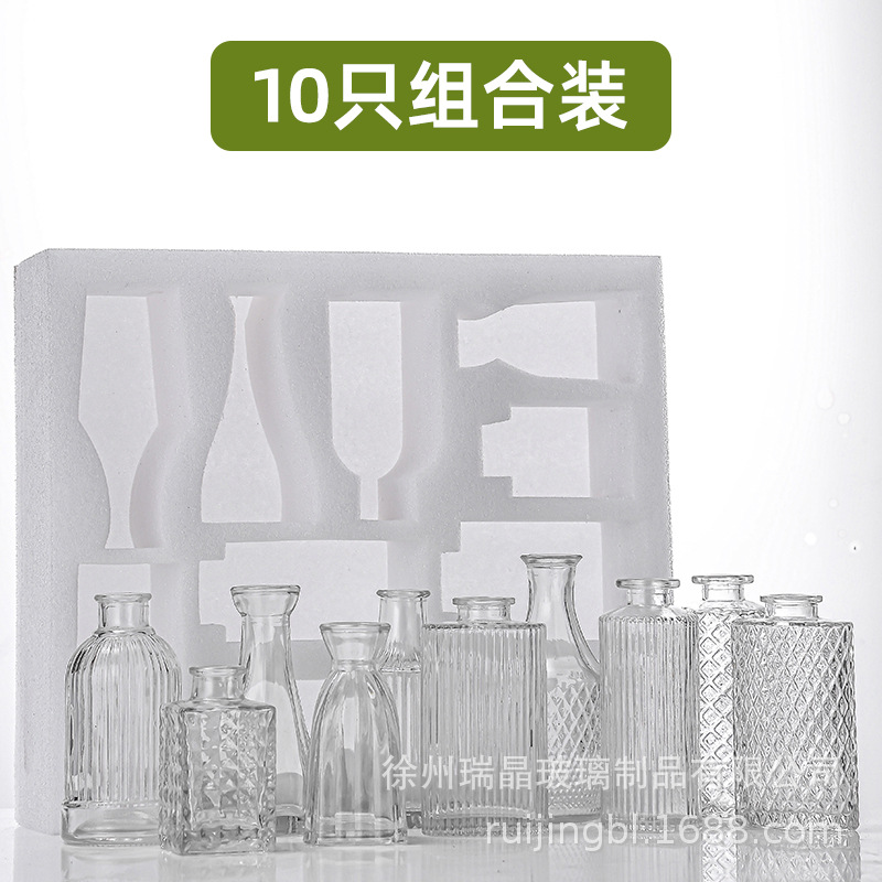 프랑스 스타일 레트로 스타일 엠보싱 미니 작은 꽃병 투명 수경 꽃 배열 꽃 유리 꽃병 거실 장식 장식품스토어 가기