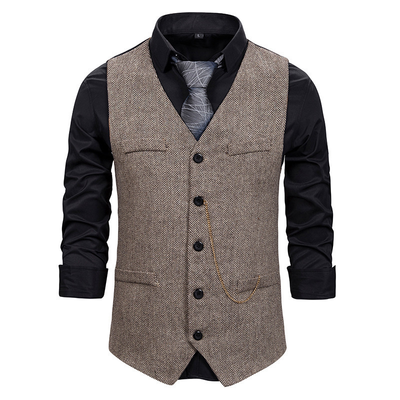 대외 무역 복고풍 1920S 성인 남성 조끼 싱글 브레스트 캐주얼 조끼 체인이 머리카락을 세웁니다.