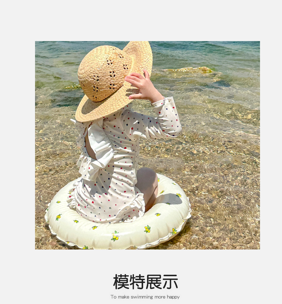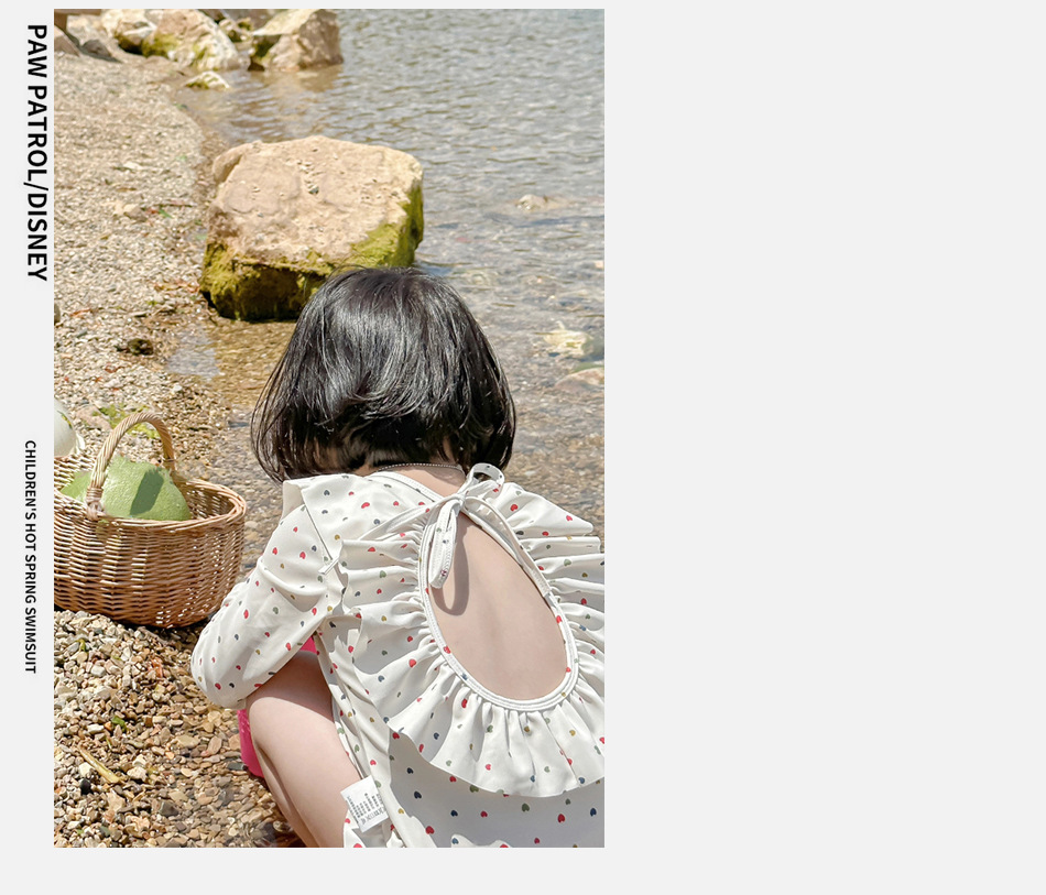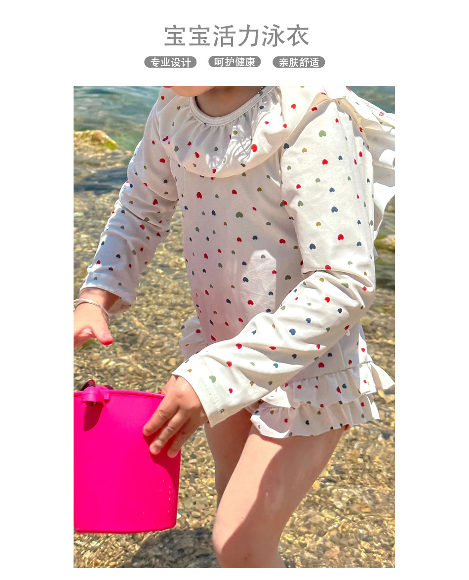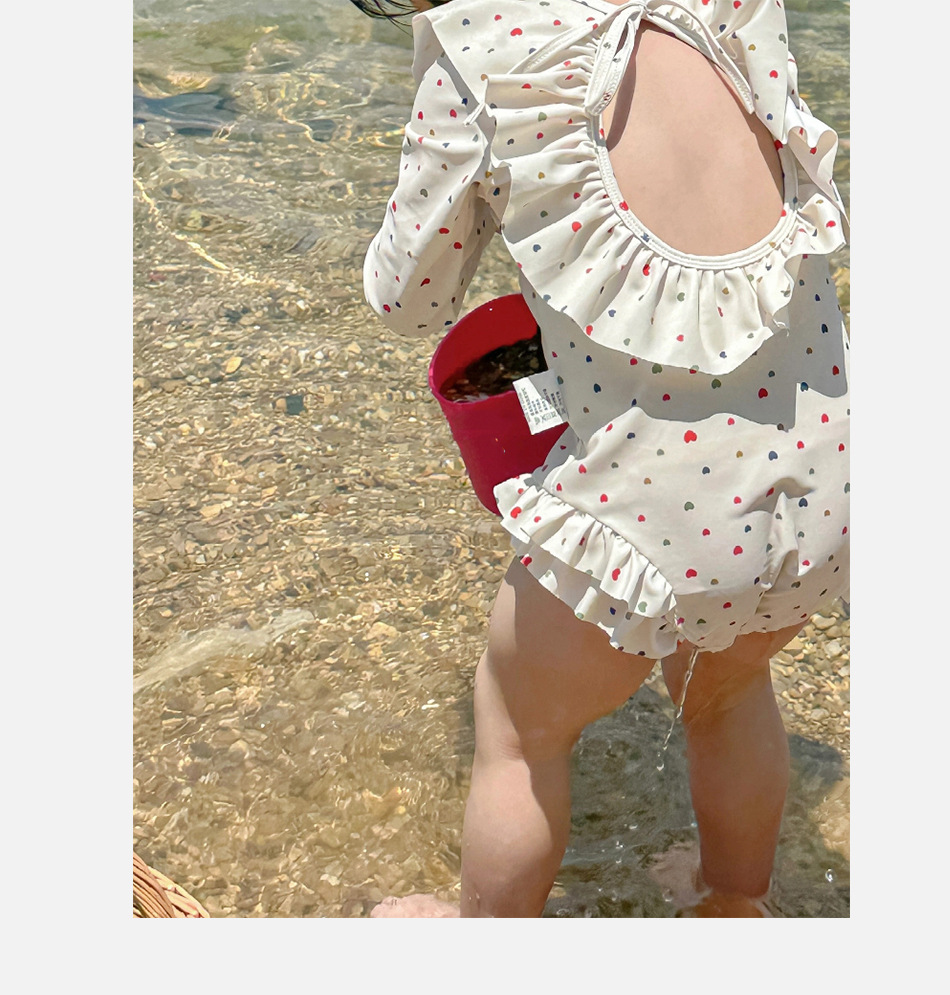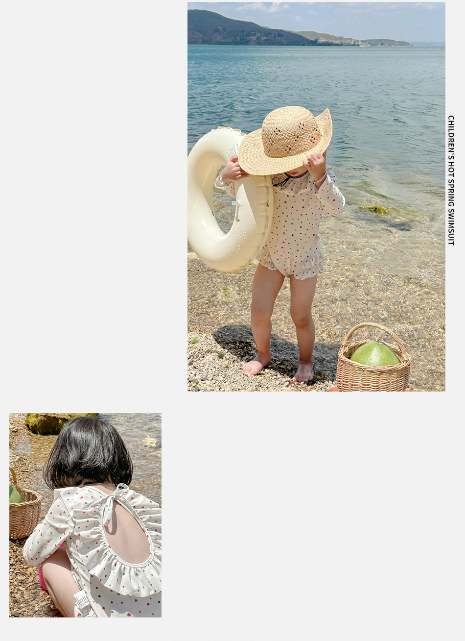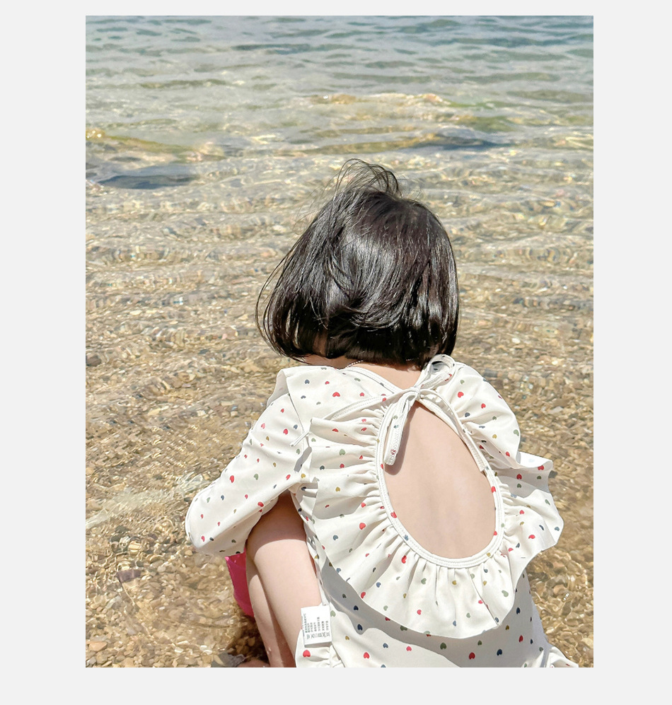 새로운 여름 한국 스타일 어린이 수영복 소녀 원피스 긴팔 백리스 세련 된 아기 수영복스토어 가기