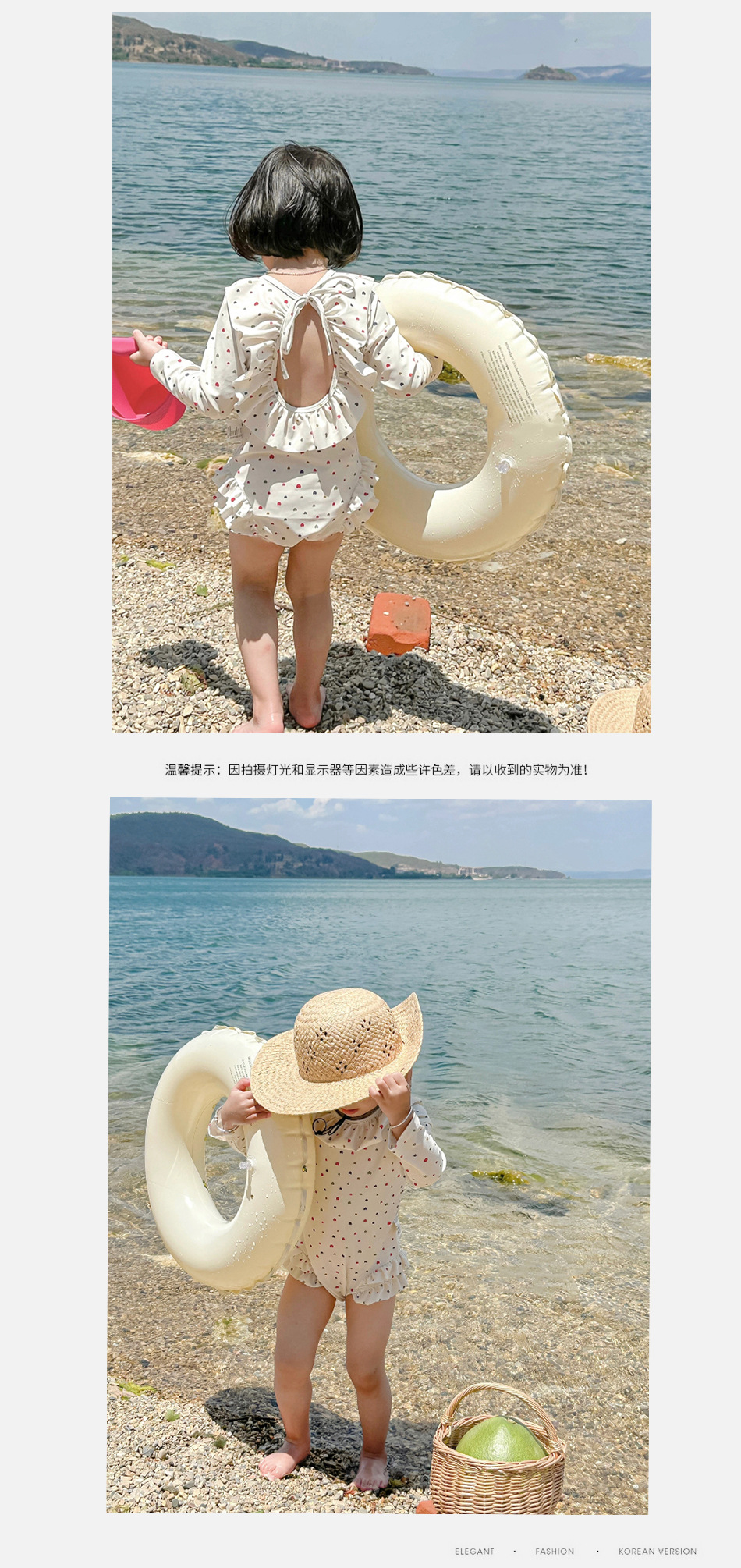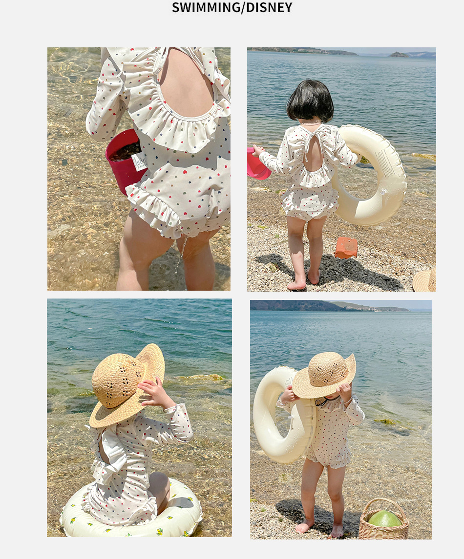 새로운 여름 한국 스타일 어린이 수영복 소녀 원피스 긴팔 백리스 세련 된 아기 수영복